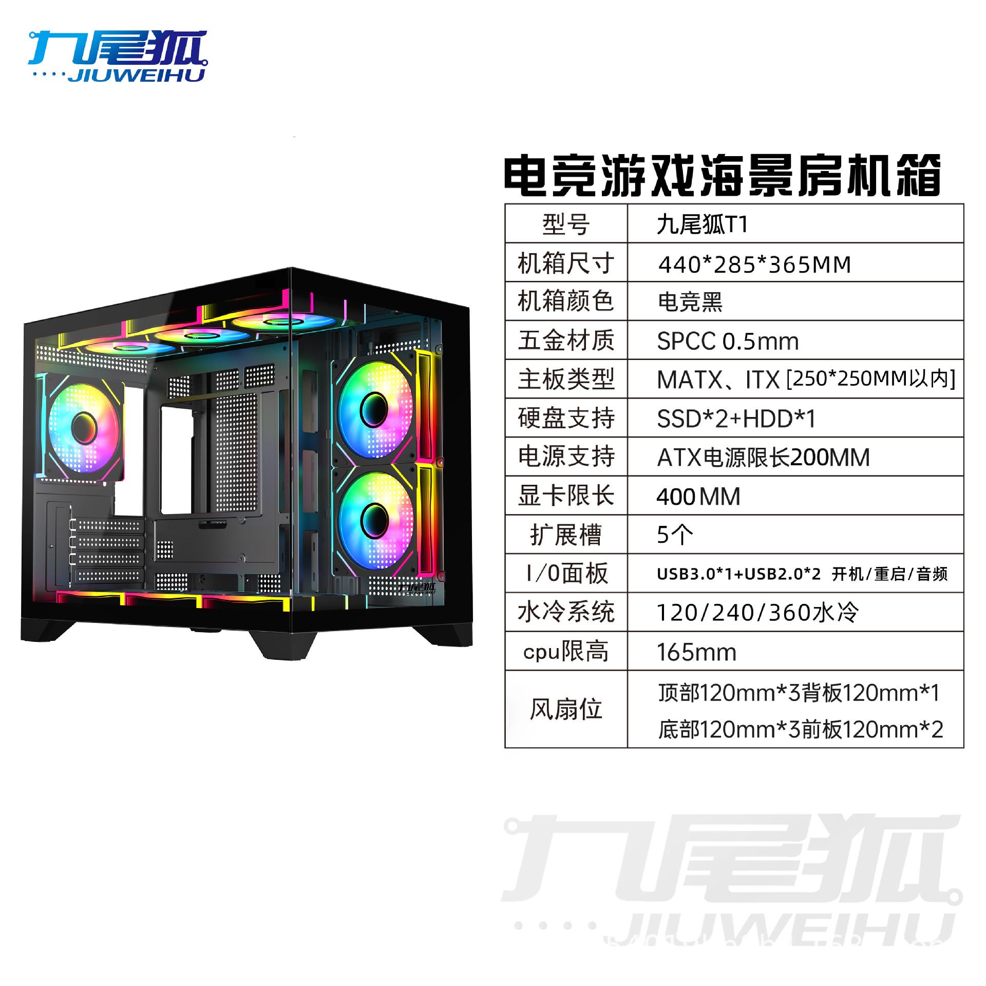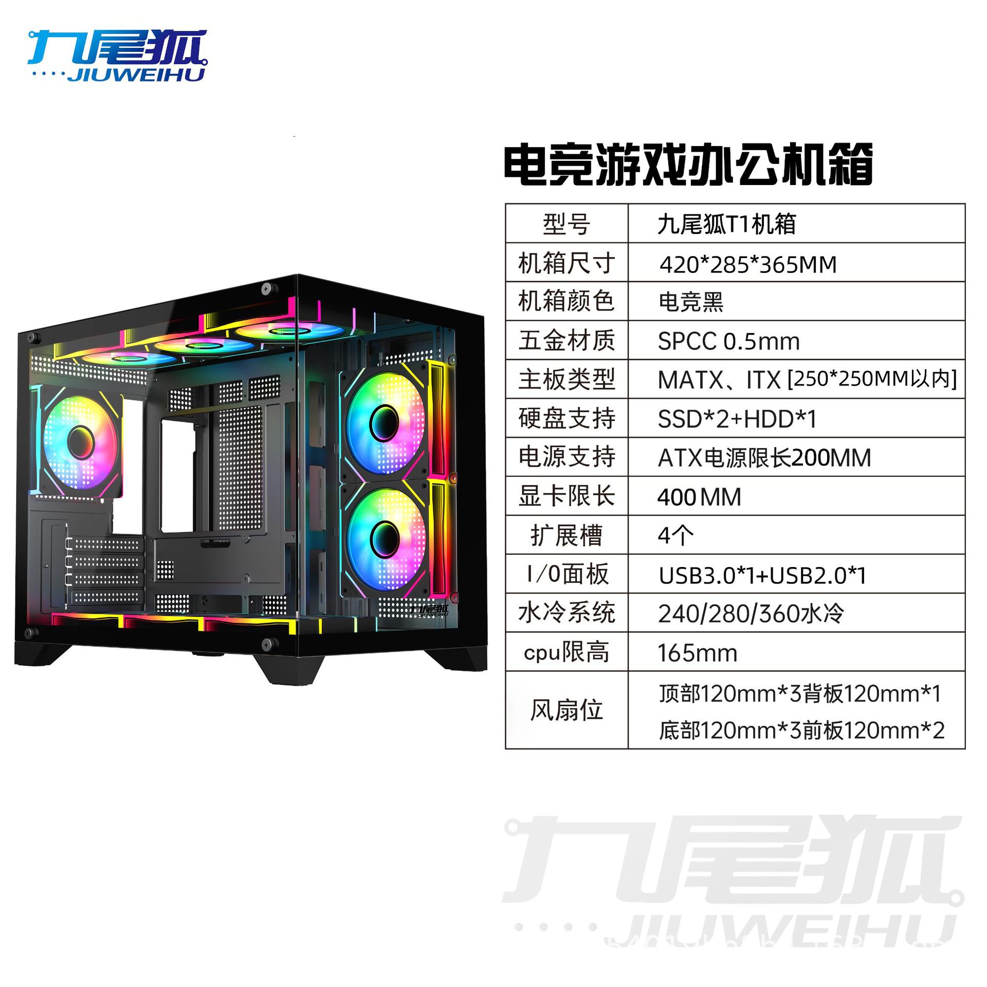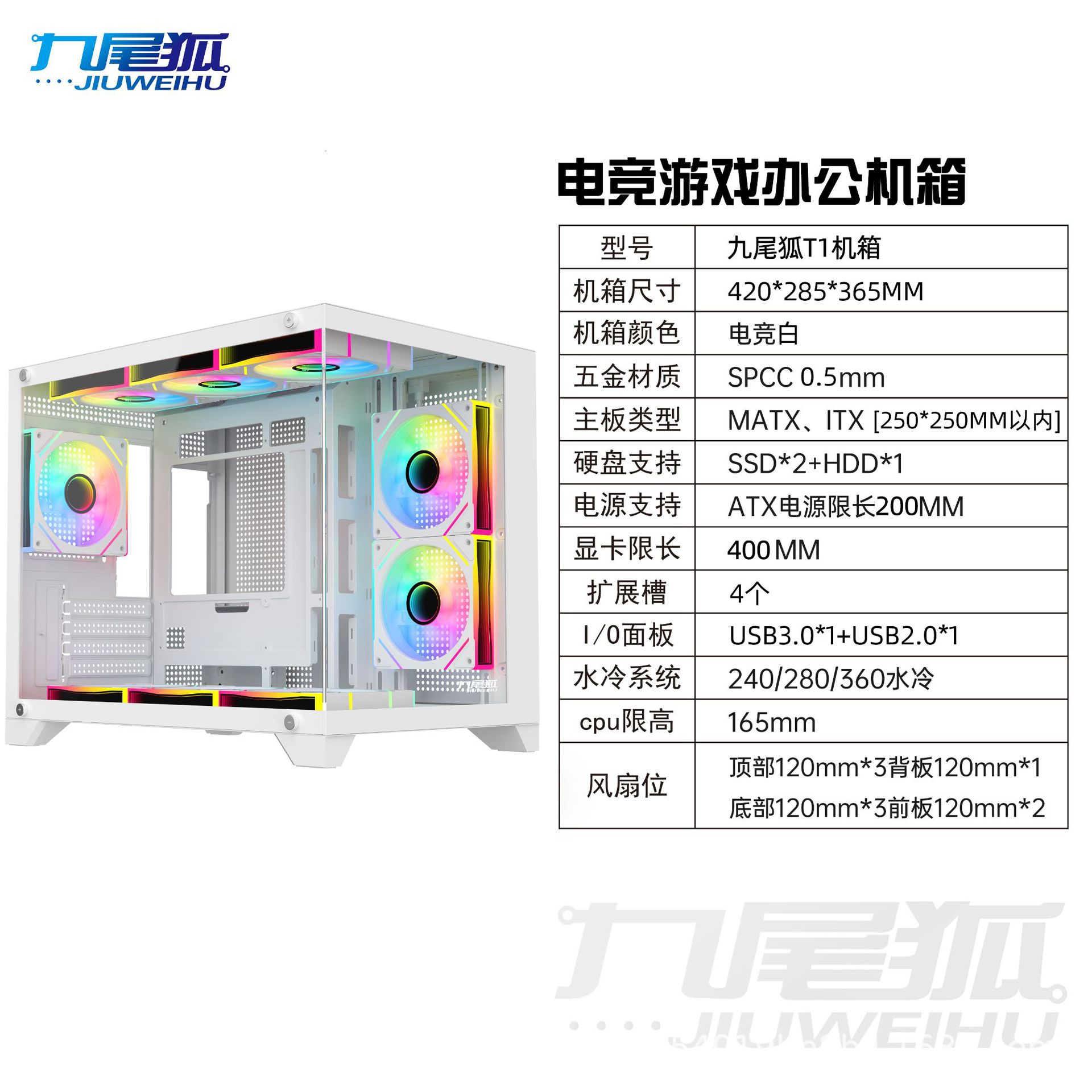 9 꼬리 여우 T1 조립 컴퓨터 케이스 데스크탑 전체 측면 투명 matx 흰색 360 수냉식 atx 메인 케이스스토어 가기