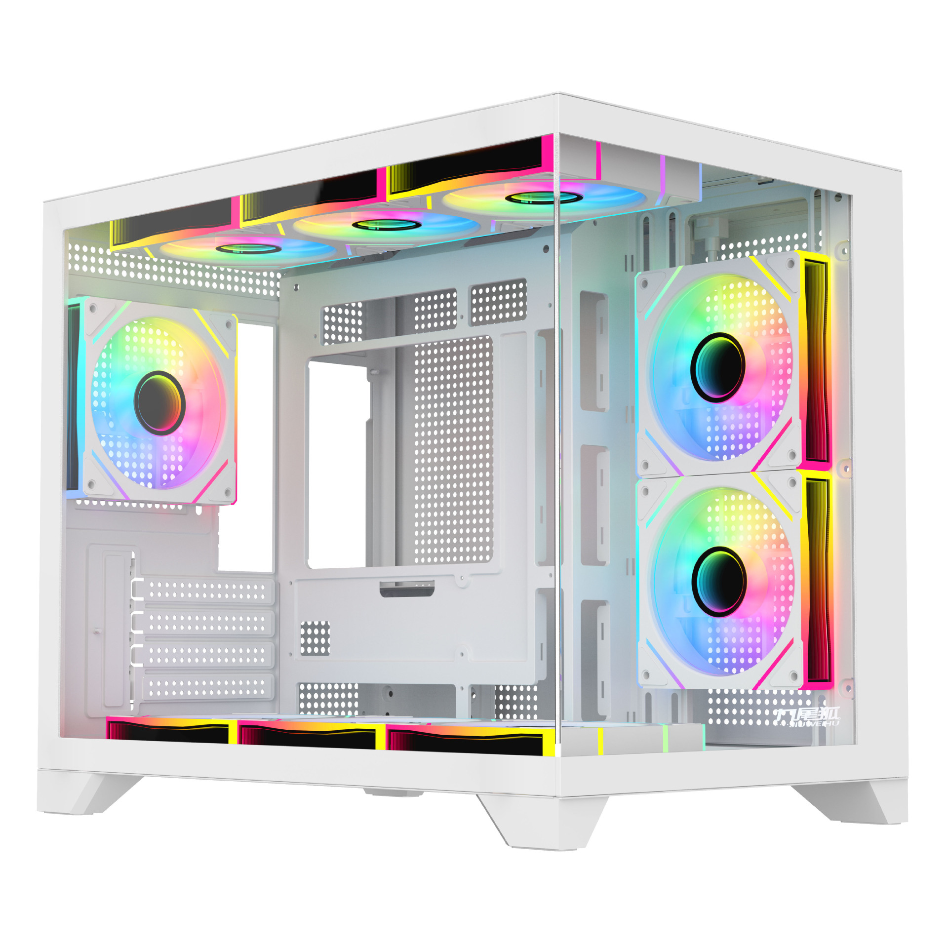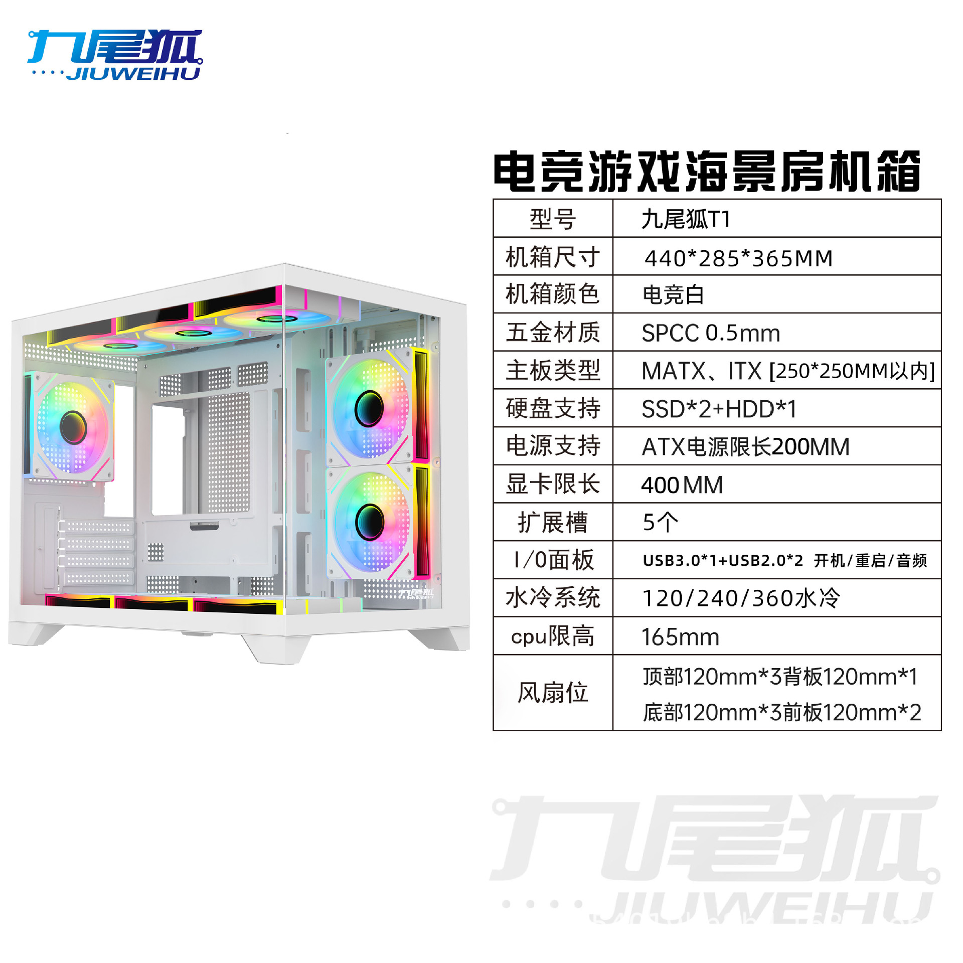 9 꼬리 여우 T1 조립 컴퓨터 케이스 데스크탑 전체 측면 투명 matx 흰색 360 수냉식 atx 메인 케이스