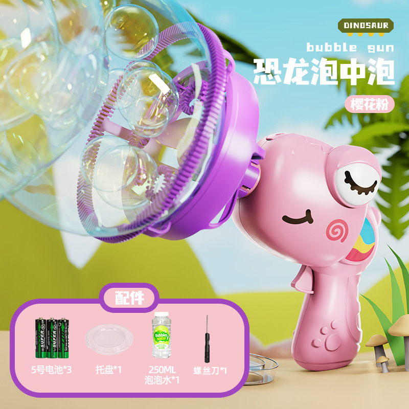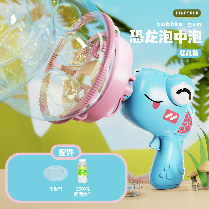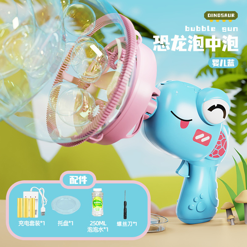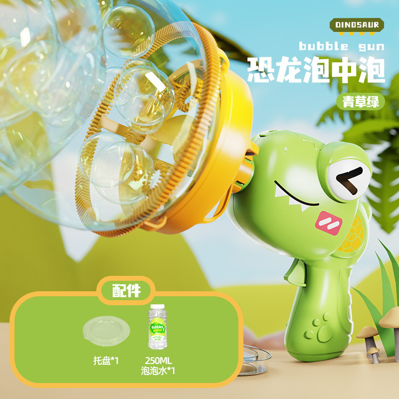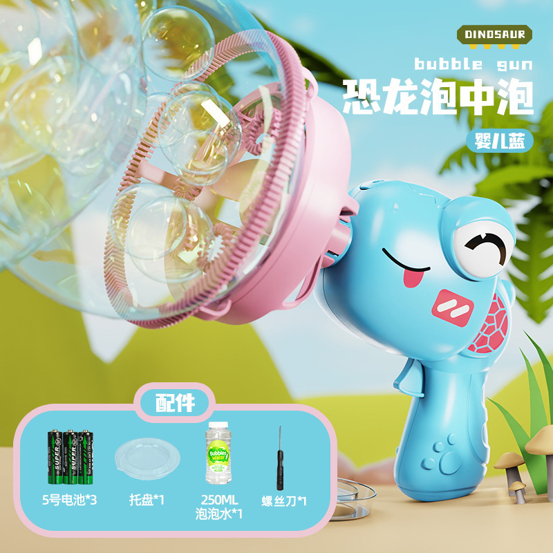 어린이의 새로운 공룡 전기 버블 건 거대한 더블 레이어 버블 핸드 헬드 팬 공원 스톨 장난감 도매스토어 가기