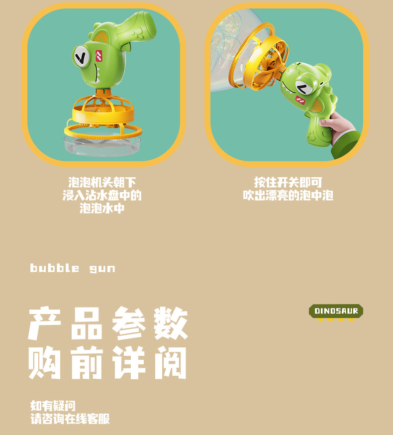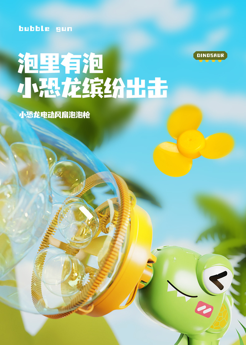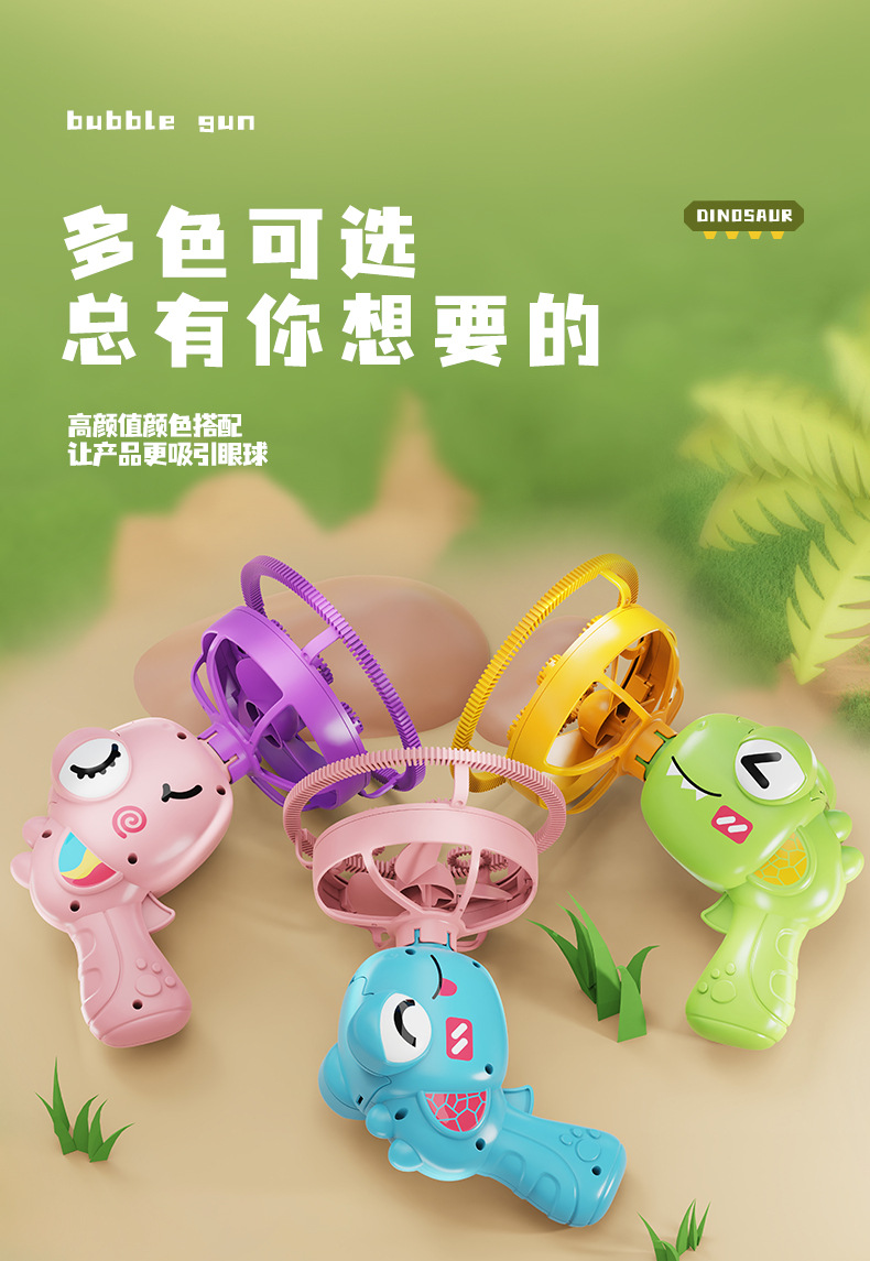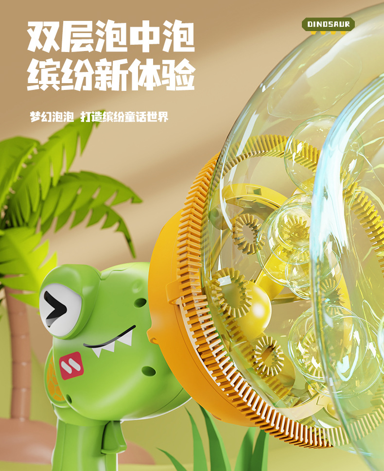 어린이의 새로운 공룡 전기 버블 건 거대한 더블 레이어 버블 핸드 헬드 팬 공원 스톨 장난감 도매스토어 가기