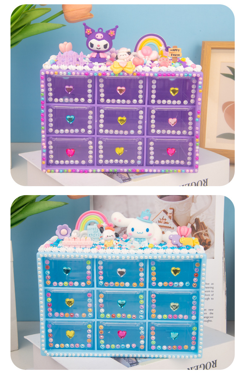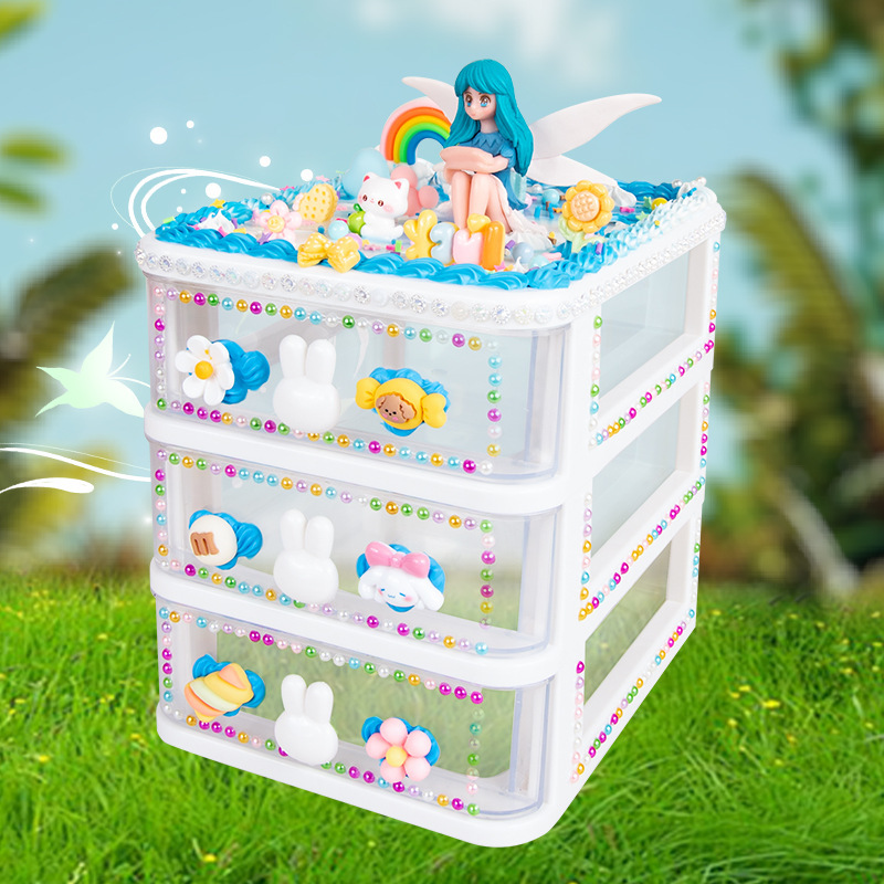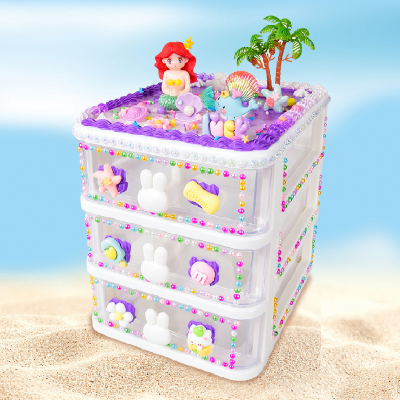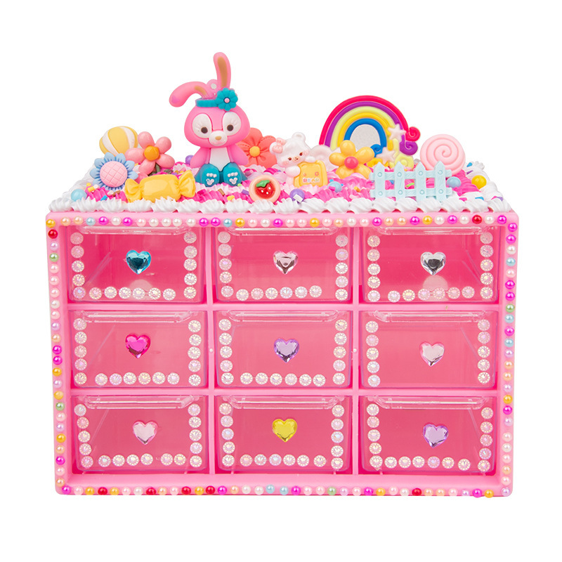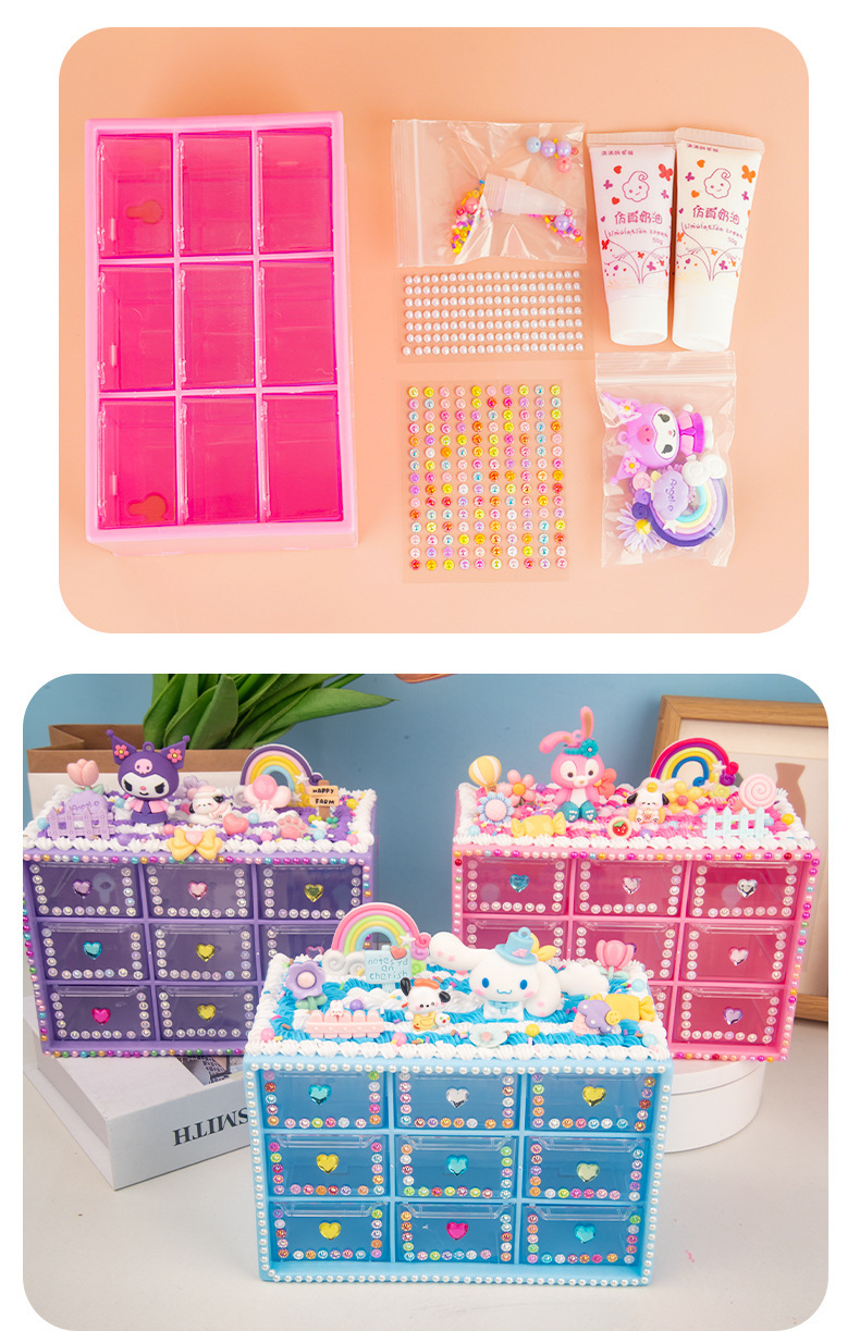 어린이 수제 장난감 DIY 크림 접착제 만들기 재료 패키지 ins 스타일 9칸 수납함 여아 교육용 장난감스토어 가기