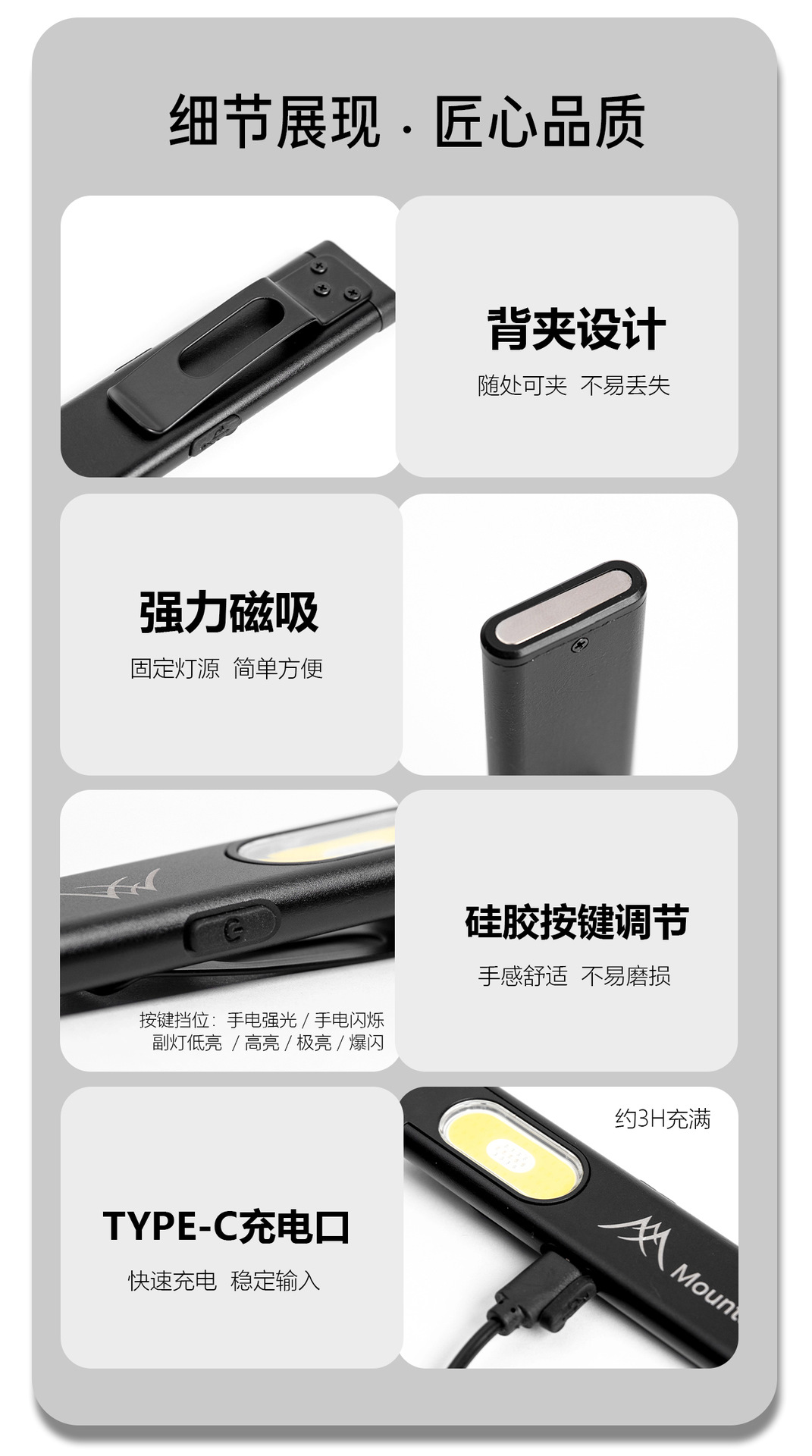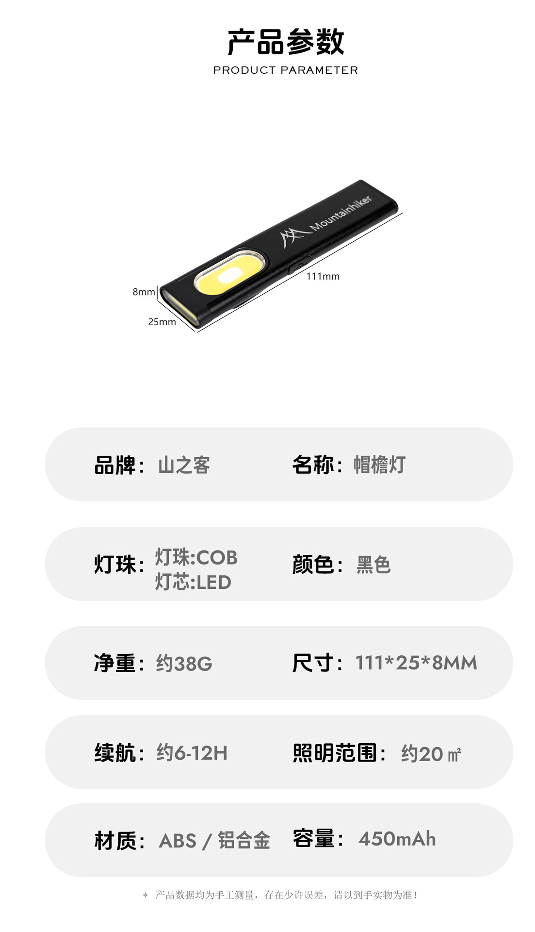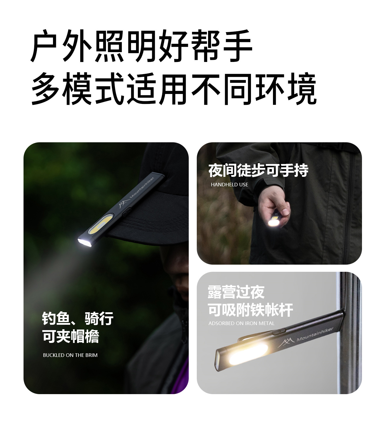산 속의 손님 챙 램프 야외 캠핑 알루미늄 합금 손전등 휴대용 다기능 자기 작업 램프 미니