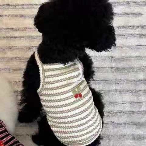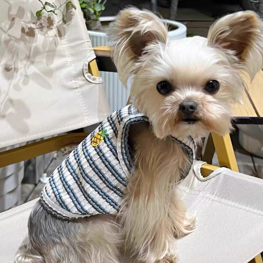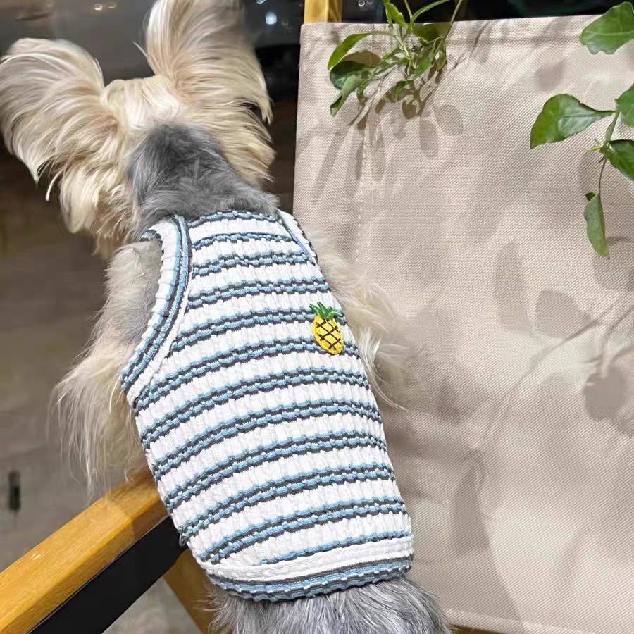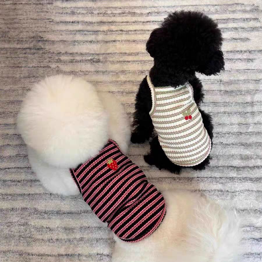 애완동물 봄 여름 과일 자수 멜빵 패션 스트라이프 조끼 강아지 고양이 옷 새끼 강아지 반팔