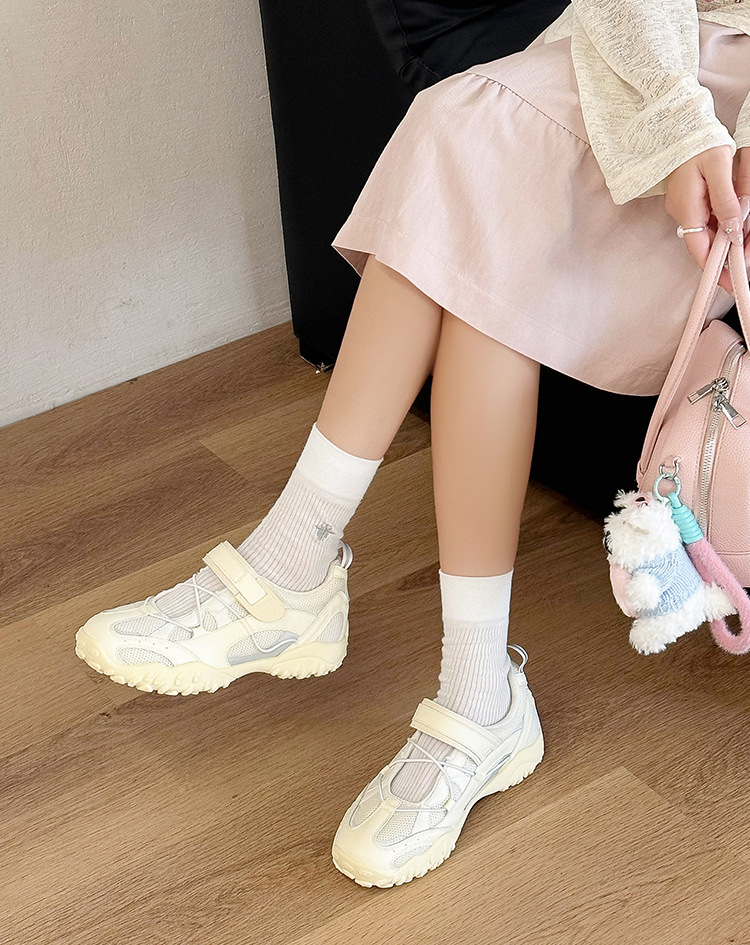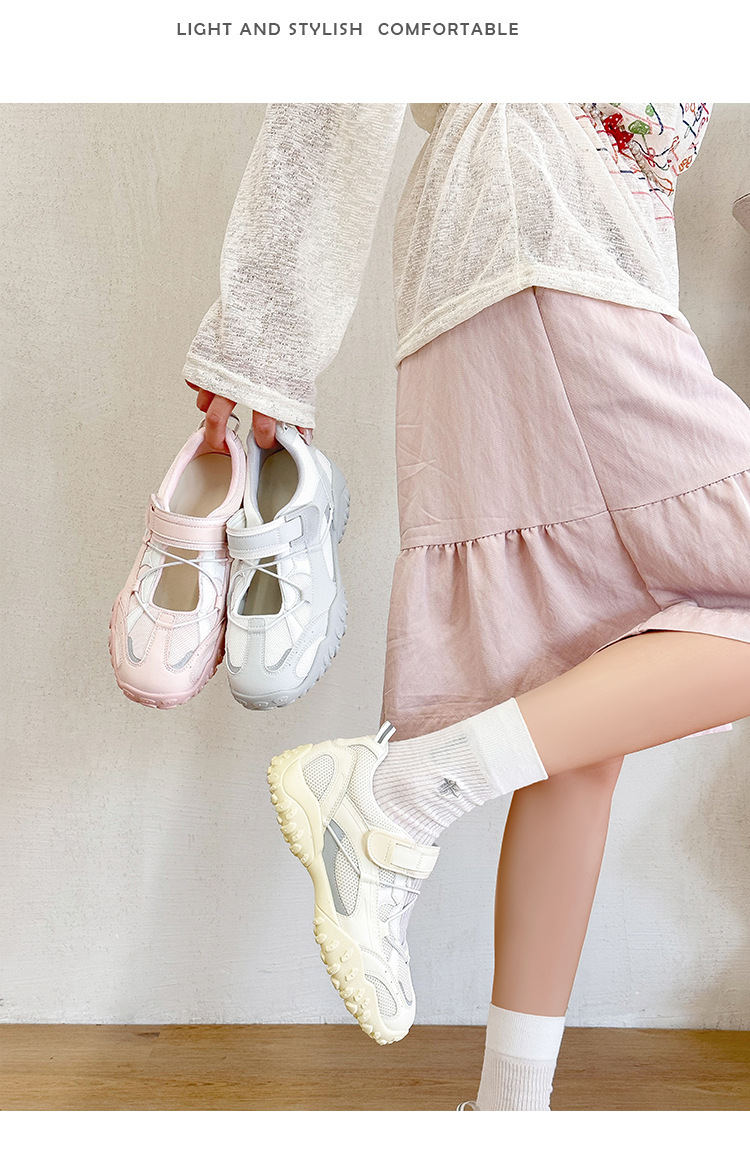 2026년 여름 신상 벨크로 메리제인 슈즈 여성 통기성 스포츠 5cm 키높이 싱글 슈즈 못난이 귀여운 캐주얼 슈즈