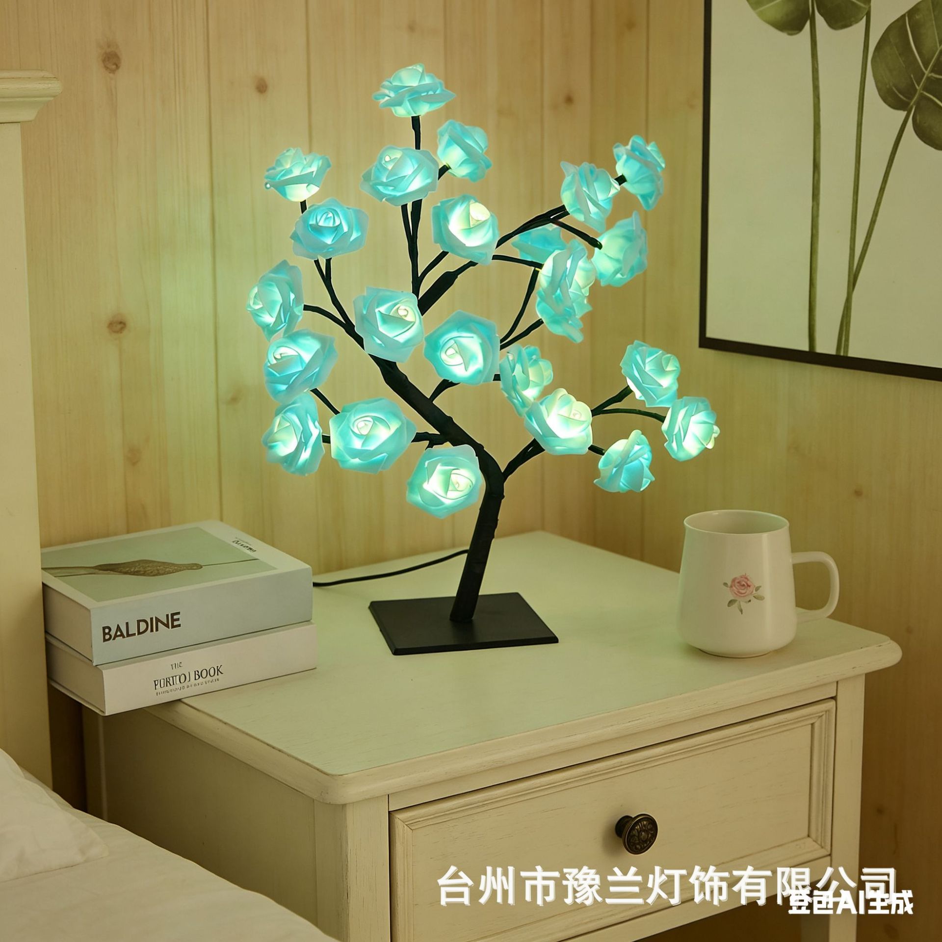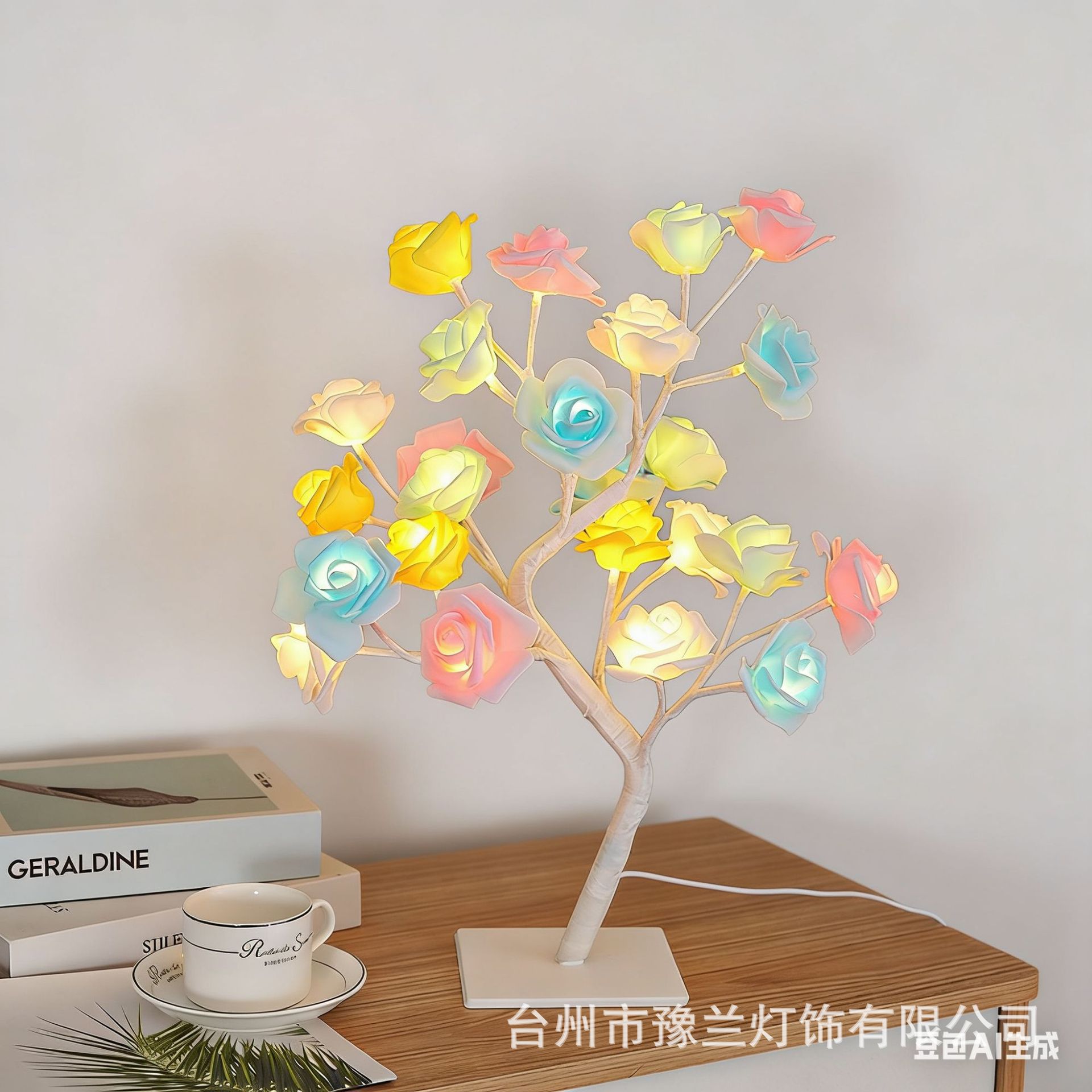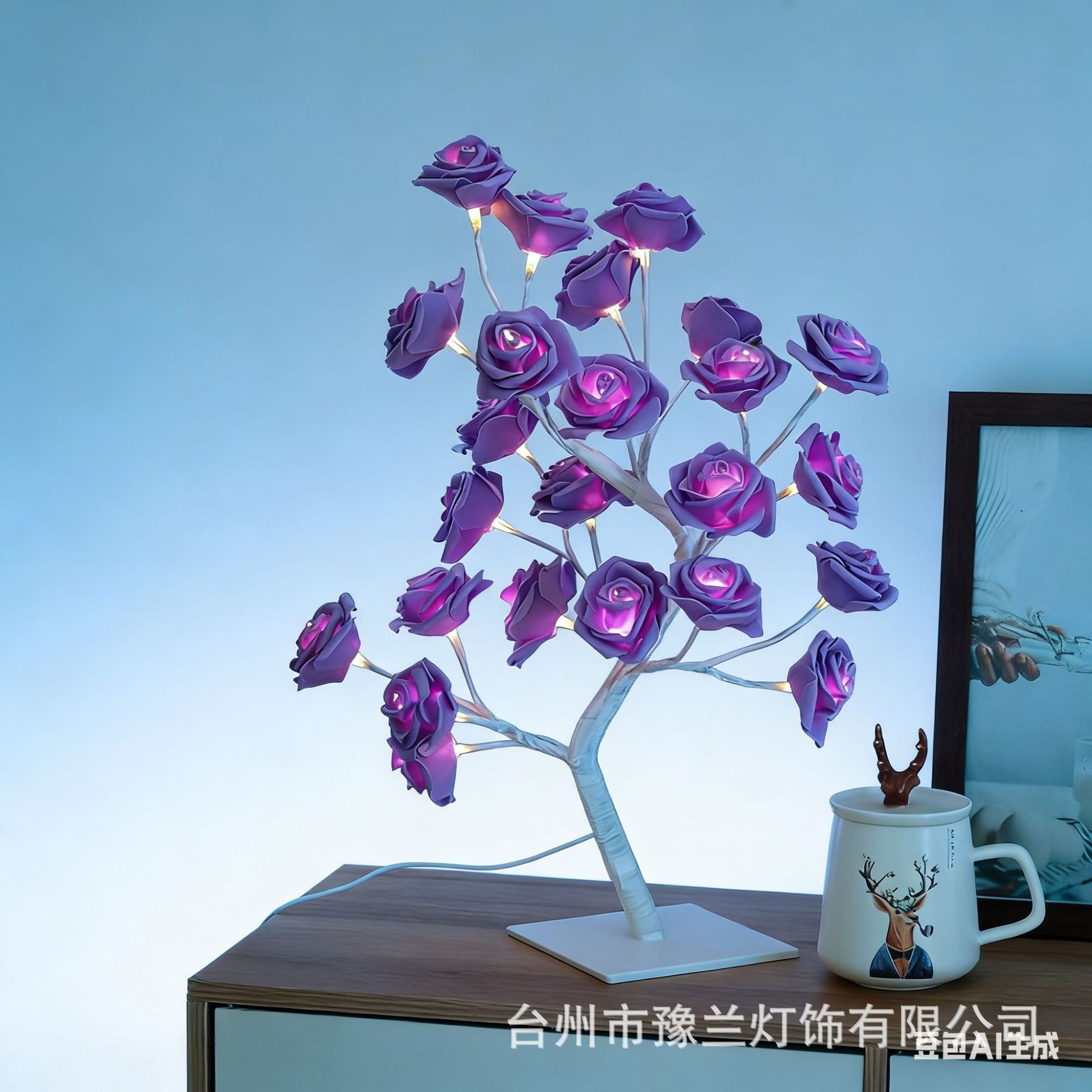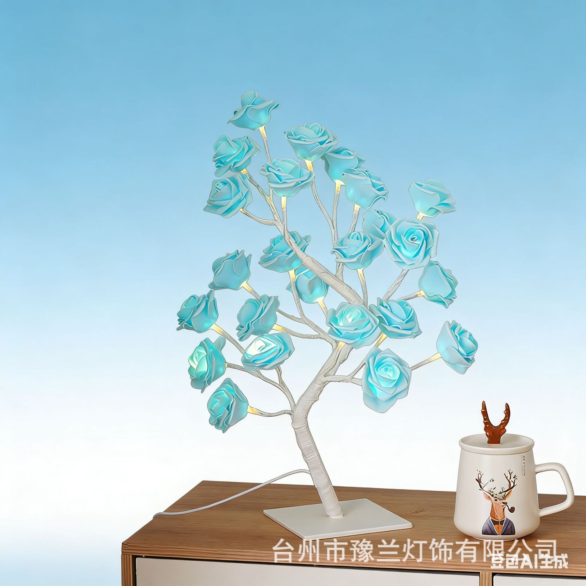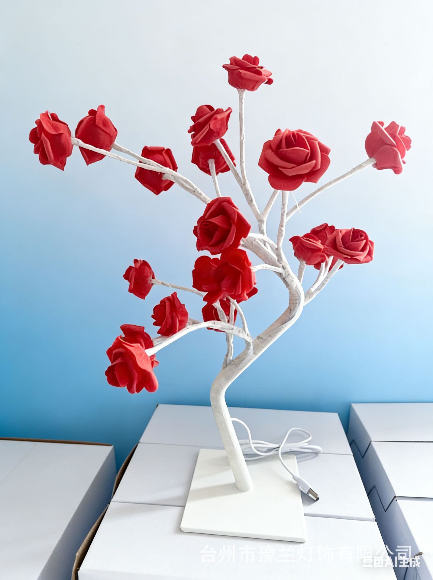 국경 간 폭발 조명 이동식 플라스틱 기본 USB 스위치 LED 시뮬레이션 장미 나무 조명 장식 야간 조명