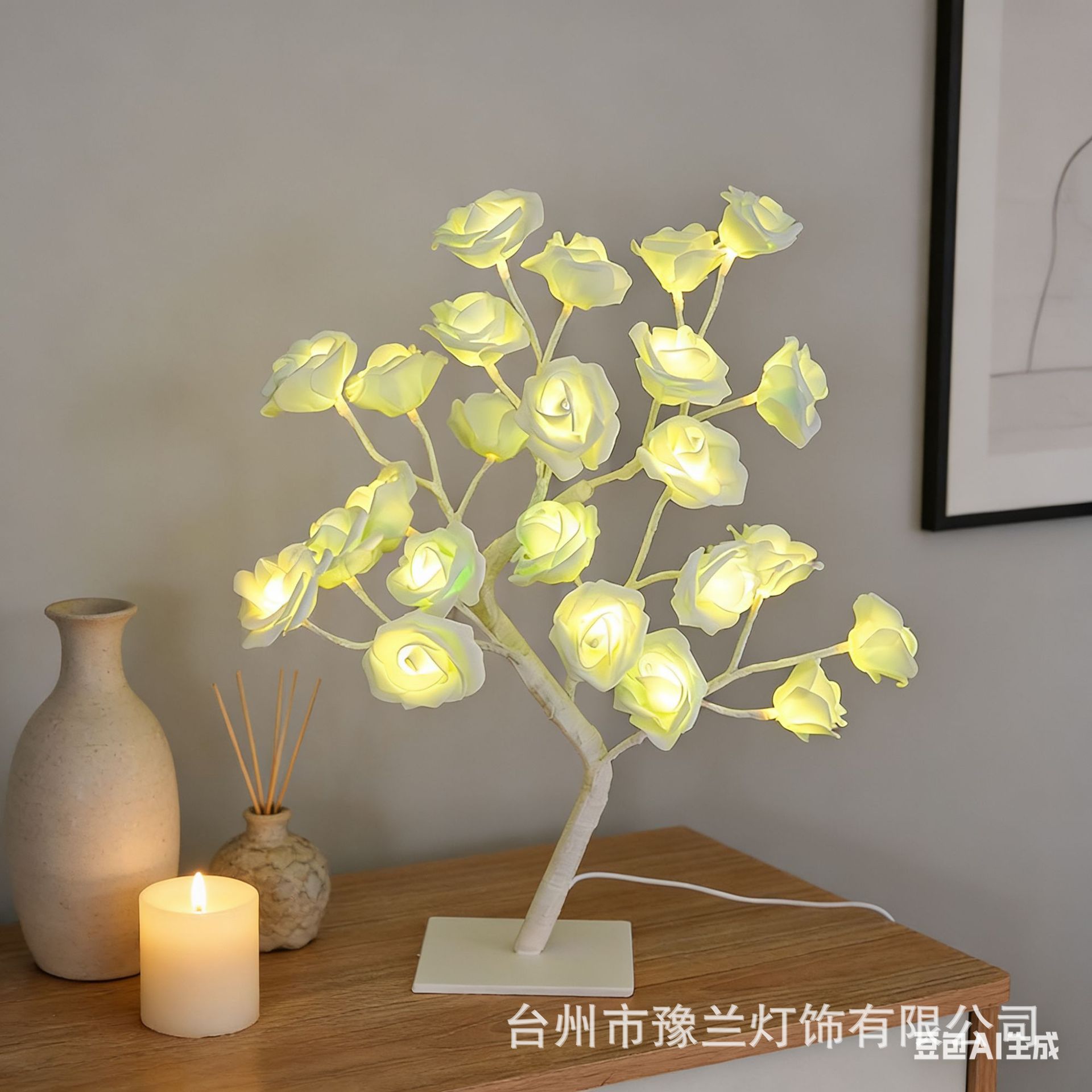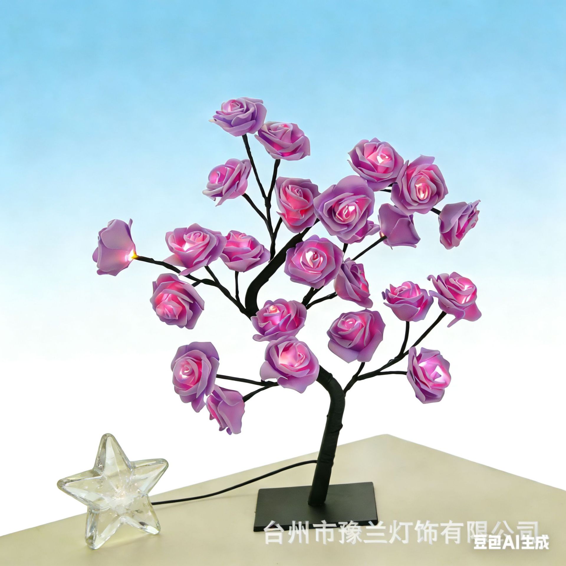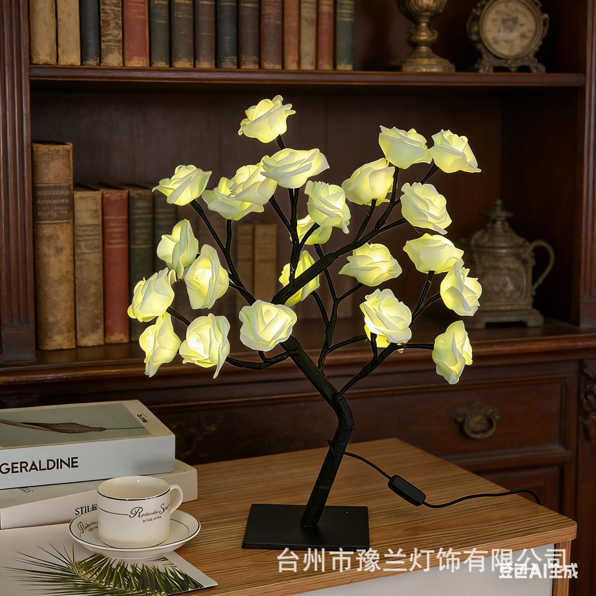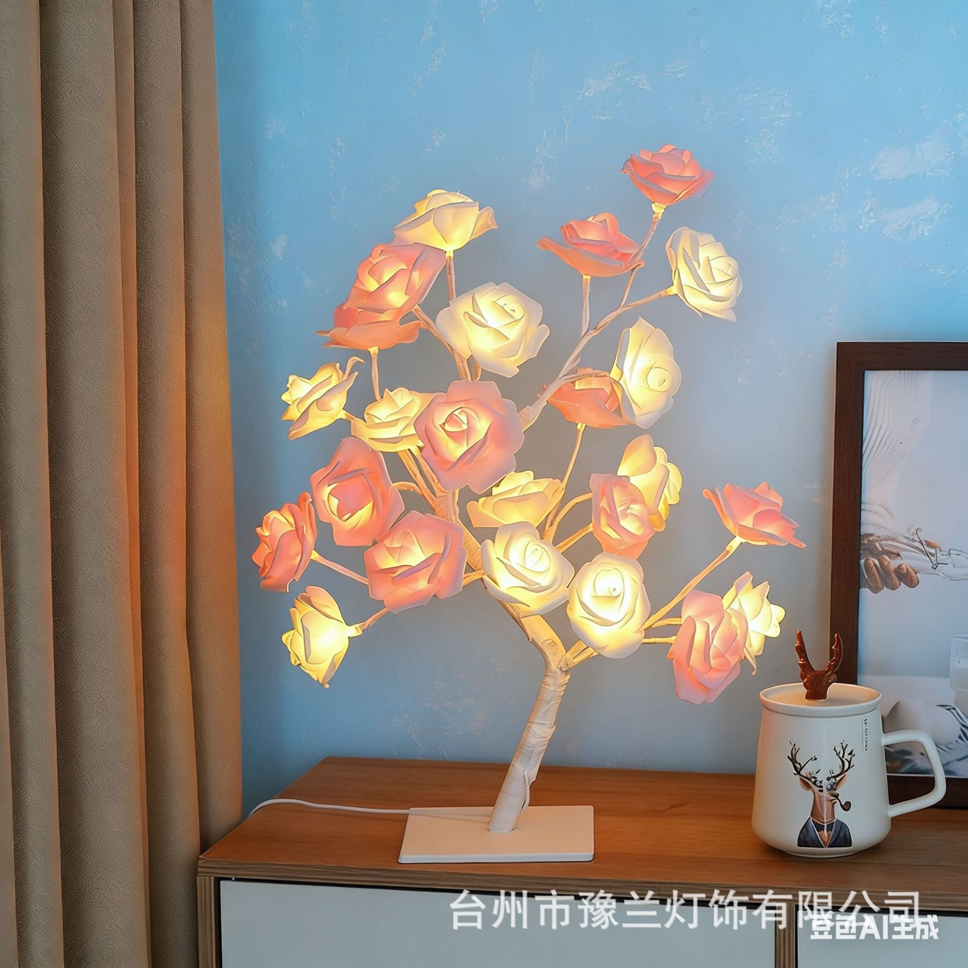 국경 간 폭발 조명 이동식 플라스틱 기본 USB 스위치 LED 시뮬레이션 장미 나무 조명 장식 야간 조명