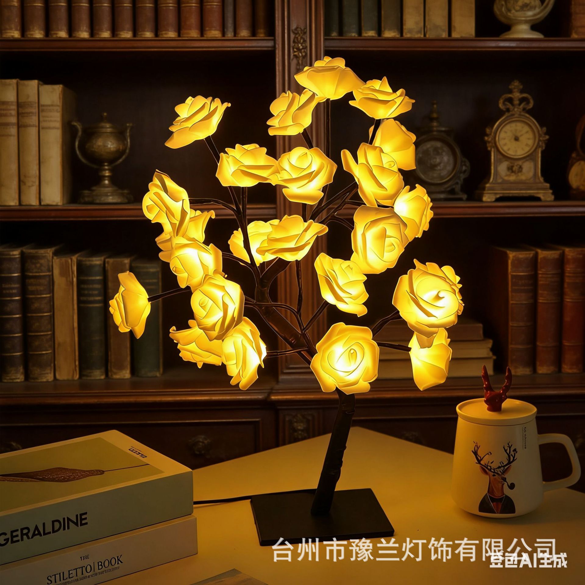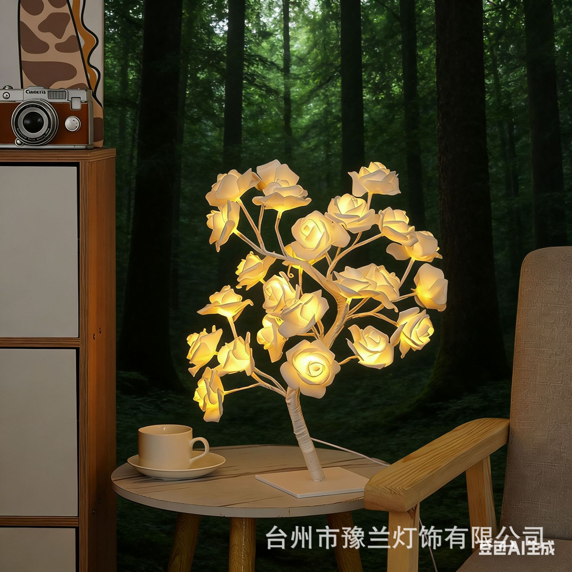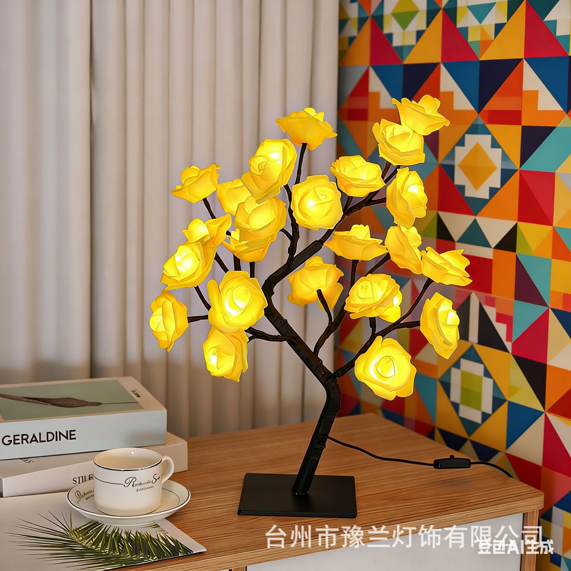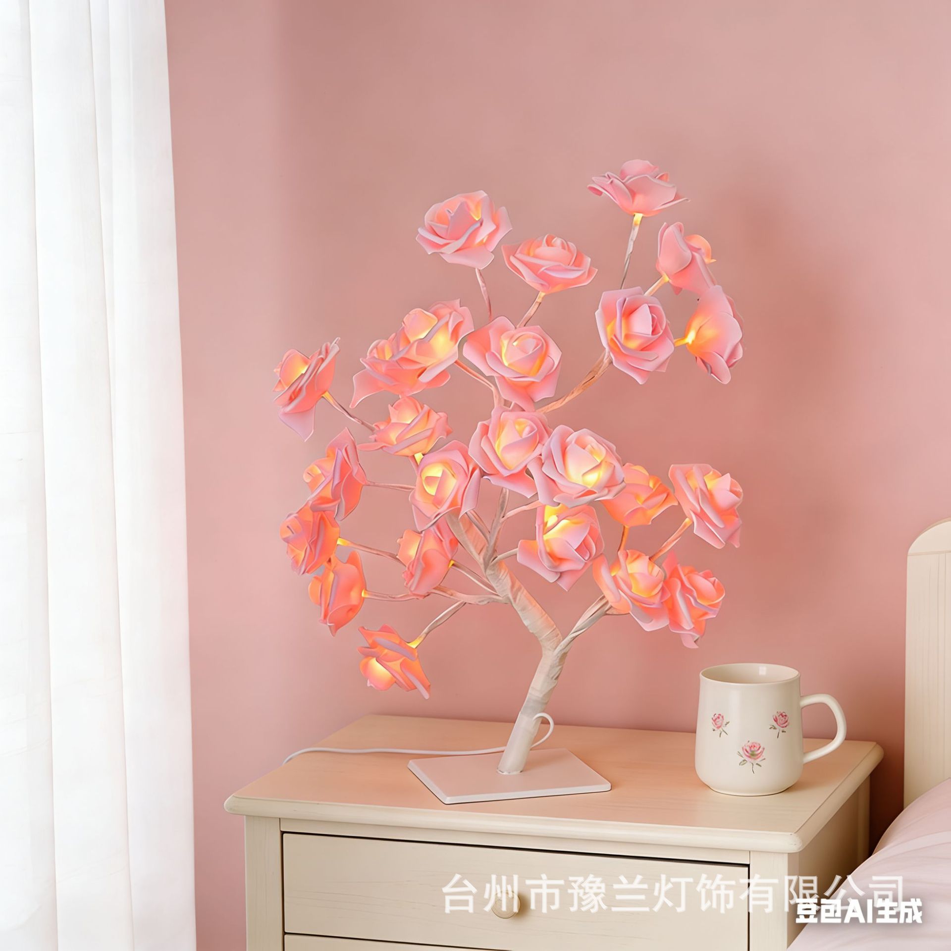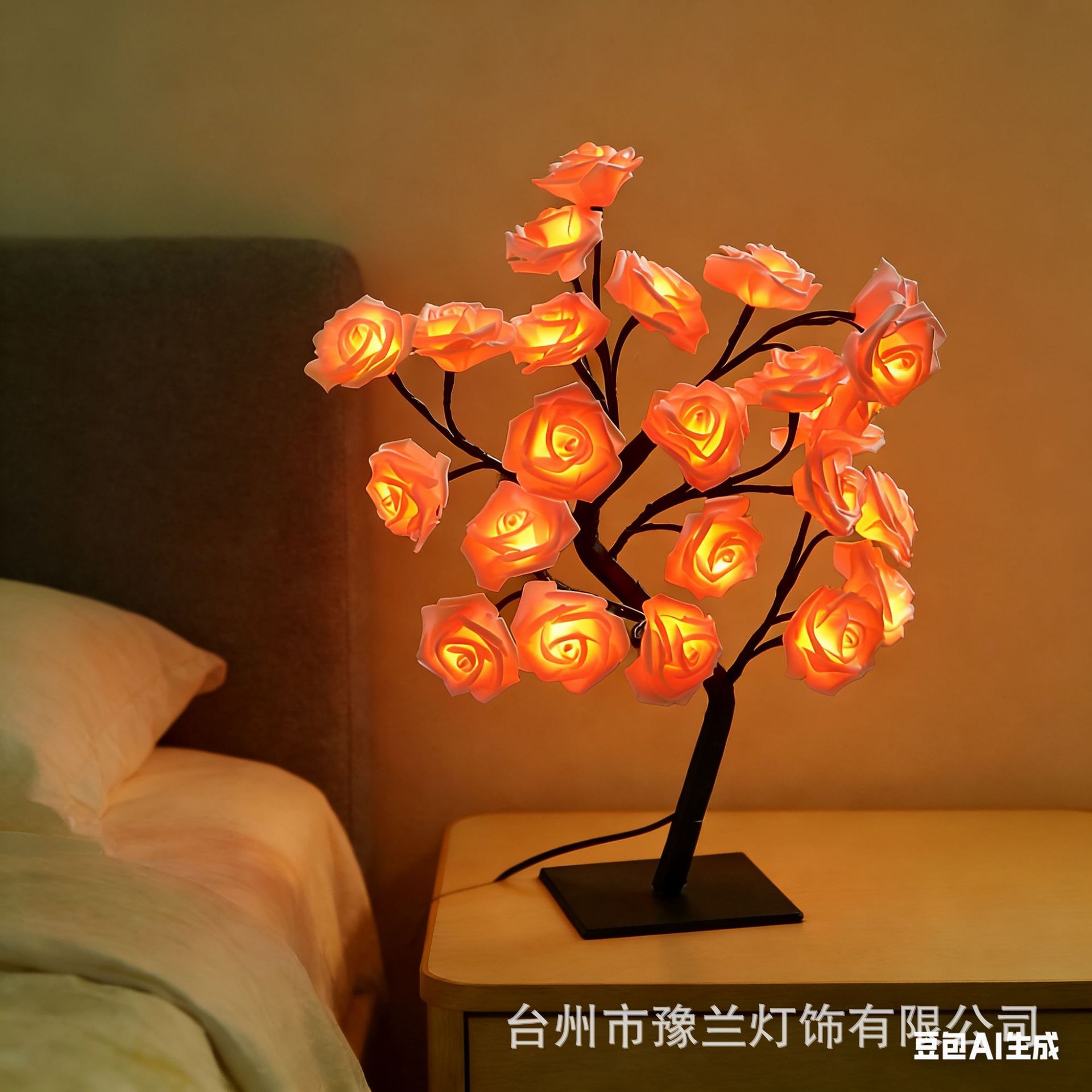 국경 간 폭발 조명 이동식 플라스틱 기본 USB 스위치 LED 시뮬레이션 장미 나무 조명 장식 야간 조명
