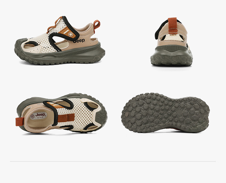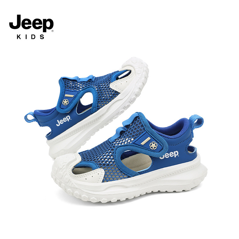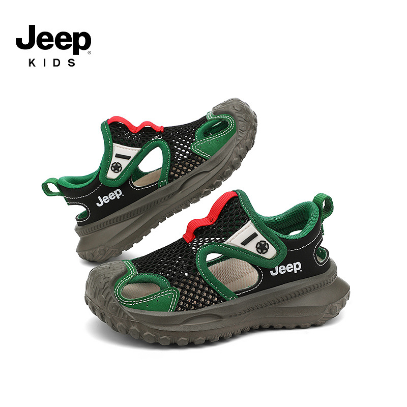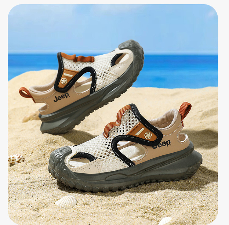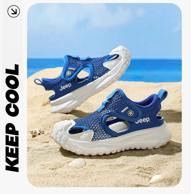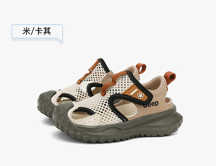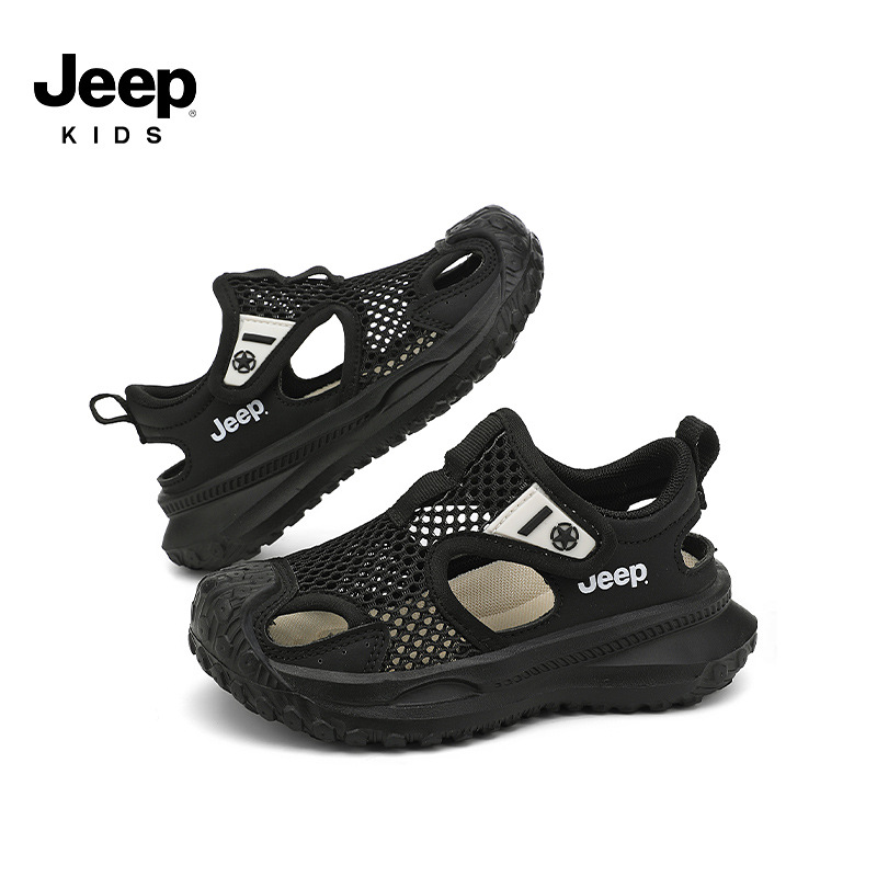 지프 어린이 신발 소년 샌들 2025 여름 메쉬 속이 빈 어린이 스포츠 샌들 학교 덮힌 발가락 샌들 통기성