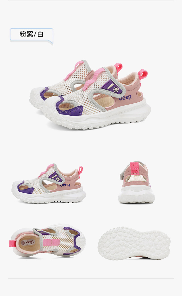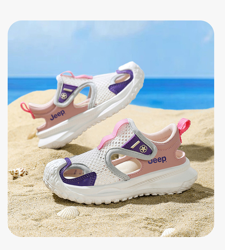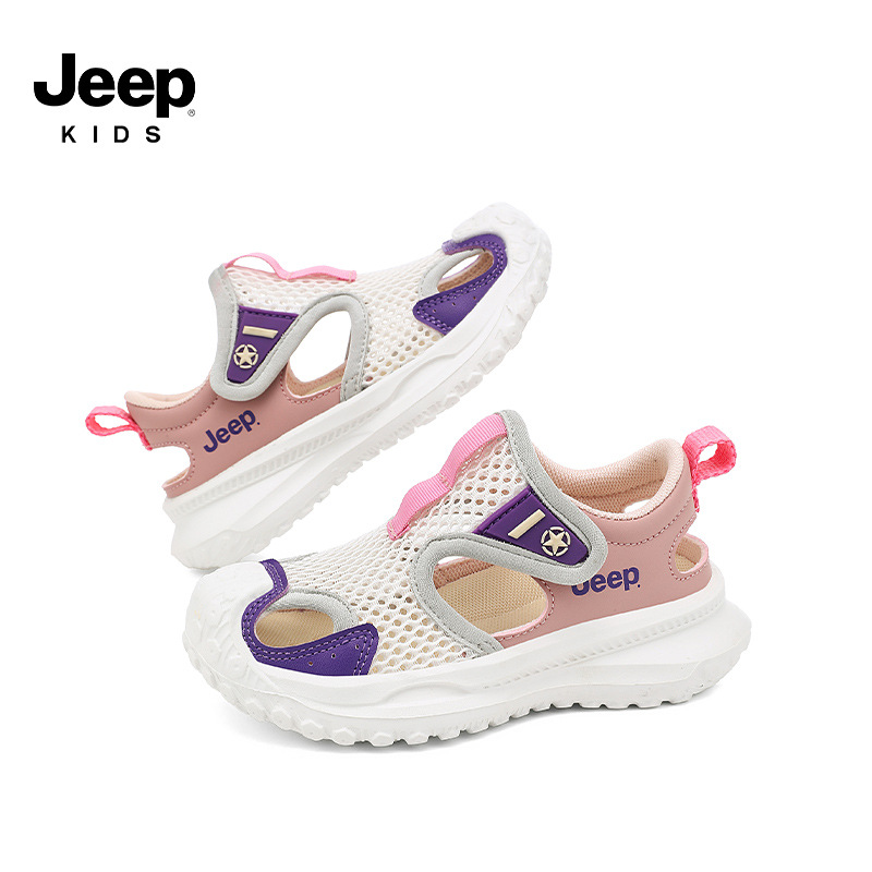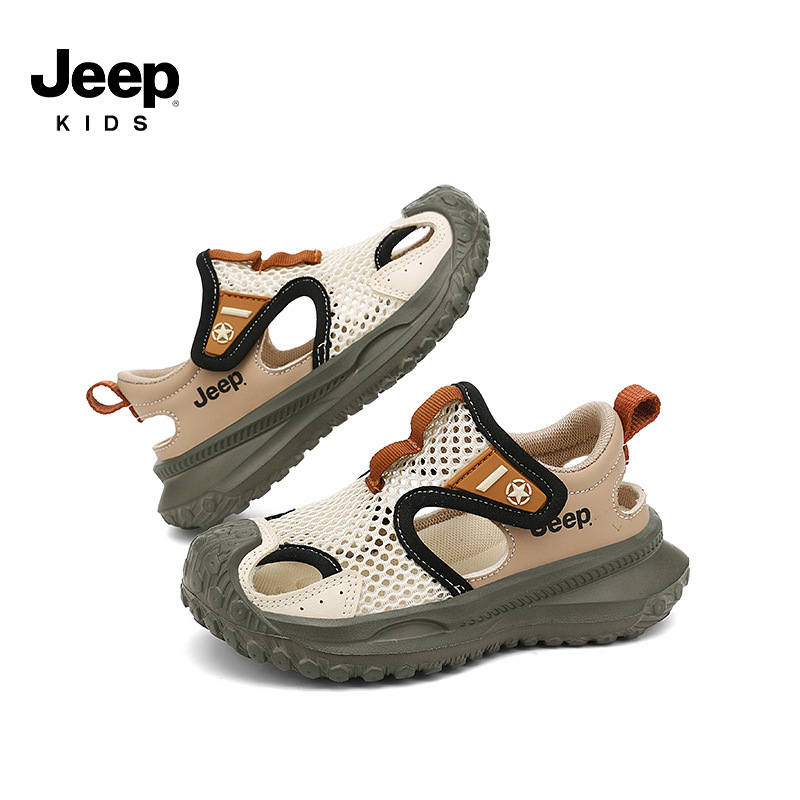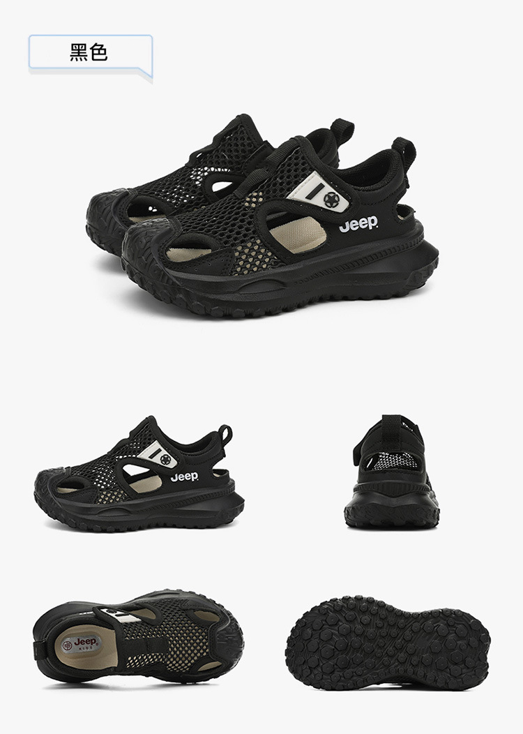 지프 어린이 신발 소년 샌들 2025 여름 메쉬 속이 빈 어린이 스포츠 샌들 학교 덮힌 발가락 샌들 통기성