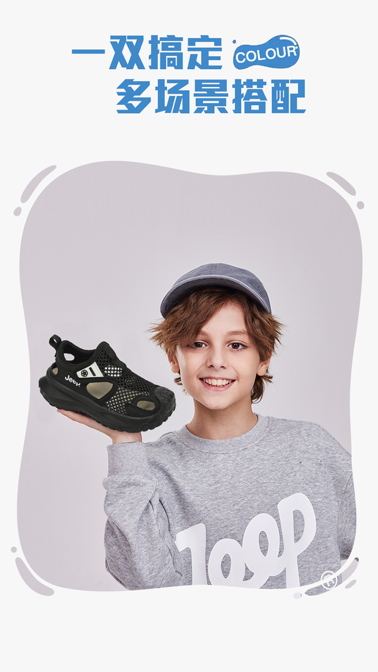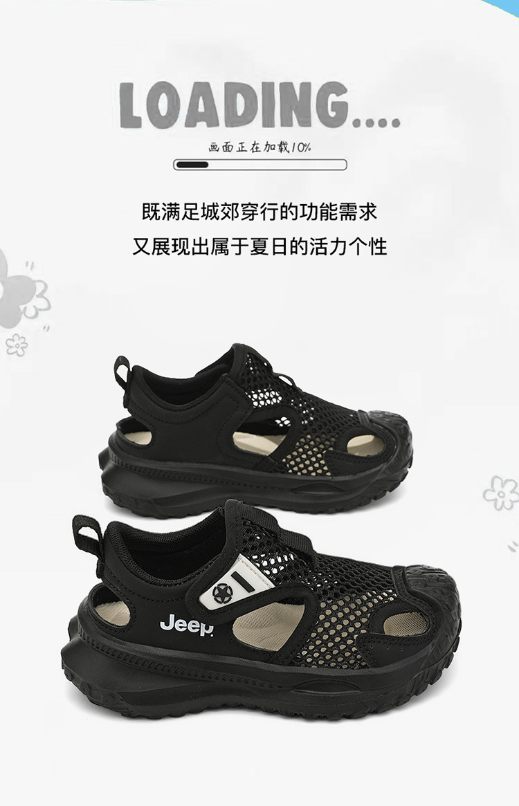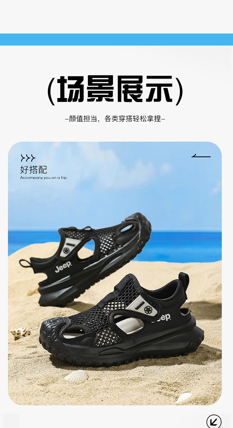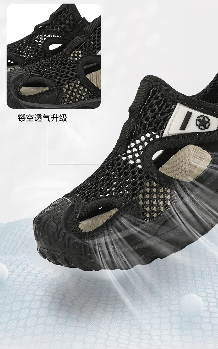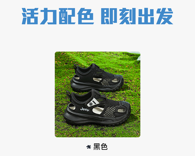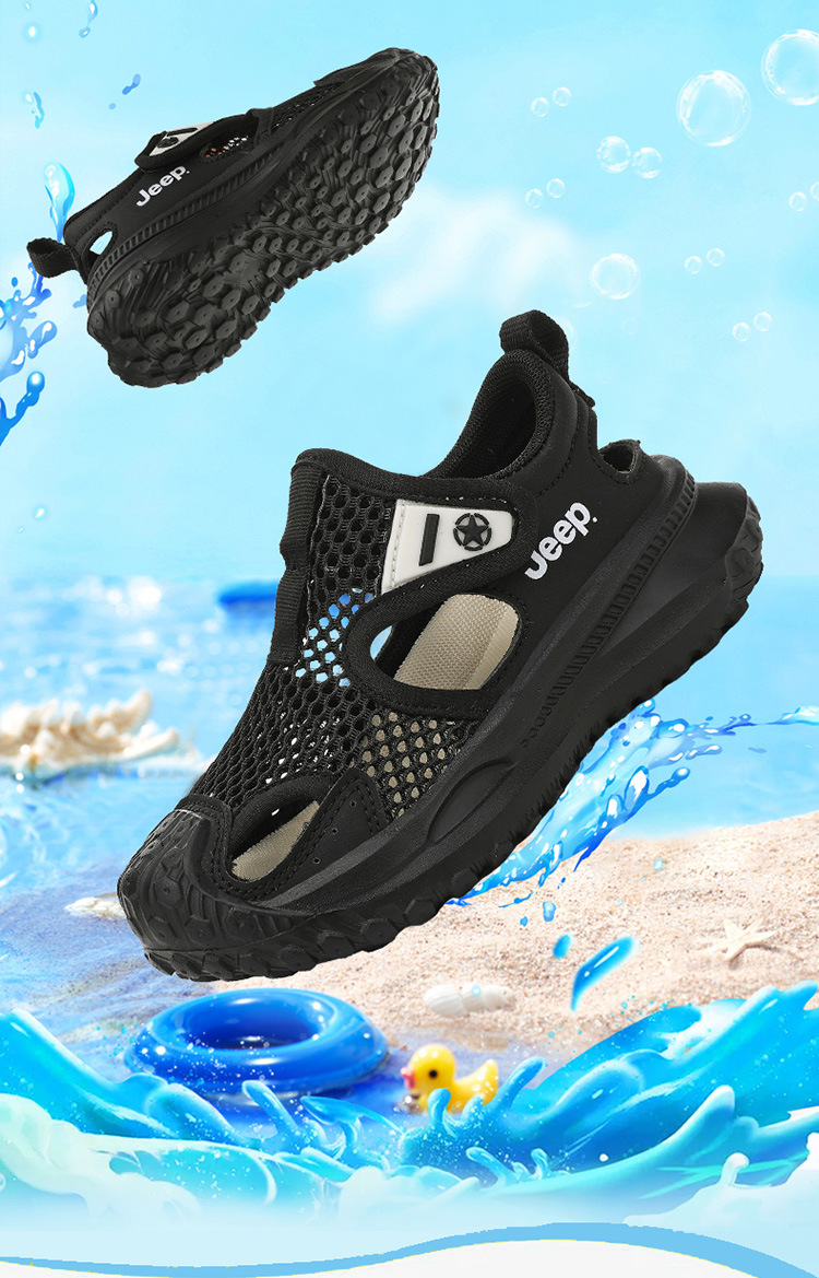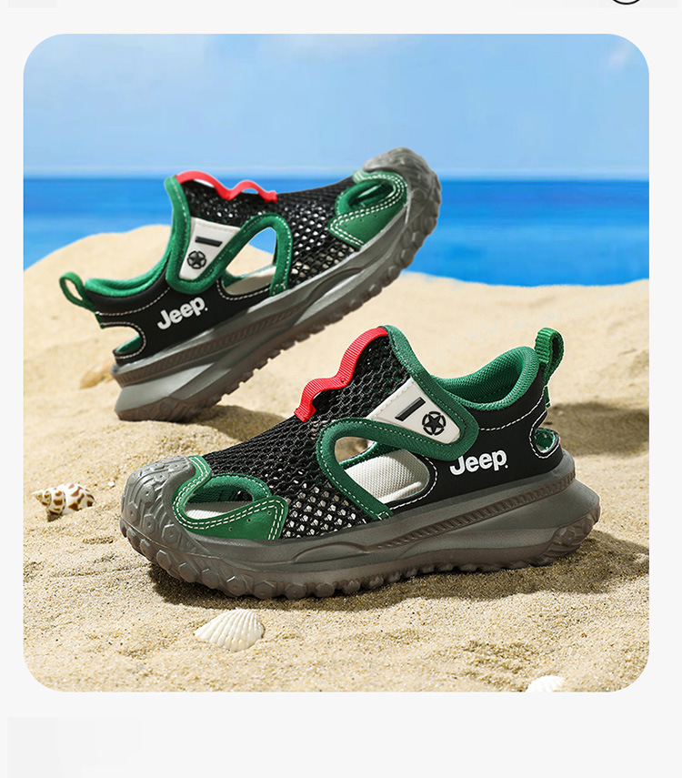 지프 어린이 신발 소년 샌들 2025 여름 메쉬 속이 빈 어린이 스포츠 샌들 학교 덮힌 발가락 샌들 통기성스토어 가기