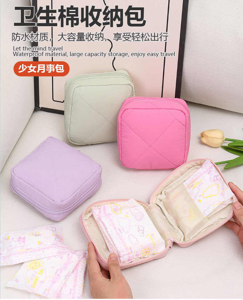 일본 만화 줄무늬 시리즈 위생 면화 저장 가방 귀여운 소녀 휴대용 화장품 작은 품목 가방스토어 가기