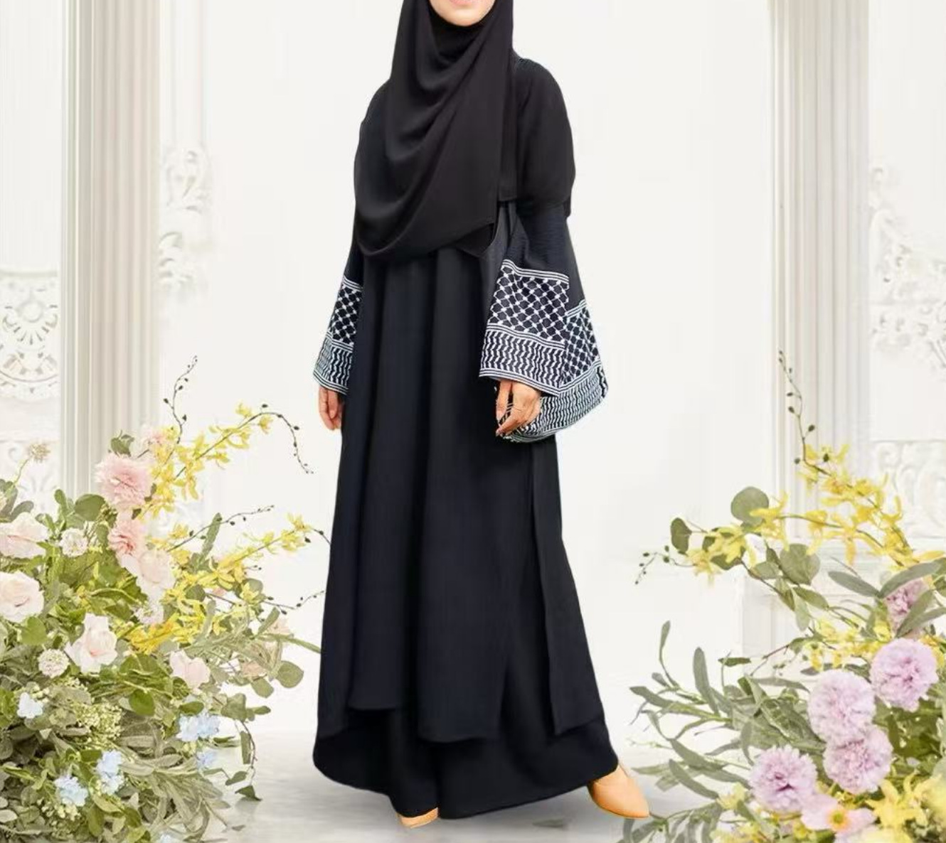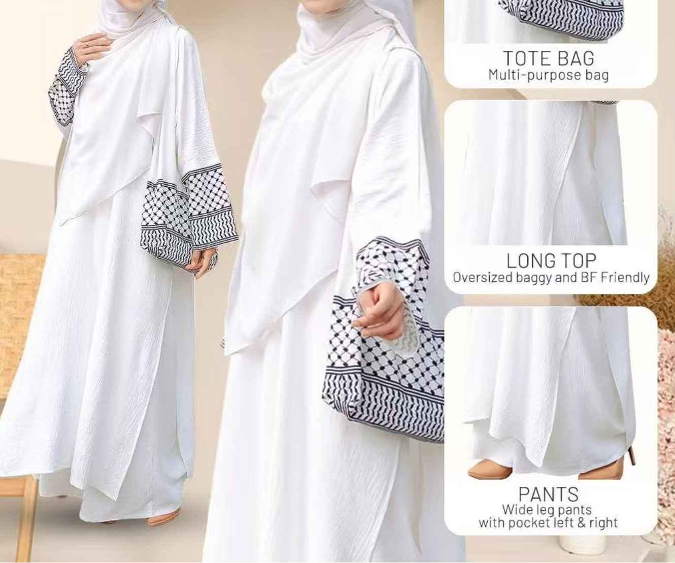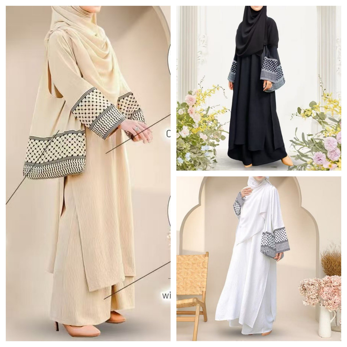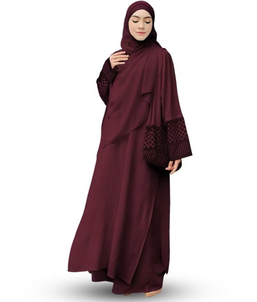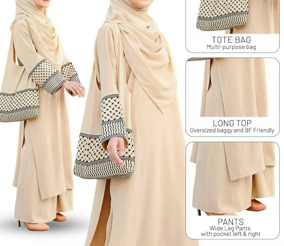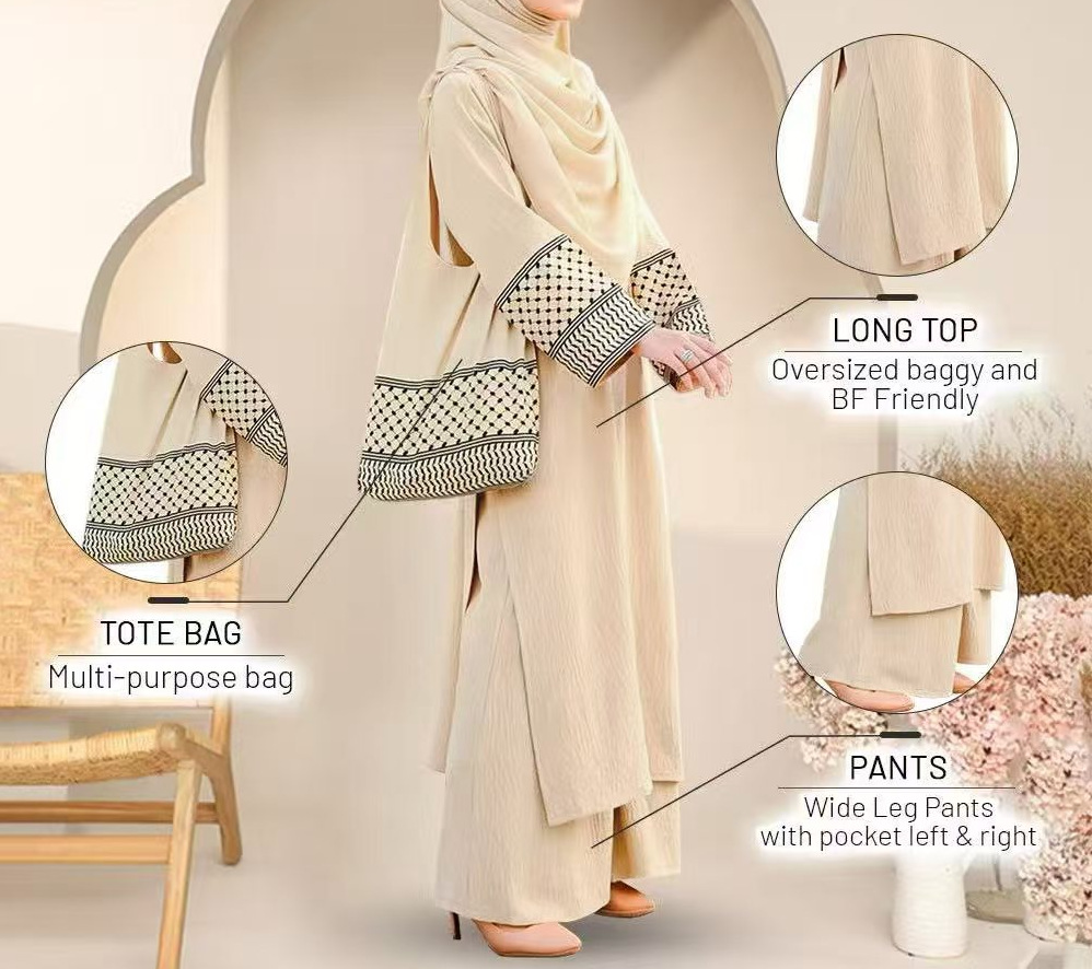 2025년 신상품 3피스 세트 동남아시아 스타일 무지 코튼 린넨 주름 패션 루즈핏 큰 사이즈 롱 가운스토어 가기