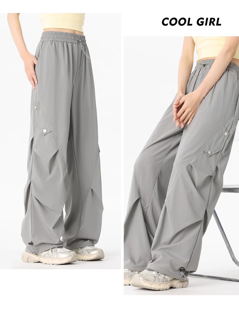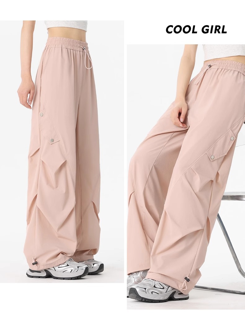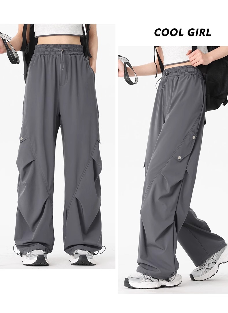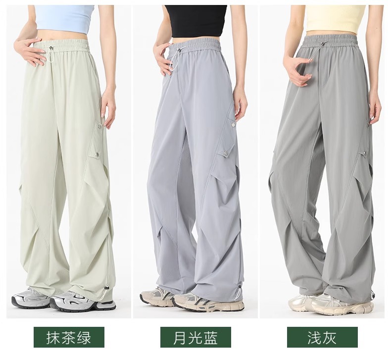 딱따구리 야외 속건성 방수 낙하산 바지 남성과 여성을위한 여름 새로운 캐주얼 얇은 얼음 실크 느슨한 충전 바지