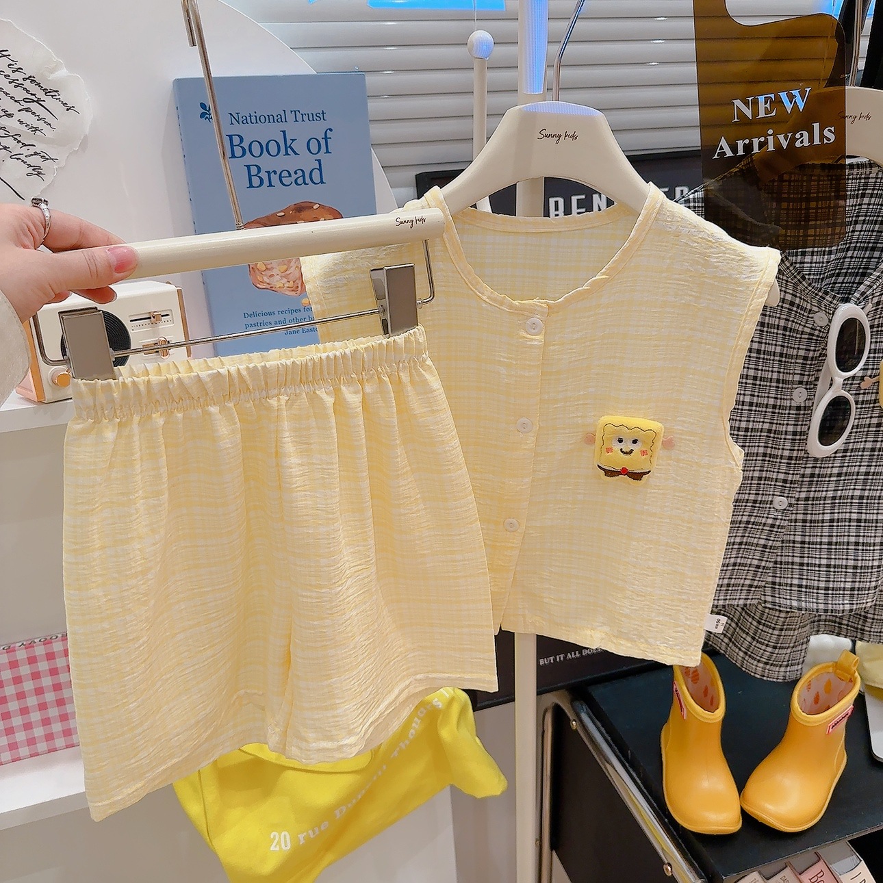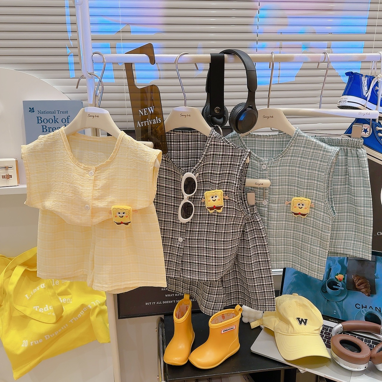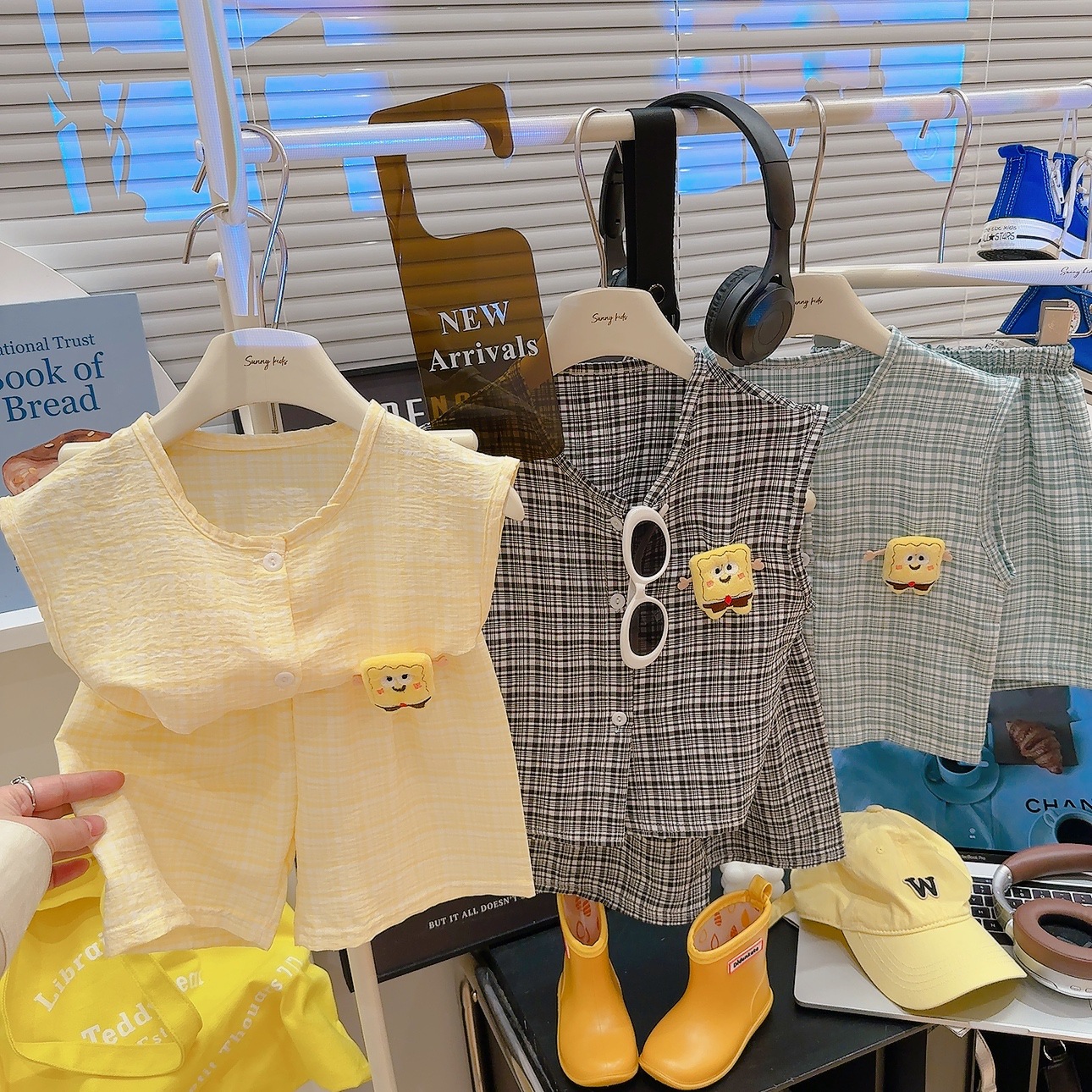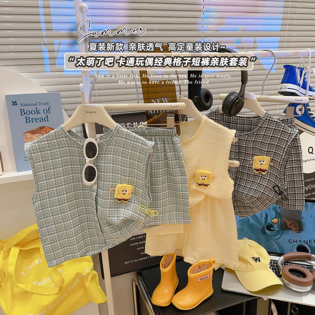여름 신작 아동용 민소매 양복 한국식 소년 소녀 민소매 조끼 반바지 아동용 유아 패션 양복스토어 가기
