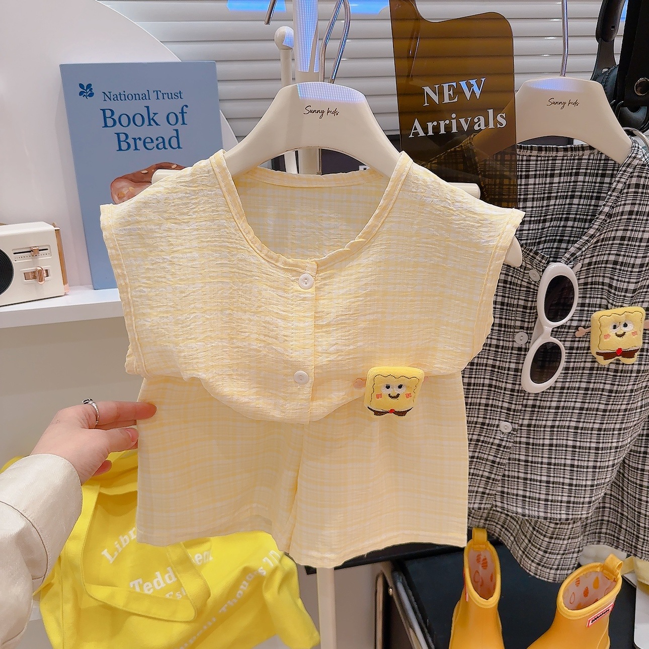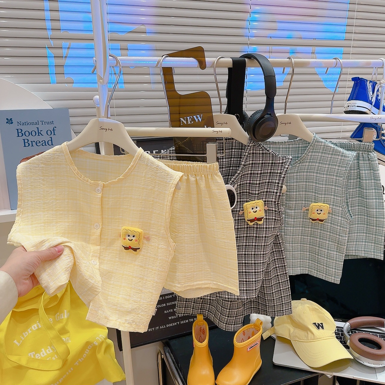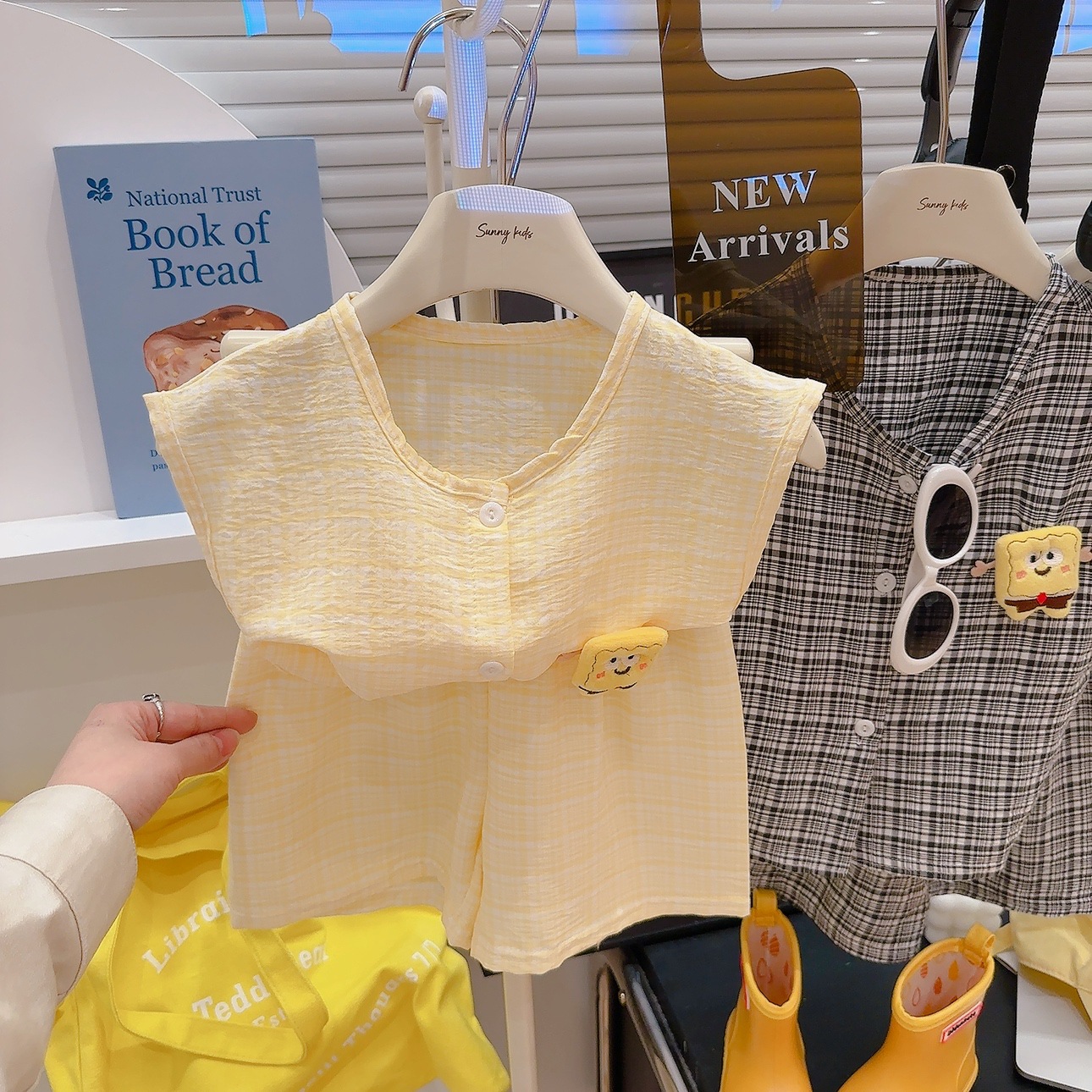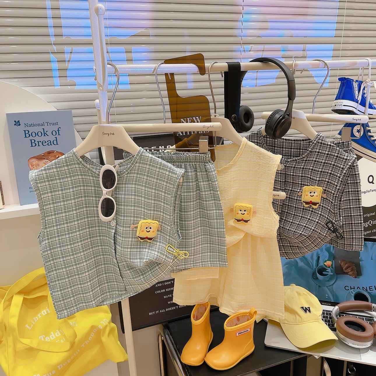 여름 신작 아동용 민소매 양복 한국식 소년 소녀 민소매 조끼 반바지 아동용 유아 패션 양복스토어 가기