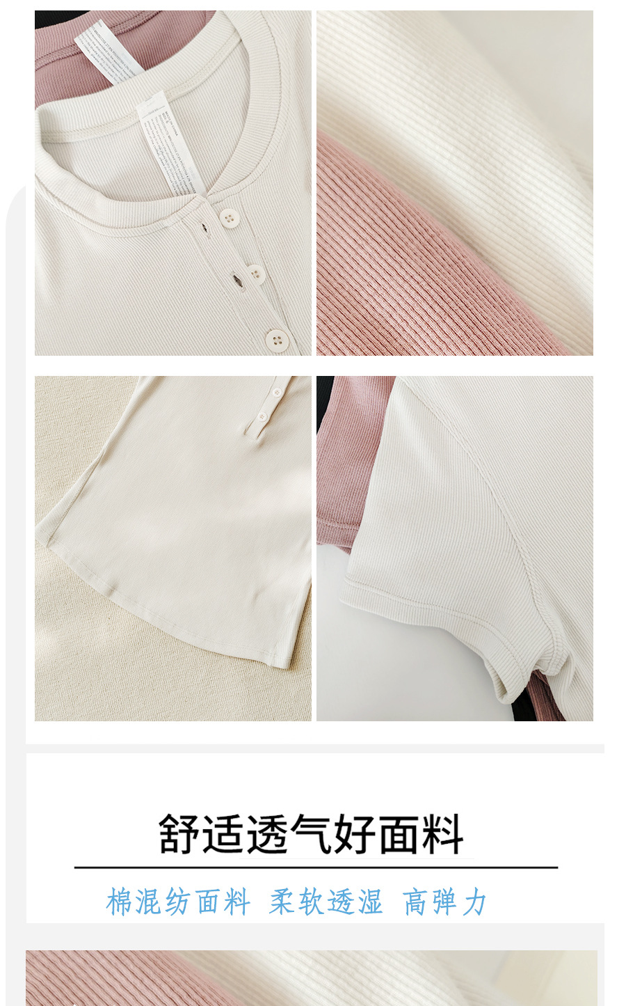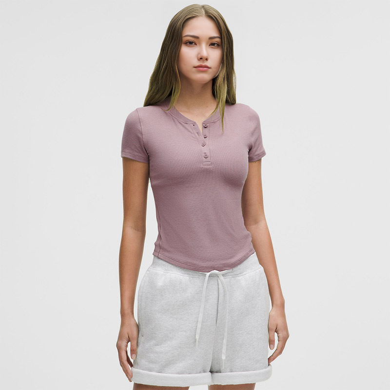 룰루 펜드 헨리 반팔 셔츠 여성용 골지 니트 티셔츠 슬림핏 요가복 버튼 스포츠 여름 베이스 셔츠