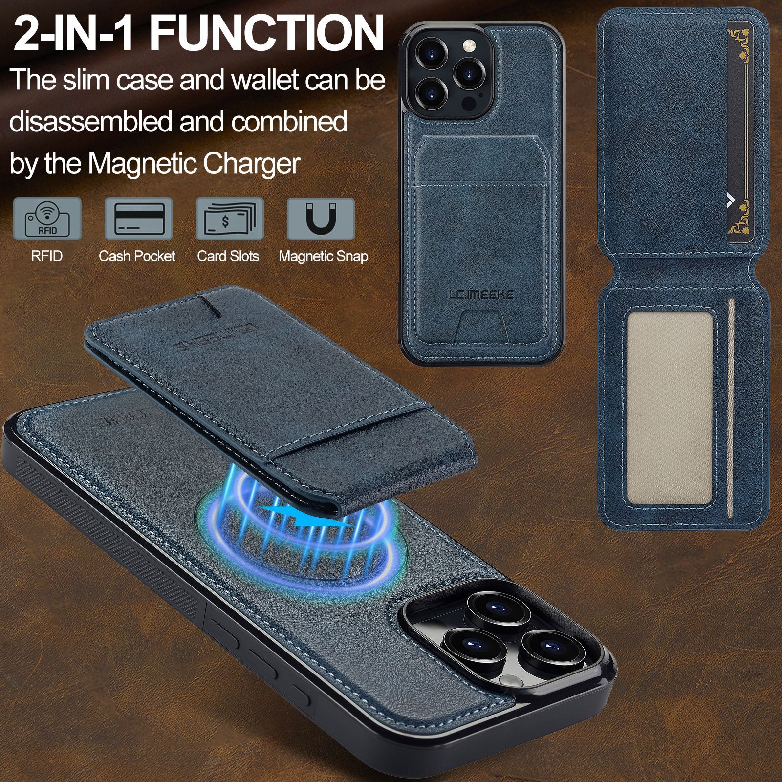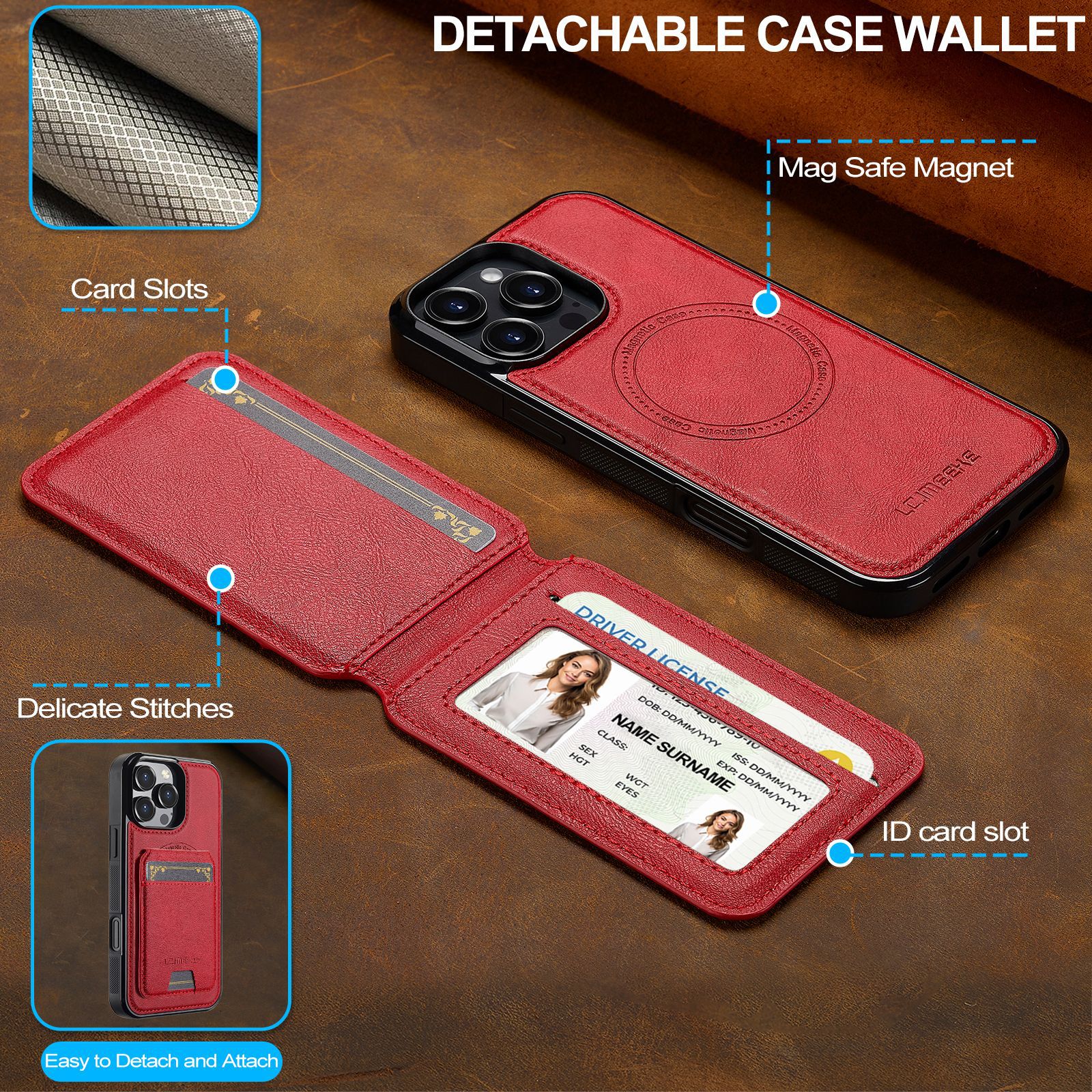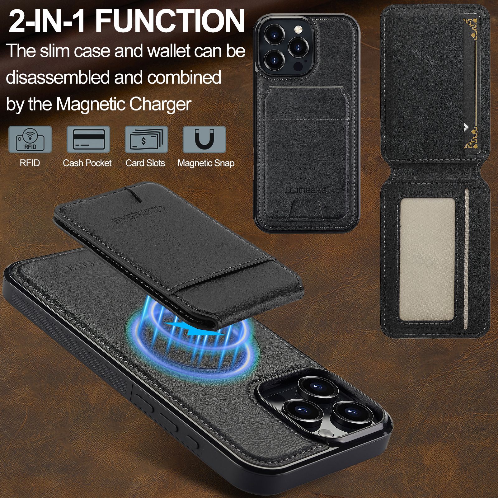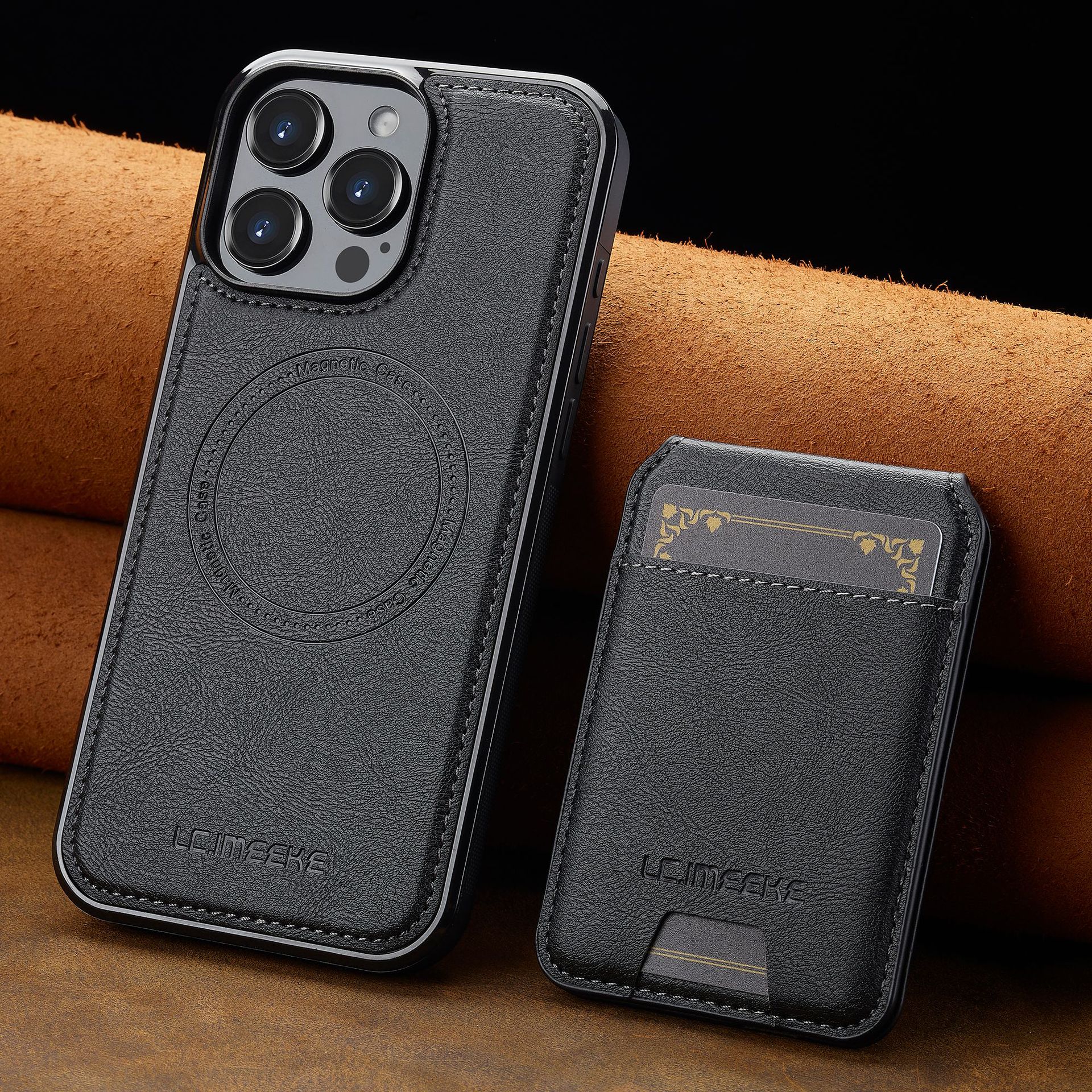 아이폰16Pro 마그네틱 카드 홀더 가죽 케이스 15plus 보호 케이스 14max 애플 17 분리형 휴대폰 케이스