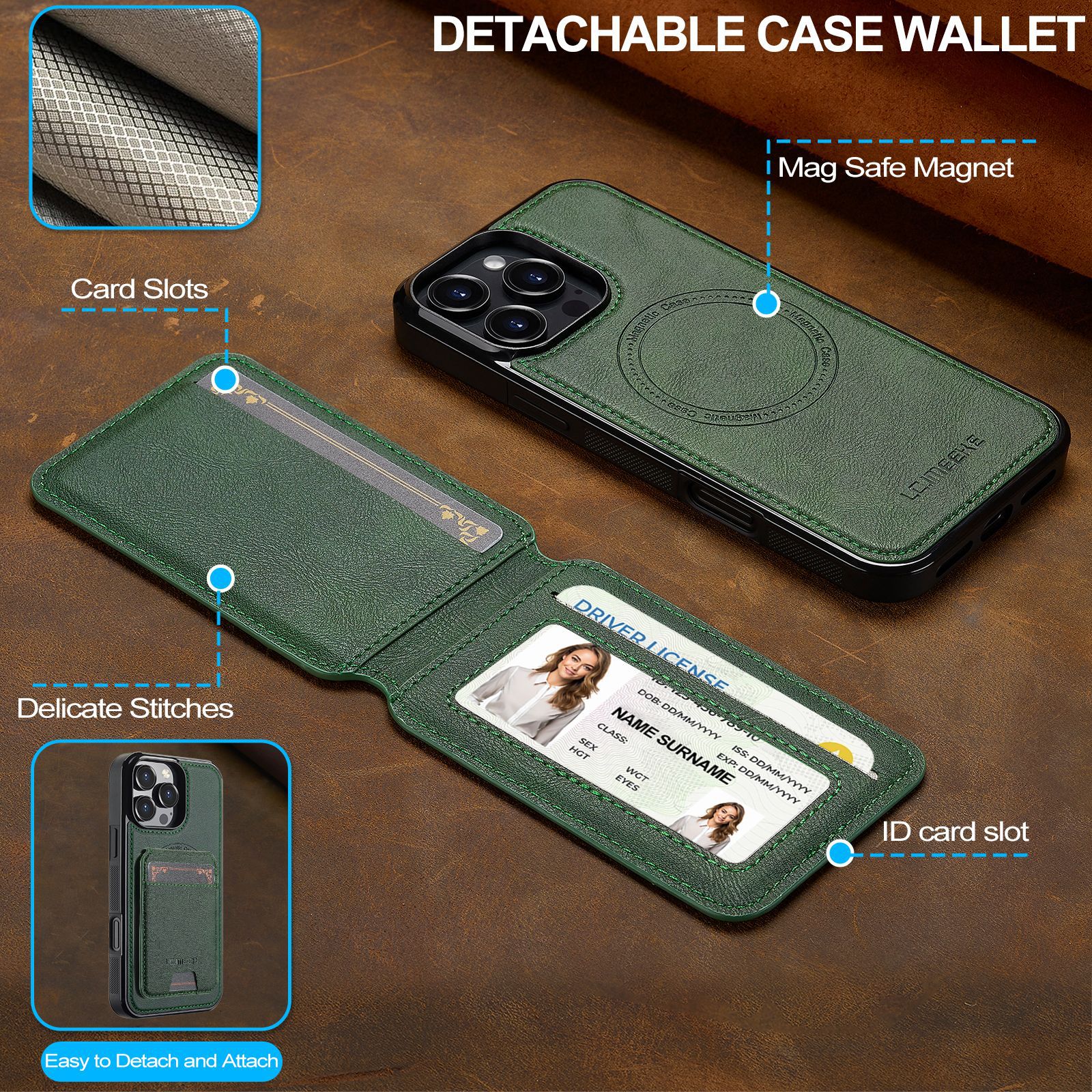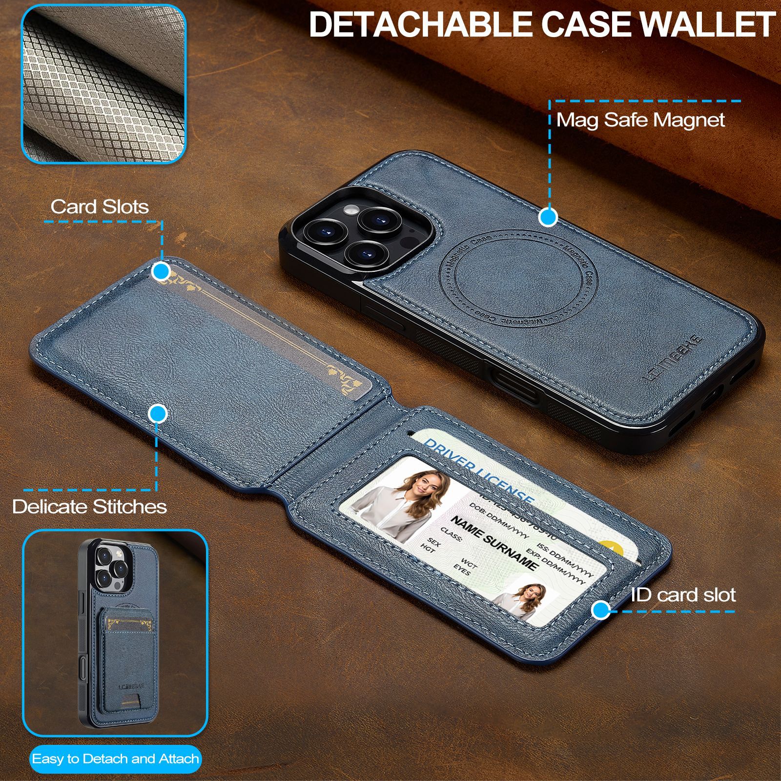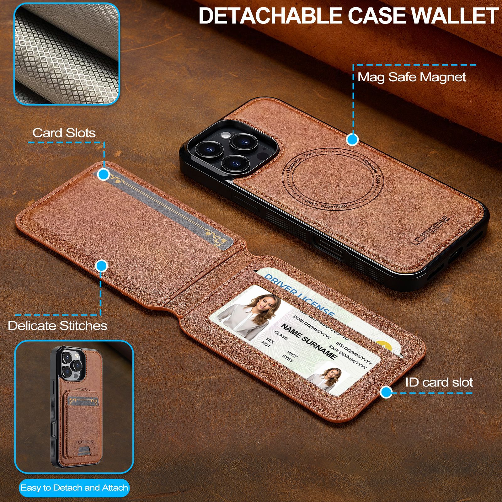 아이폰16Pro 마그네틱 카드 홀더 가죽 케이스 15plus 보호 케이스 14max 애플 17 분리형 휴대폰 케이스스토어 가기