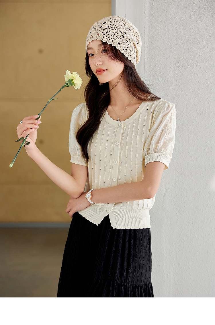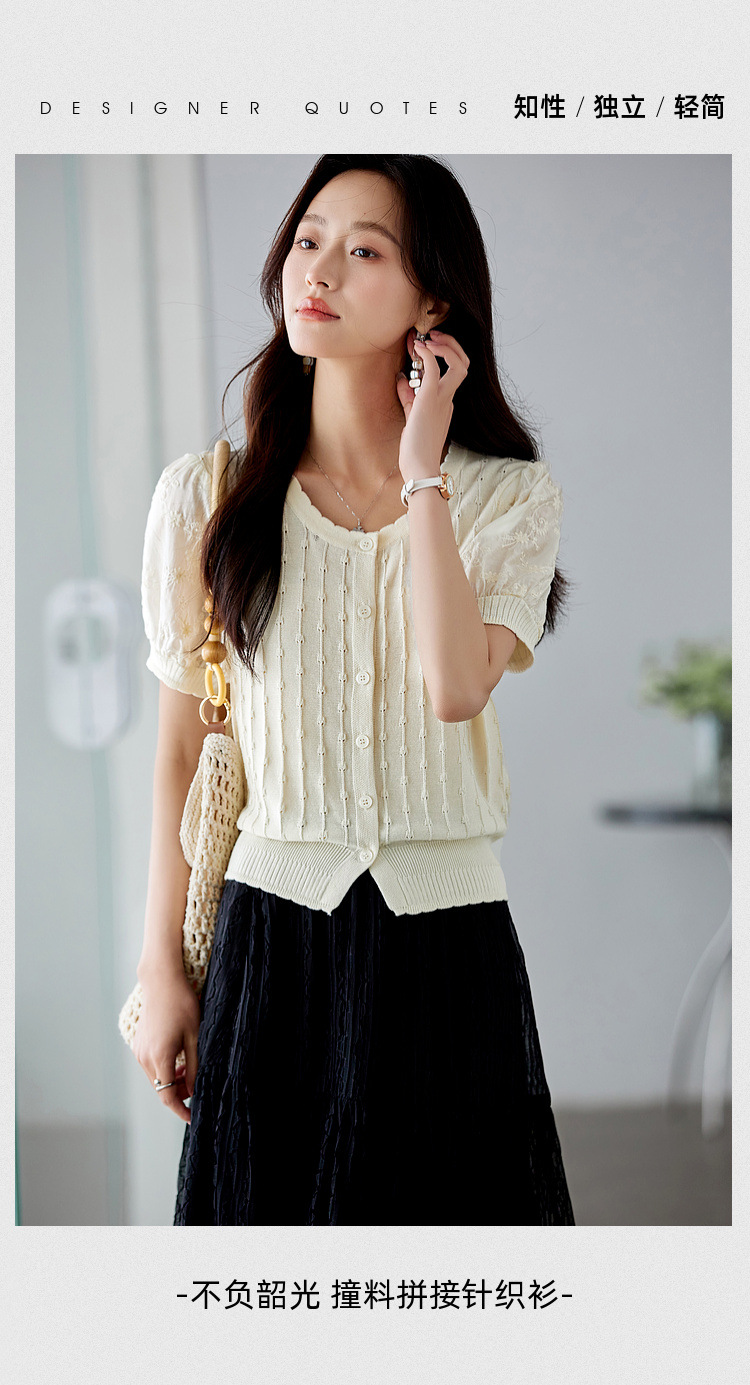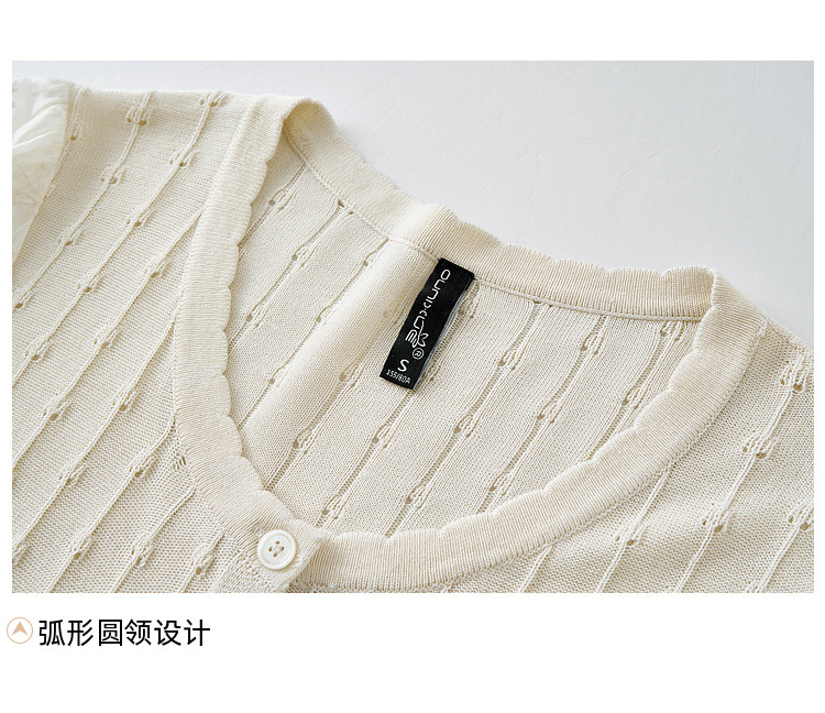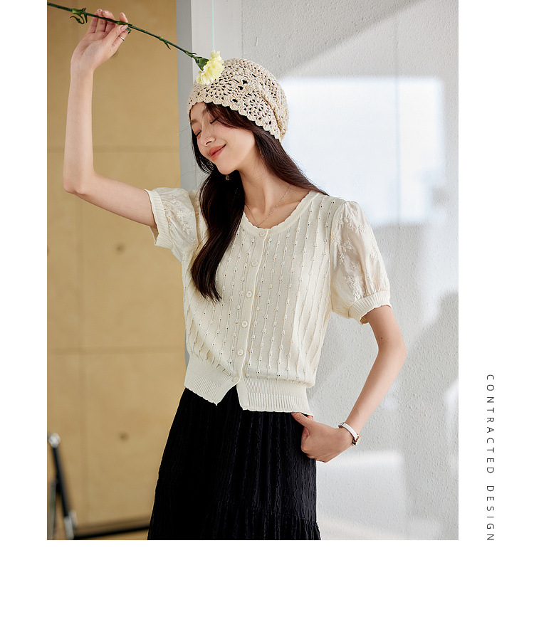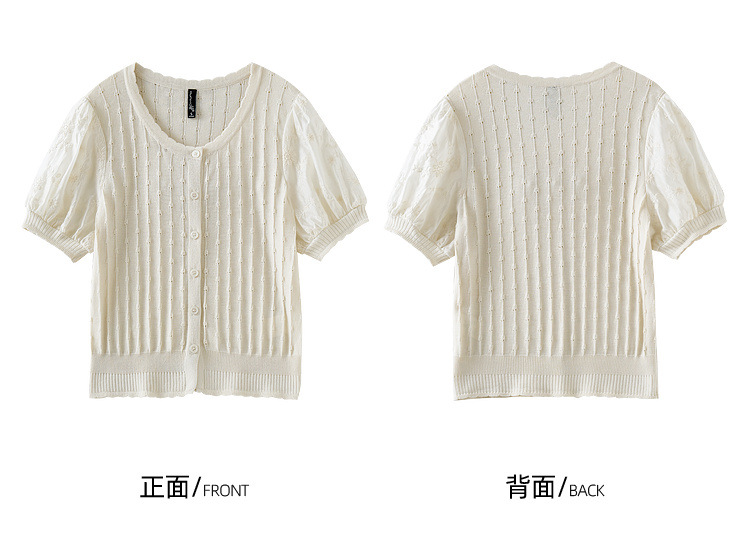 Zhenxi의 새로운 퍼프 슬리브 라운드 넥 스웨터 여성 반팔 작은 기질 다용도 탑 가디건 CQ851
