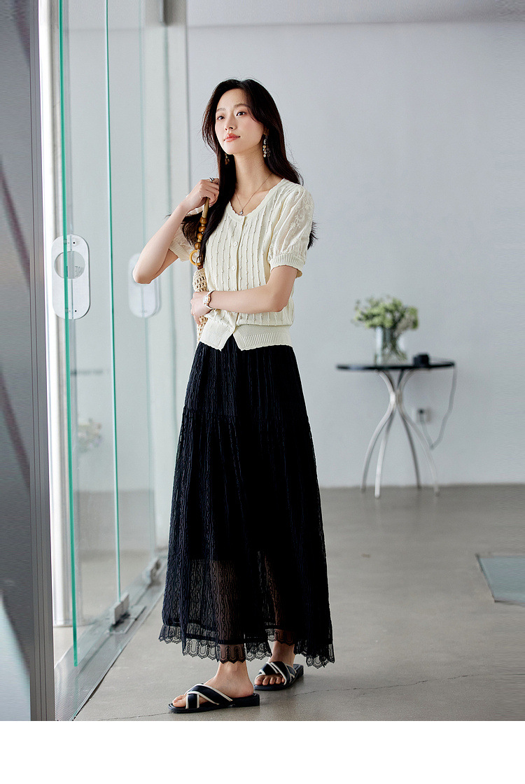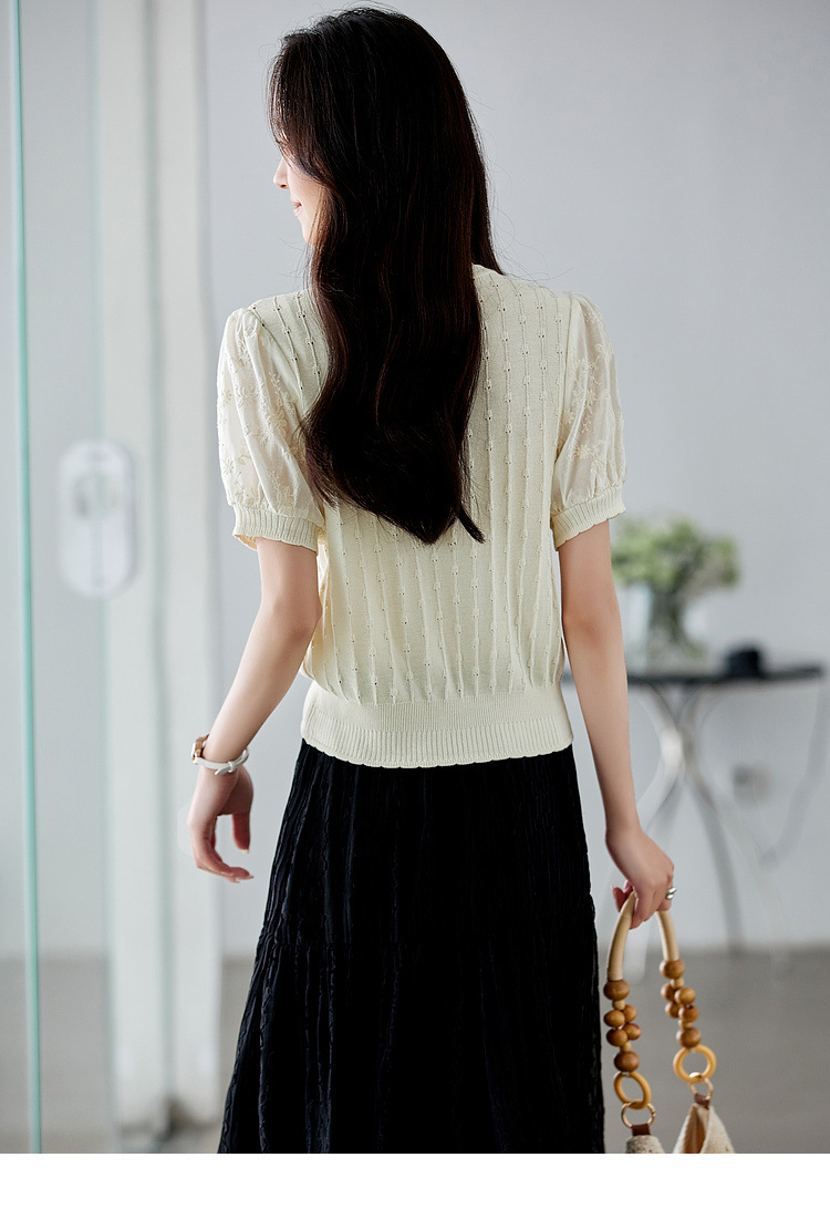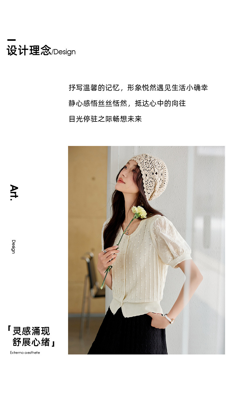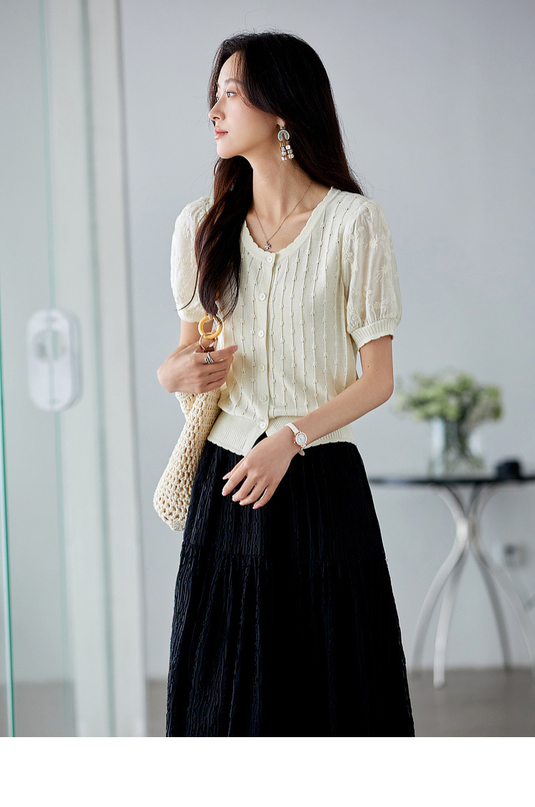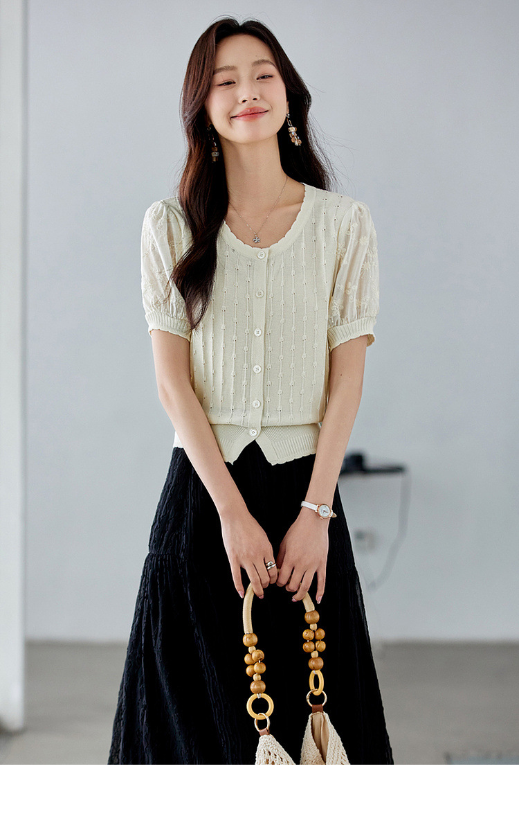 Zhenxi의 새로운 퍼프 슬리브 라운드 넥 스웨터 여성 반팔 작은 기질 다용도 탑 가디건 CQ851