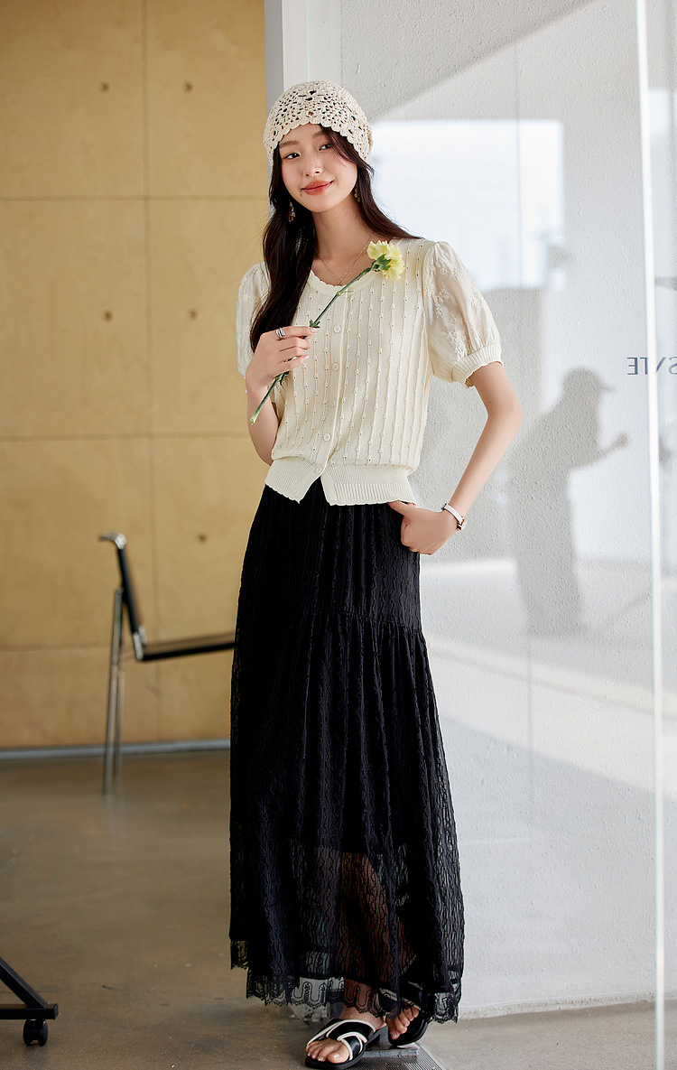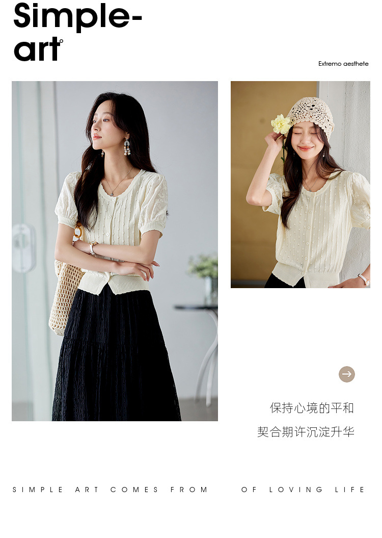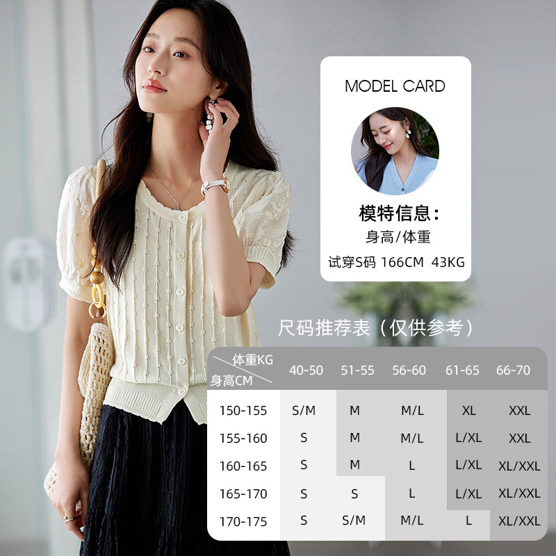 Zhenxi의 새로운 퍼프 슬리브 라운드 넥 스웨터 여성 반팔 작은 기질 다용도 탑 가디건 CQ851스토어 가기