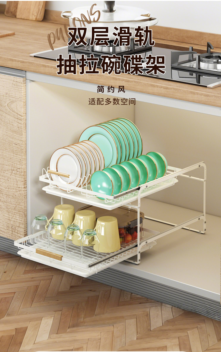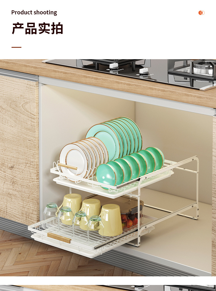 아마존의 새로운 캐비닛 더블 레이어 풀아웃 식기 랙 물컵 및 접시 보관 주방 배수구 보관 랙 풀 바구니
