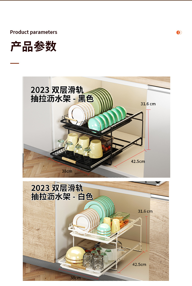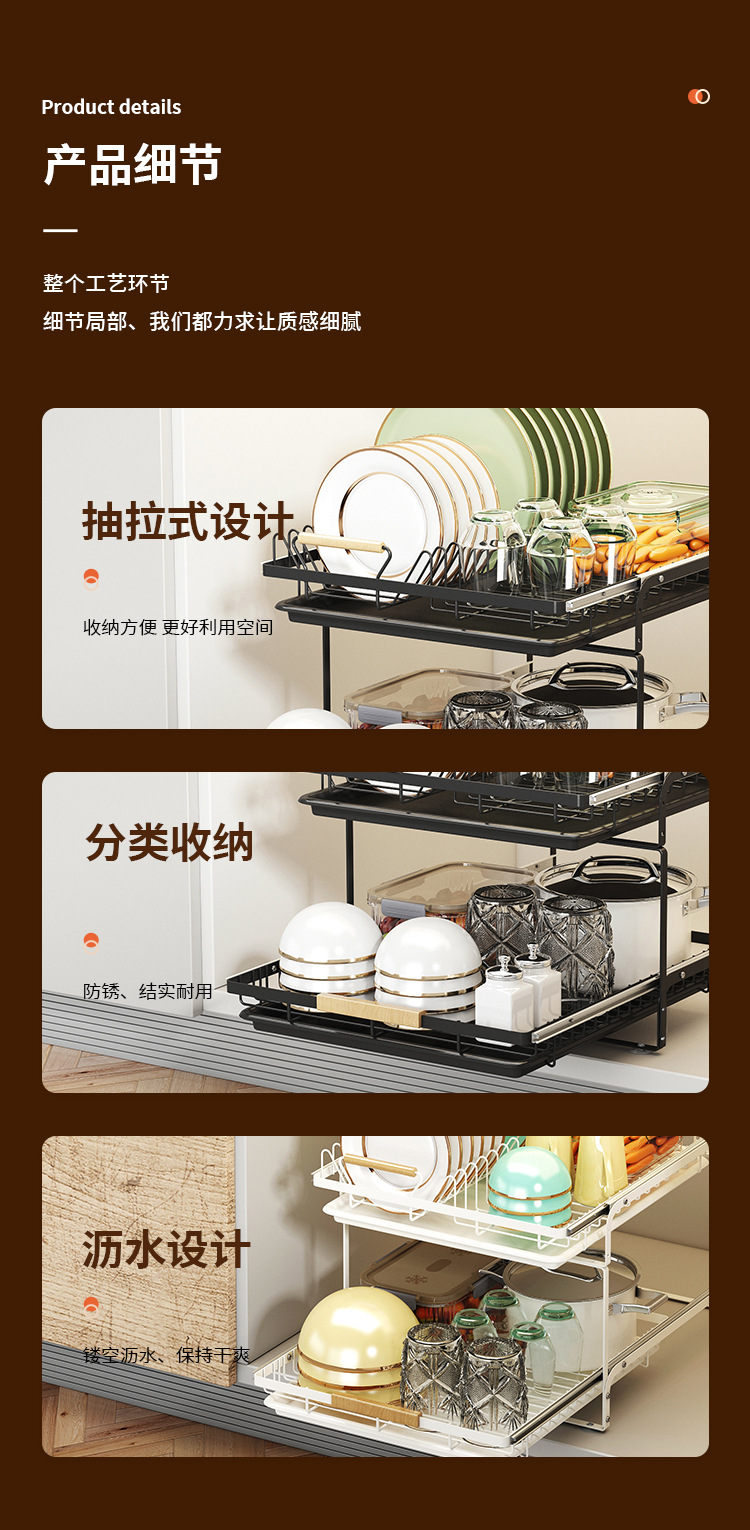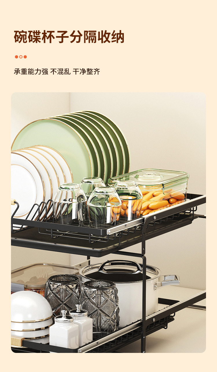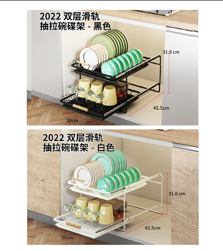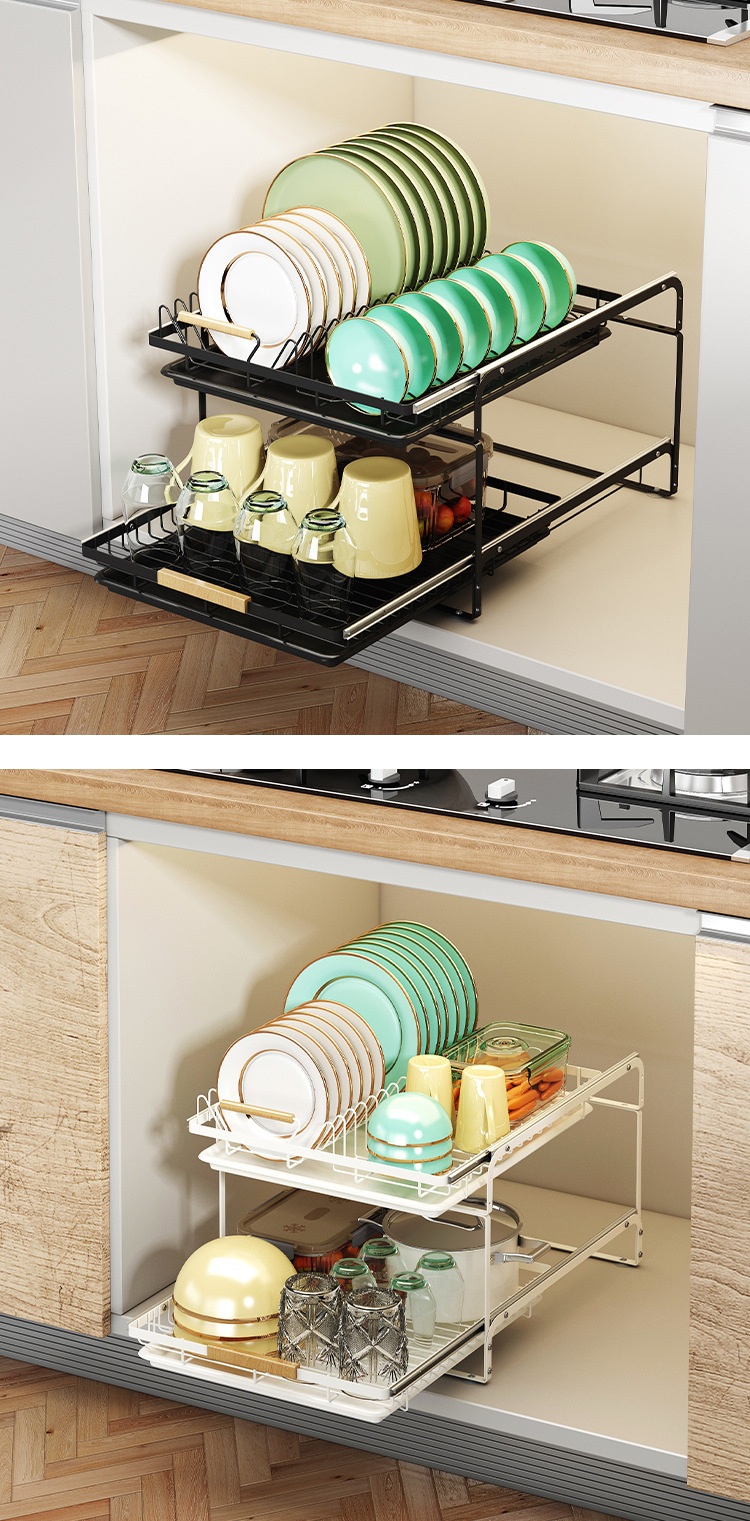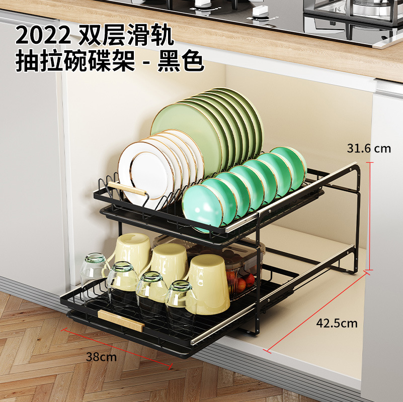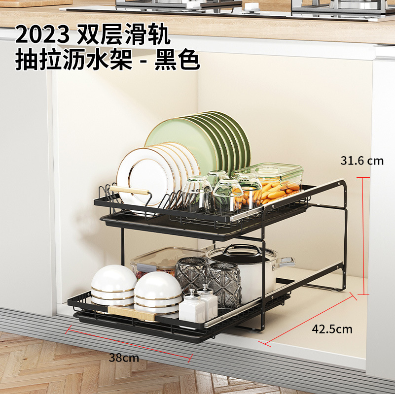 • 2023-더블 레이어 슬라이드 풀아웃 배수 랙-블랙
