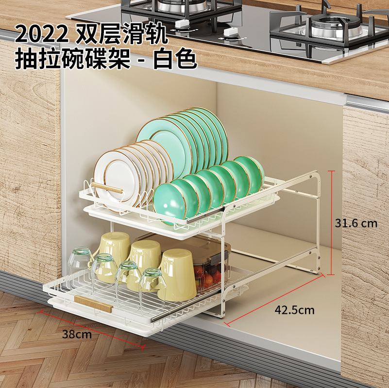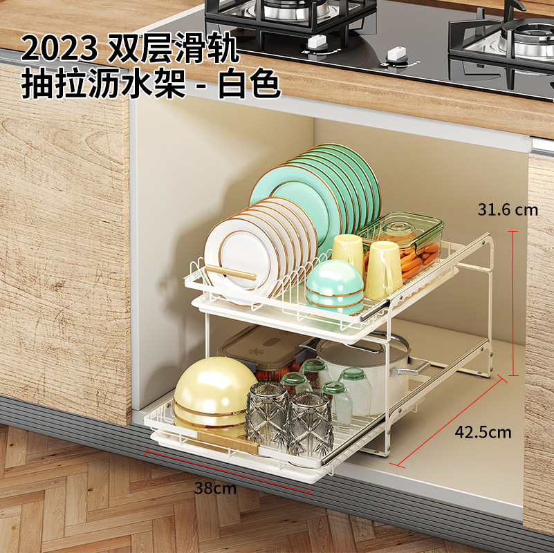 • 2023-더블 레이어 슬라이드 풀아웃 배수 랙-화이트