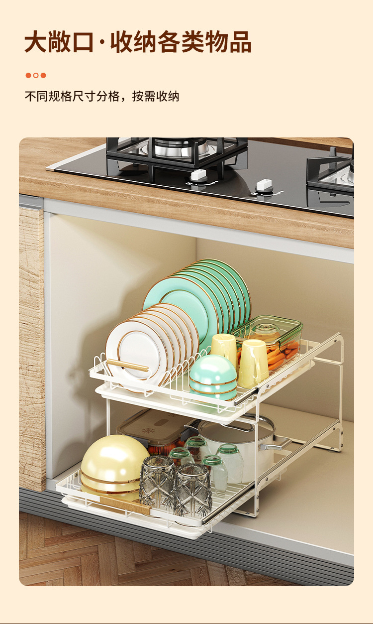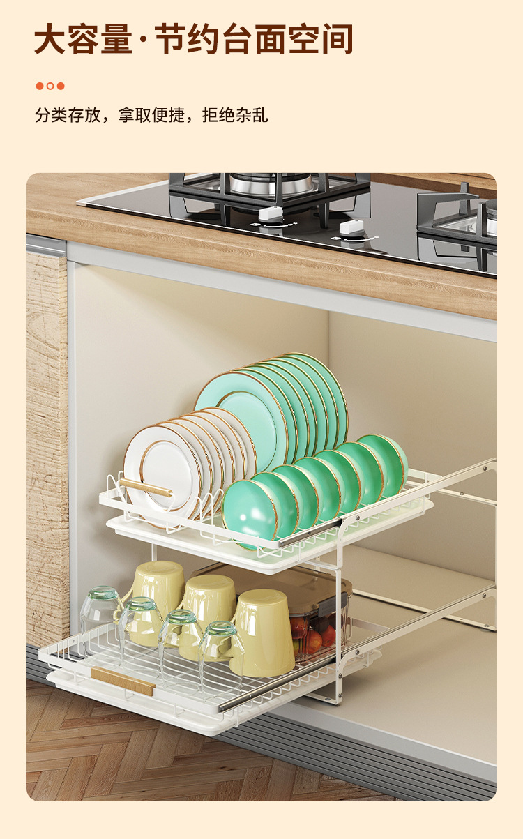 아마존의 새로운 캐비닛 더블 레이어 풀아웃 식기 랙 물컵 및 접시 보관 주방 배수구 보관 랙 풀 바구니스토어 가기