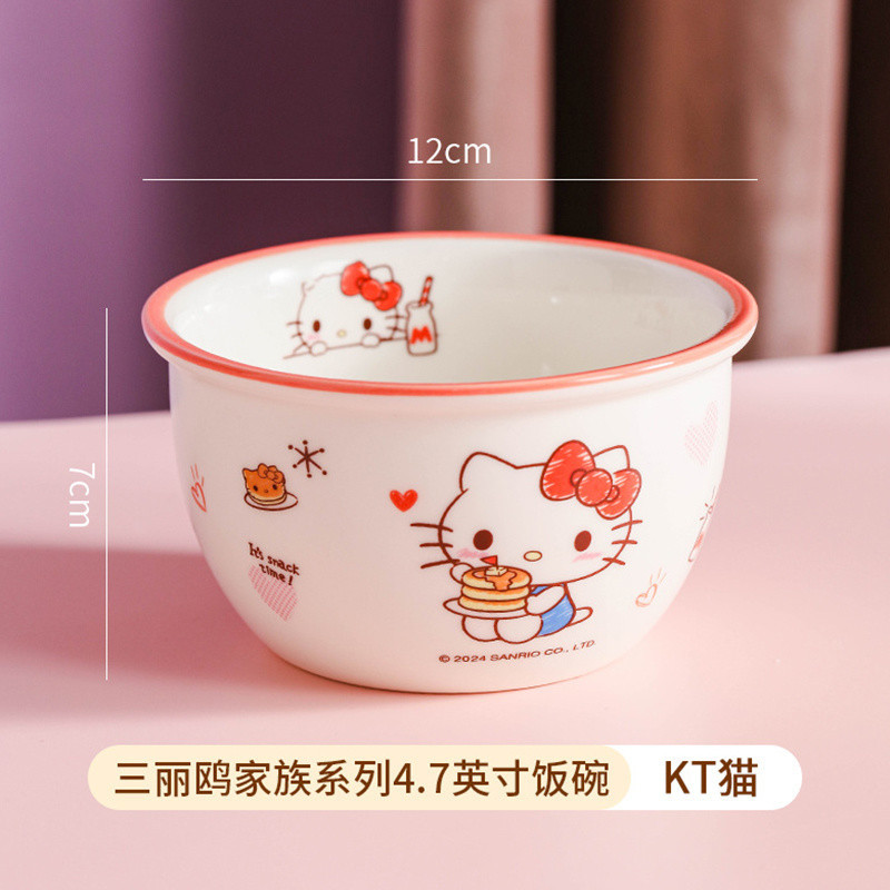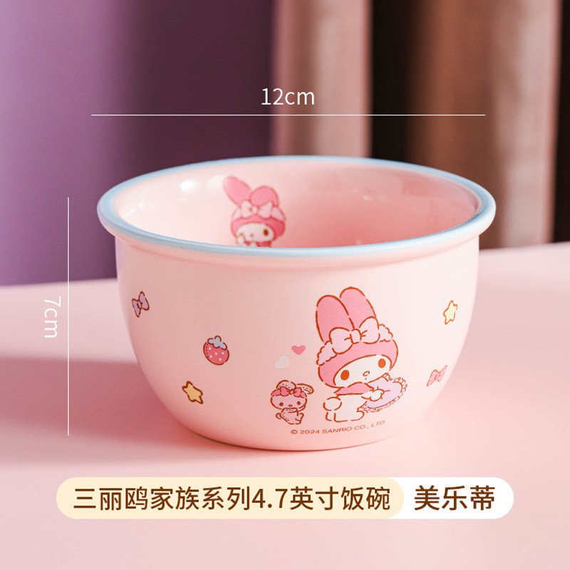 산리오 어린이 그릇과 접시 소녀 가정용 도자기 귀여운 밥 그릇 개인 고가 그릇과 젓가락 식기 세트스토어 가기