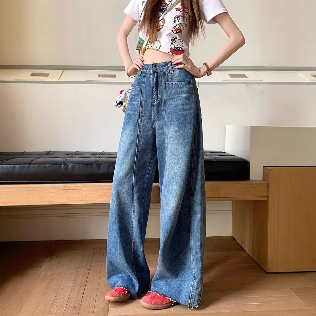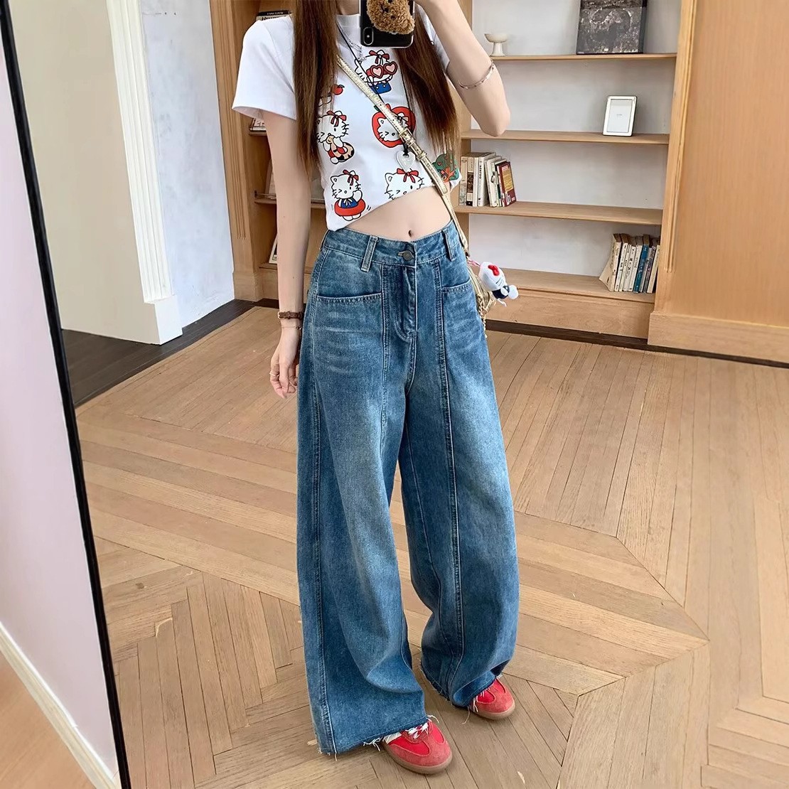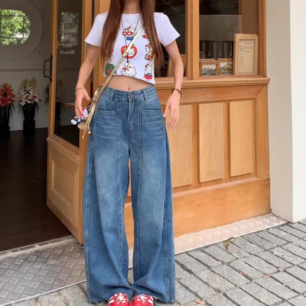 플러스 사이즈, 매우 멋지고 여유롭고 편안한 여성용 하이웨이스트 청바지, 봄, 가을 캐주얼 루즈 낫 팬츠, 바나나 팬츠스토어 가기