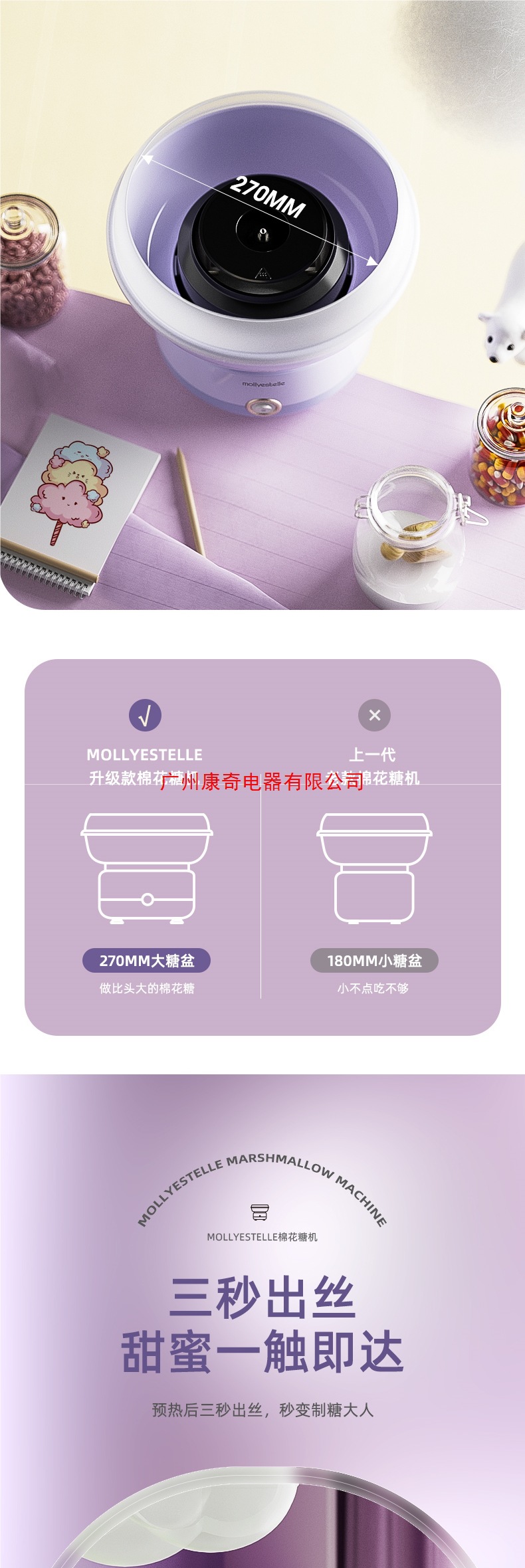 Mollyestelle 마시멜로 기계 어린이 가정용 소형 완전 자동 상업용 마시멜로 기계 수제스토어 가기