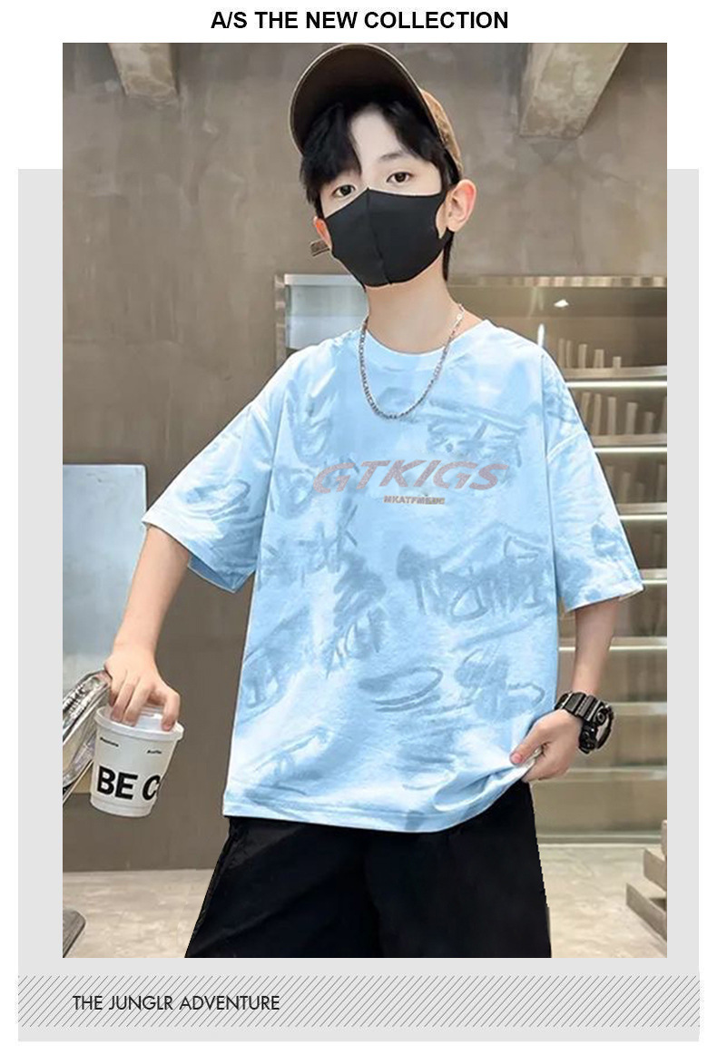 소년 여름 정장 새로운 스타일 중대형 어린이 스포츠 얇은 반팔 스트리트 소년 여름 옷 여름 투피스 세트스토어 가기