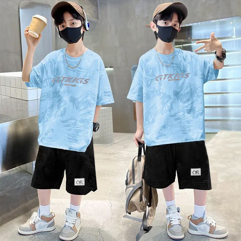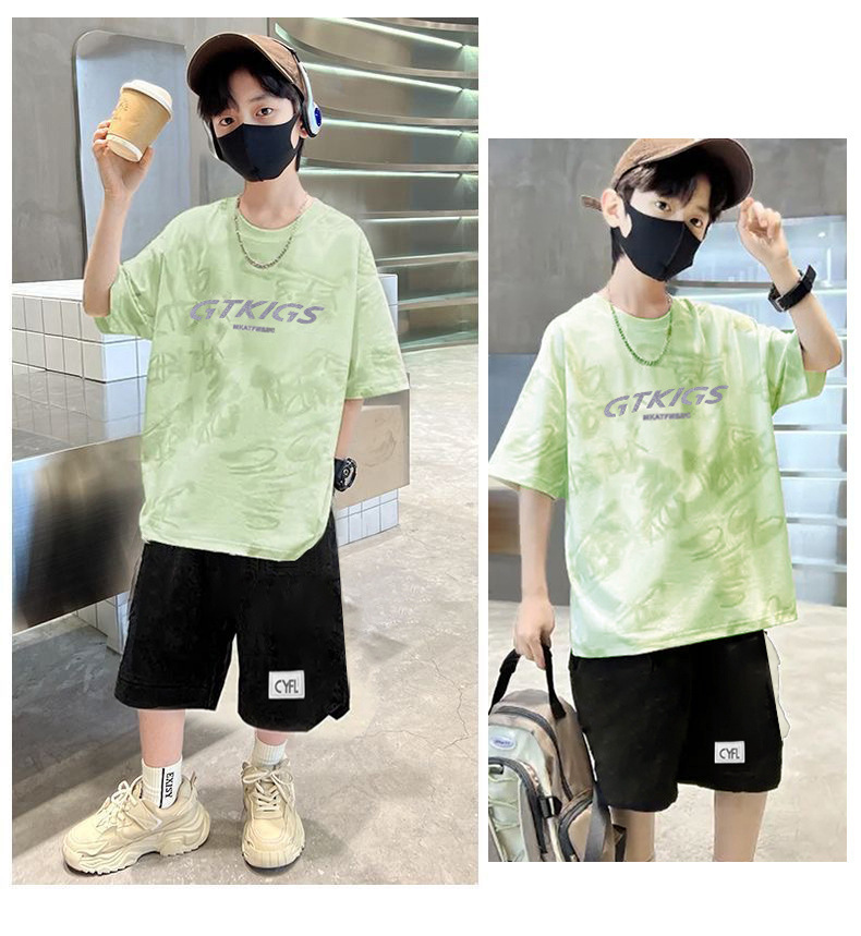 소년 여름 정장 새로운 스타일 중대형 어린이 스포츠 얇은 반팔 스트리트 소년 여름 옷 여름 투피스 세트