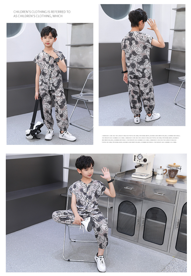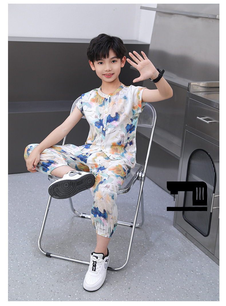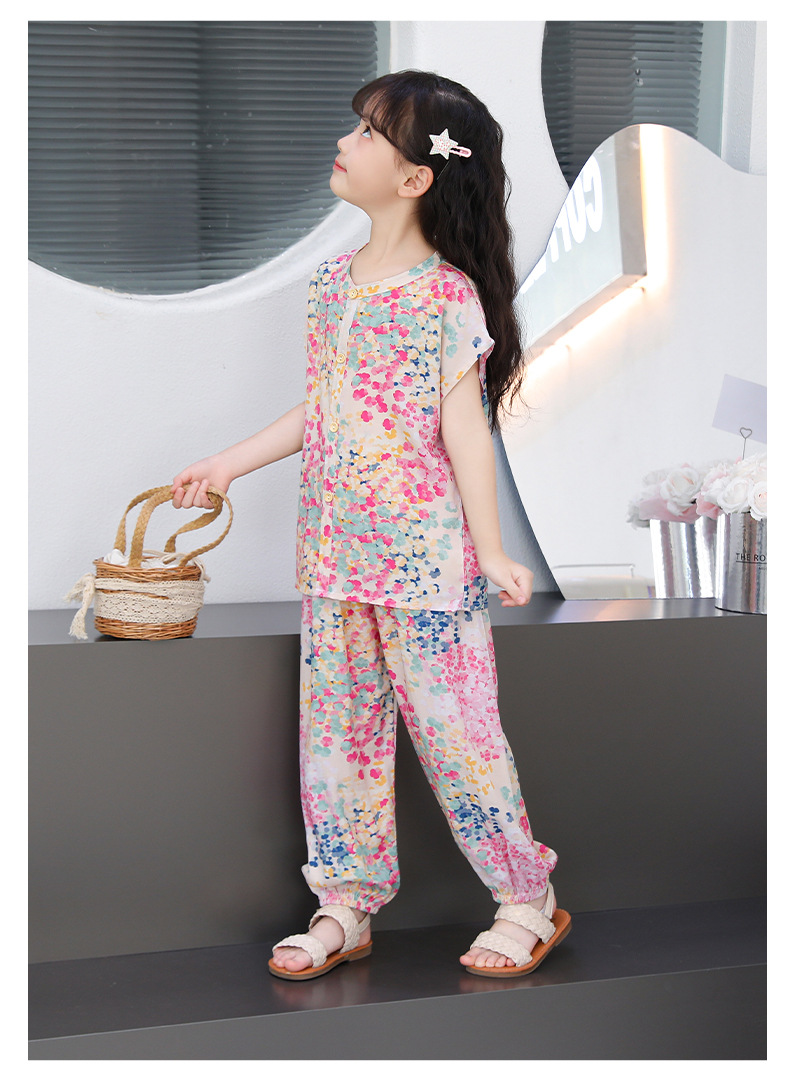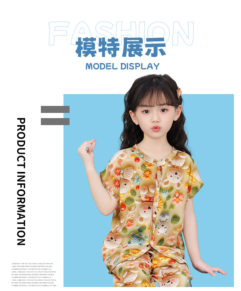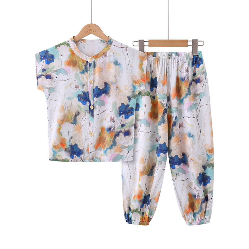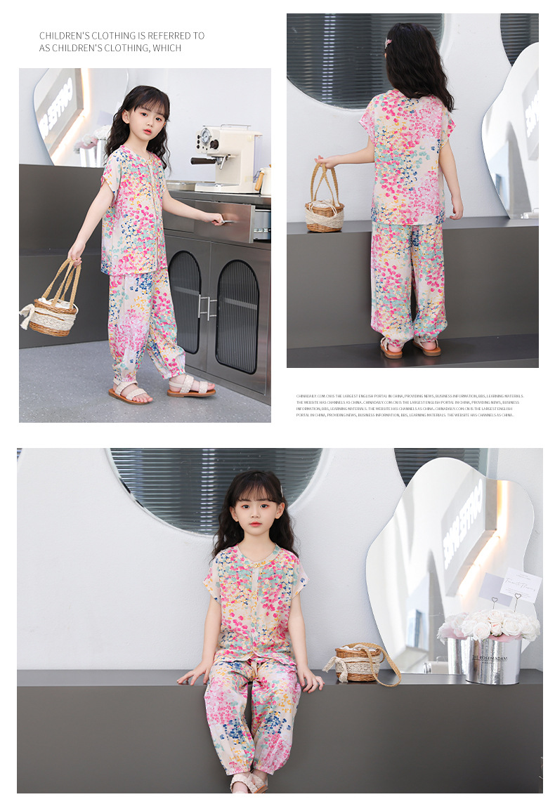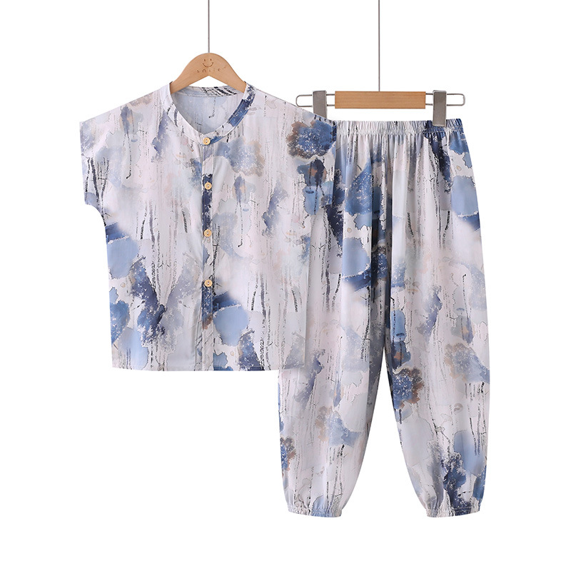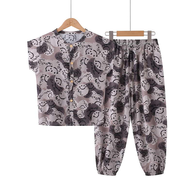 어린이 면화 실크 잠옷 여름 반팔 소녀 바지 얇은 아기 소년 정장 소녀 에어컨 가정 의류스토어 가기