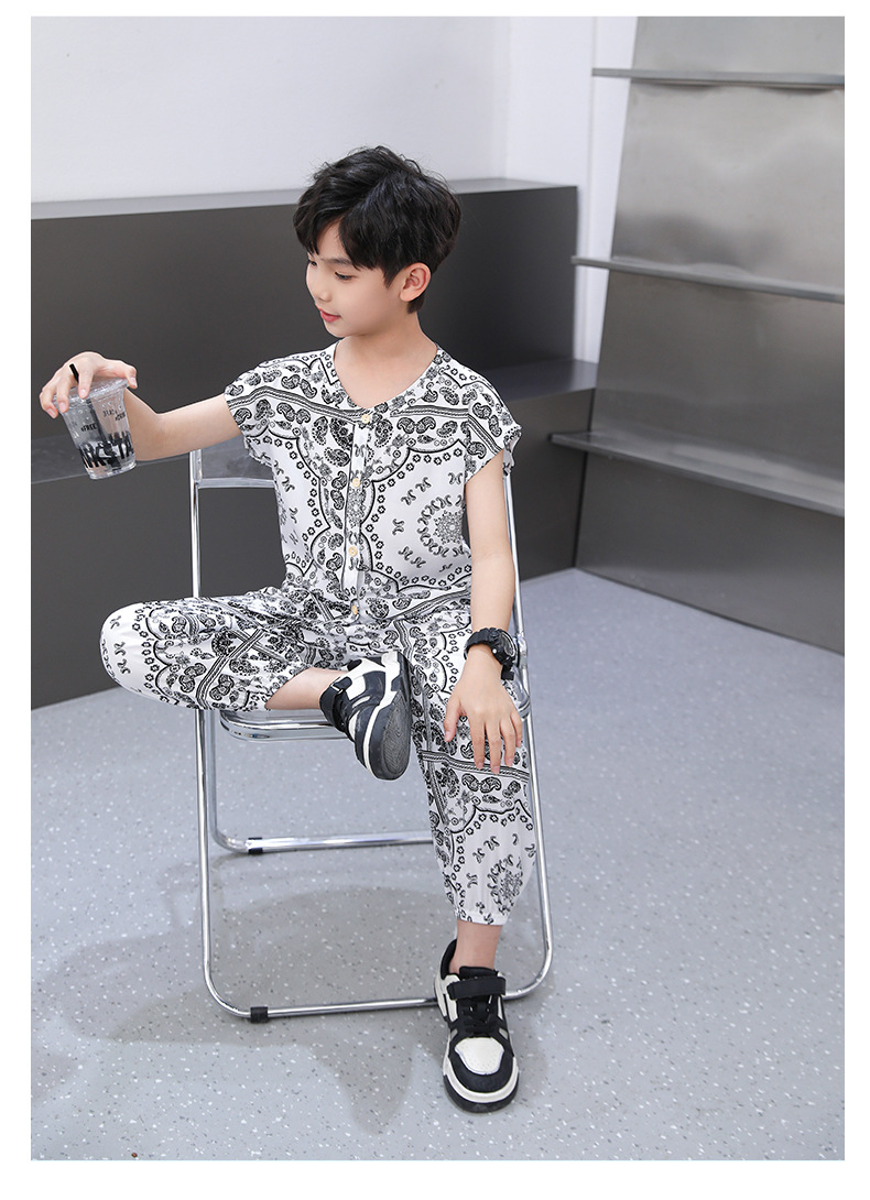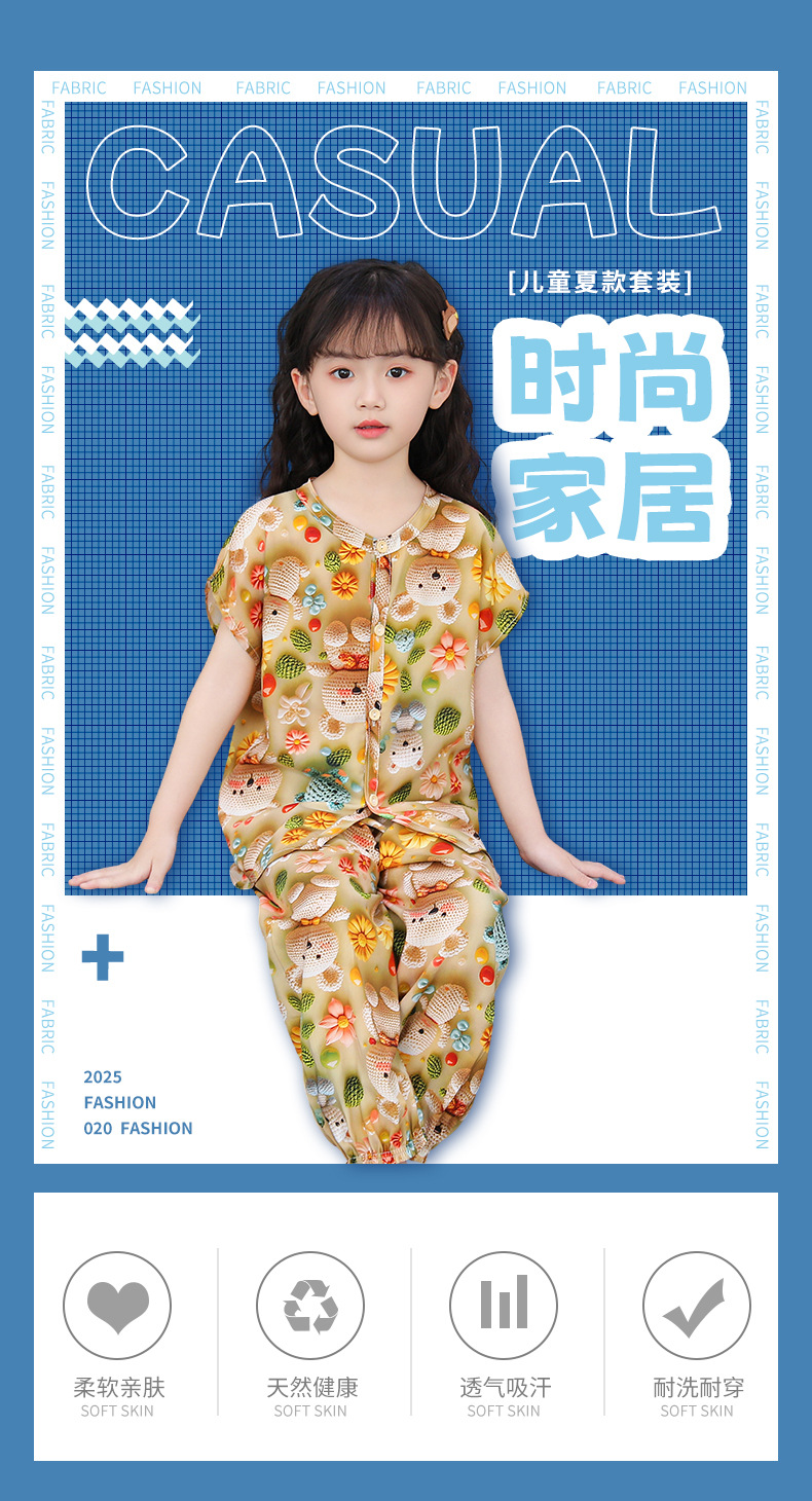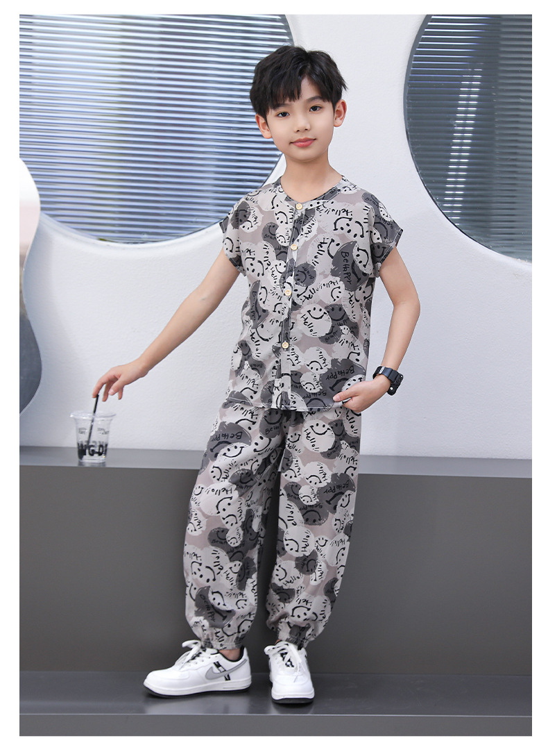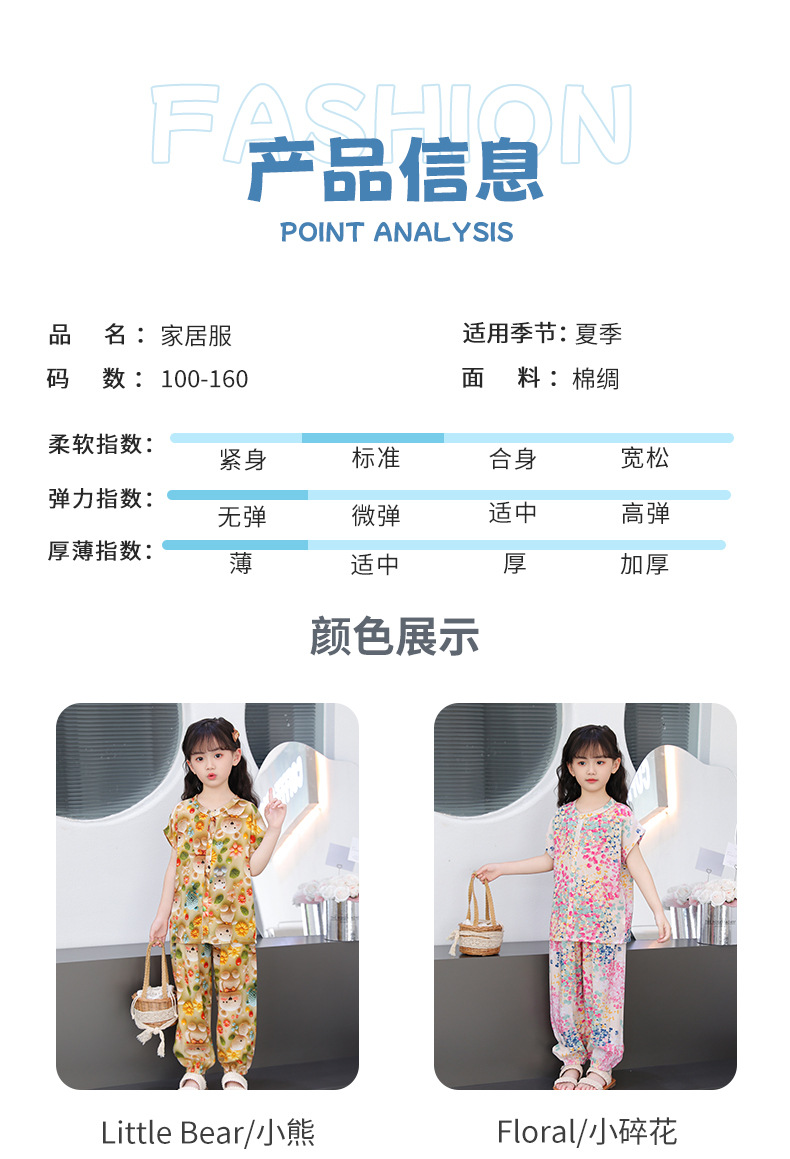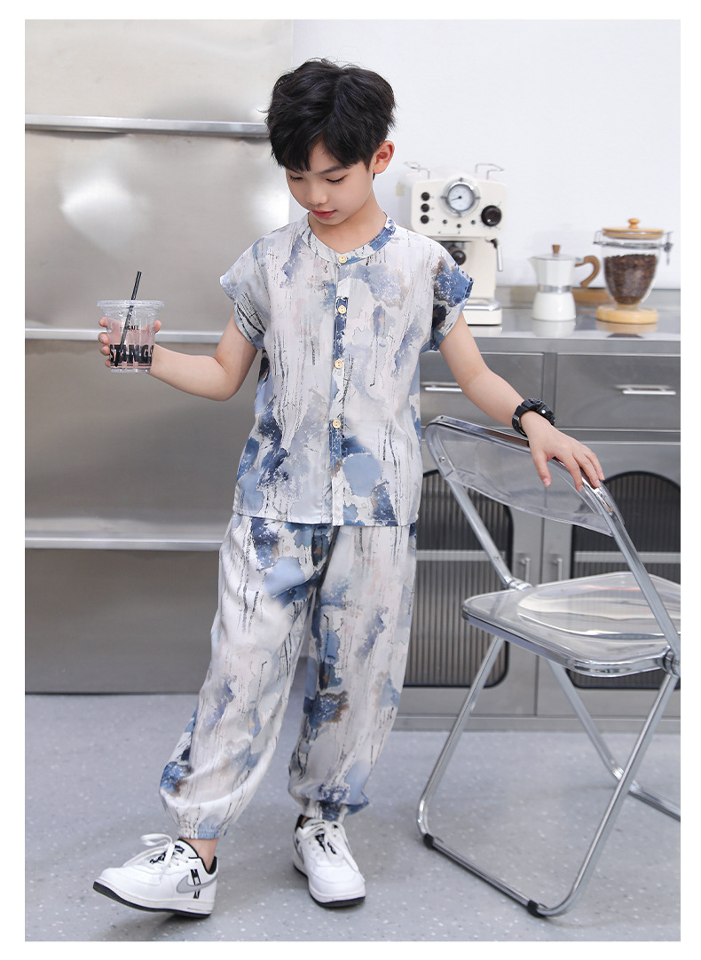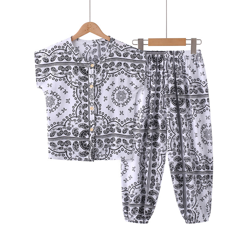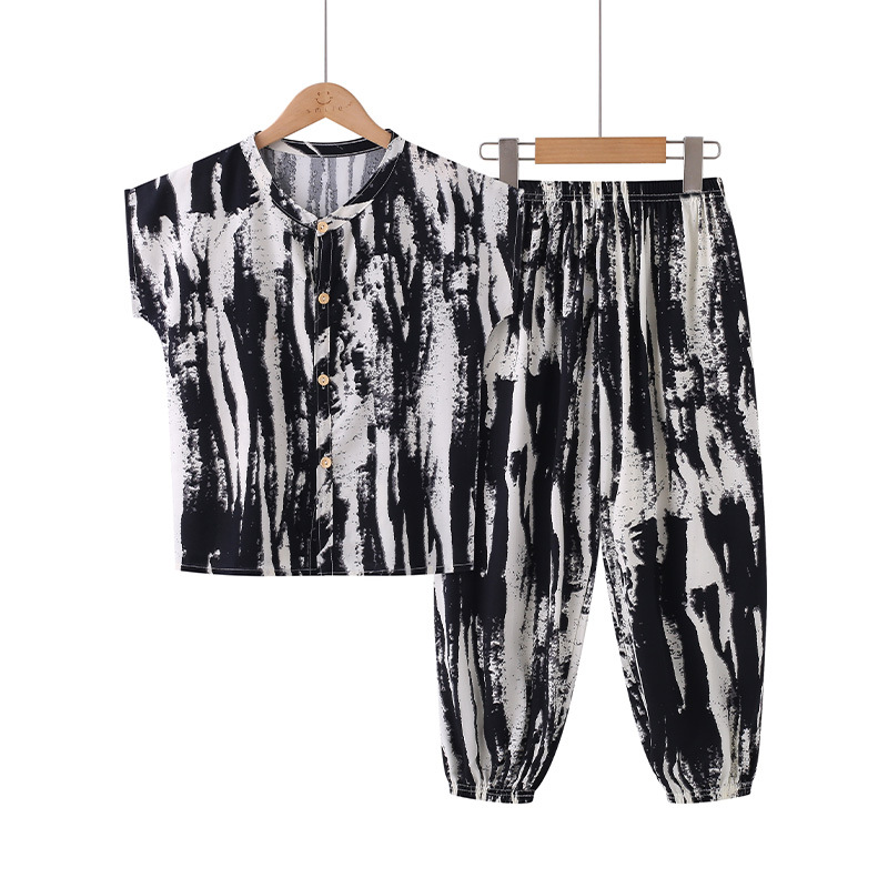 어린이 면화 실크 잠옷 여름 반팔 소녀 바지 얇은 아기 소년 정장 소녀 에어컨 가정 의류스토어 가기