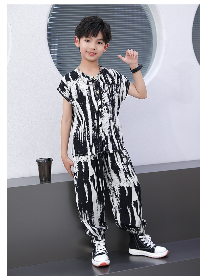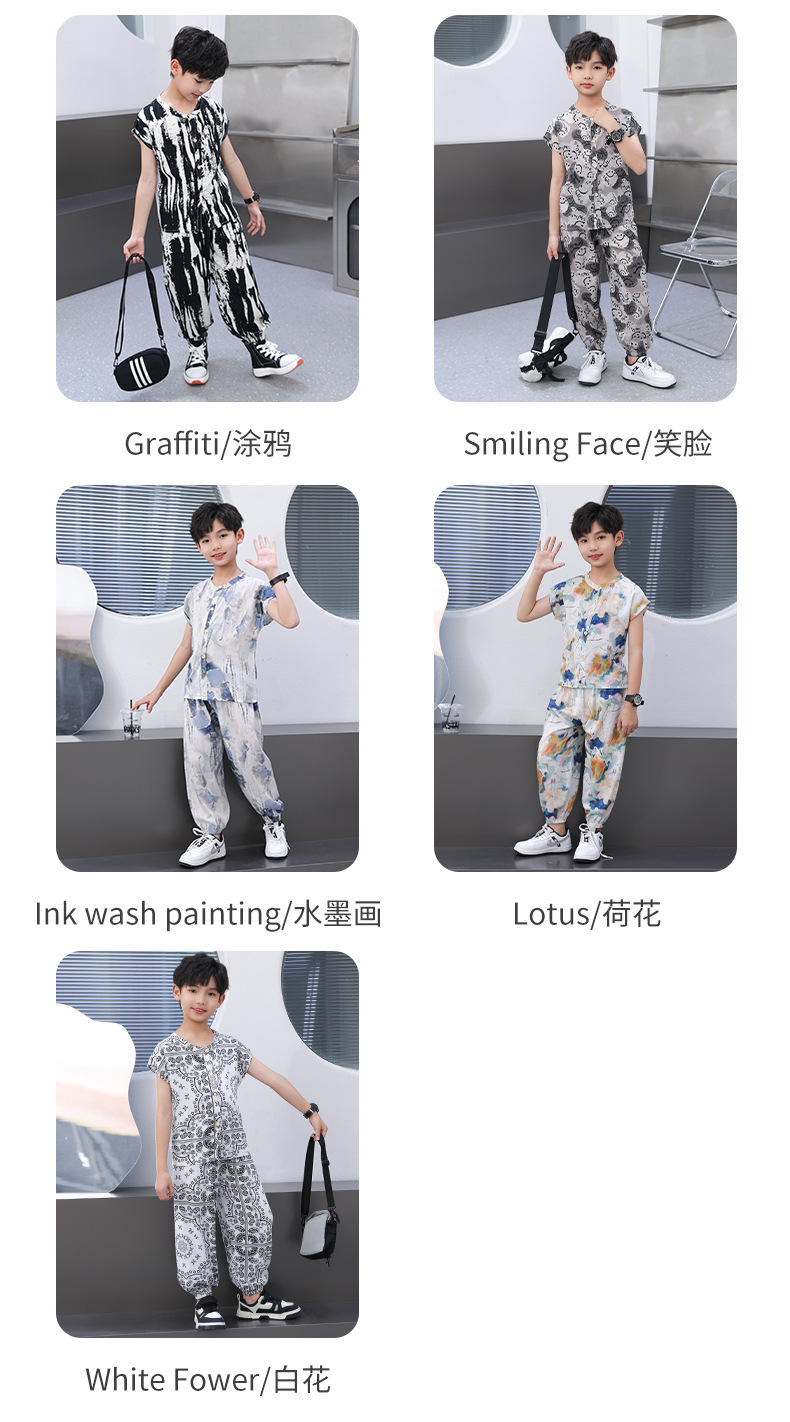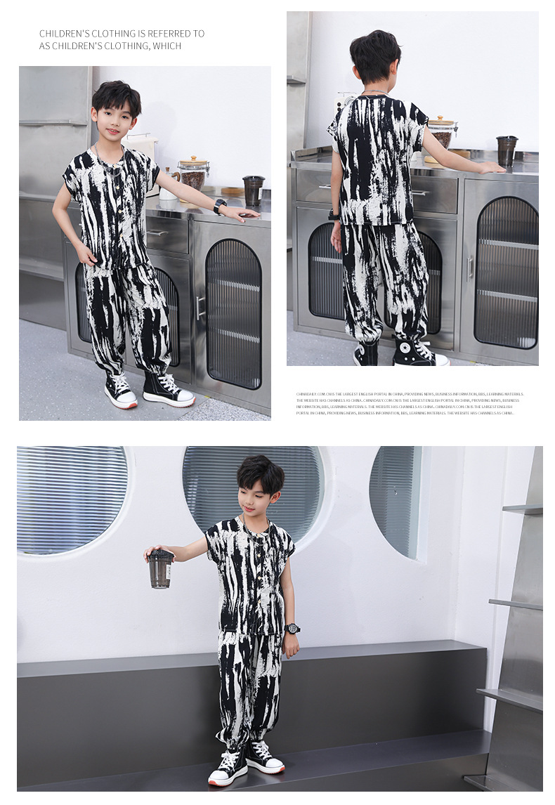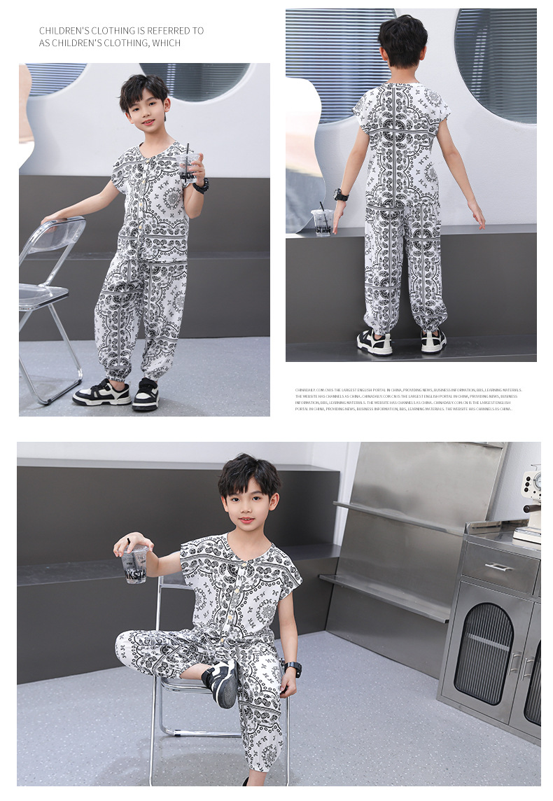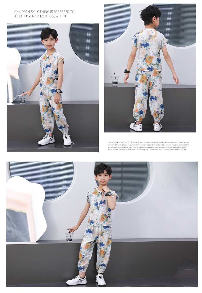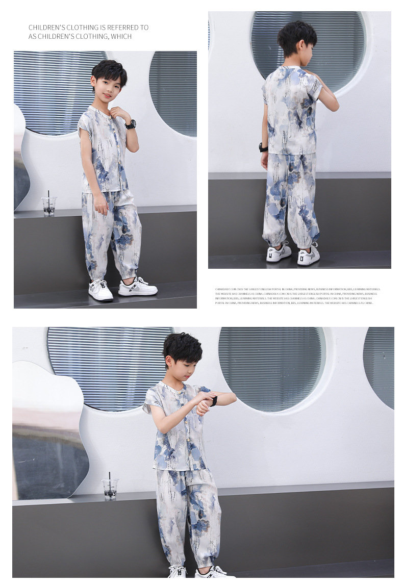 어린이 면화 실크 잠옷 여름 반팔 소녀 바지 얇은 아기 소년 정장 소녀 에어컨 가정 의류스토어 가기