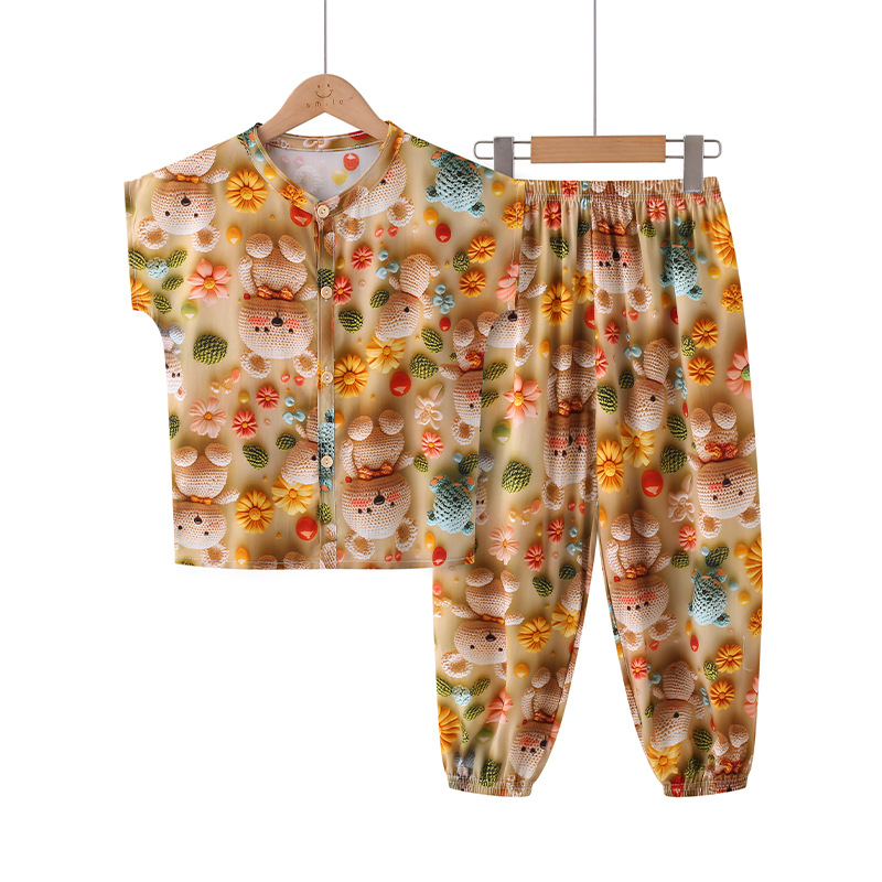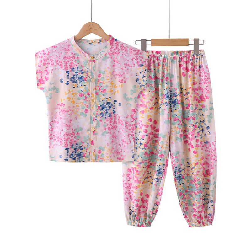 어린이 면화 실크 잠옷 여름 반팔 소녀 바지 얇은 아기 소년 정장 소녀 에어컨 가정 의류