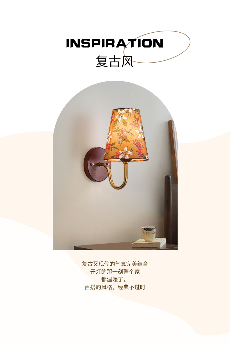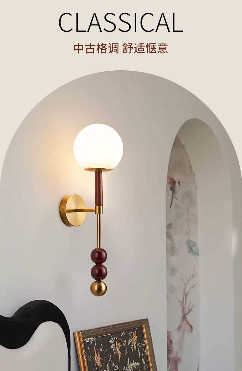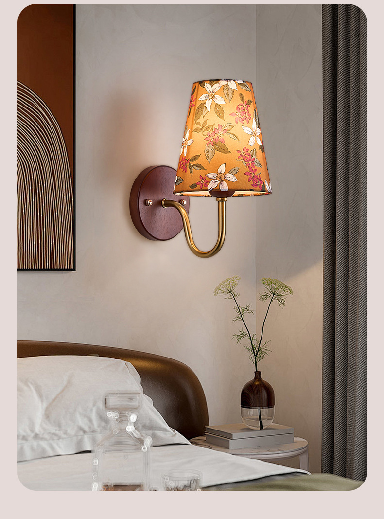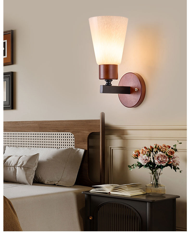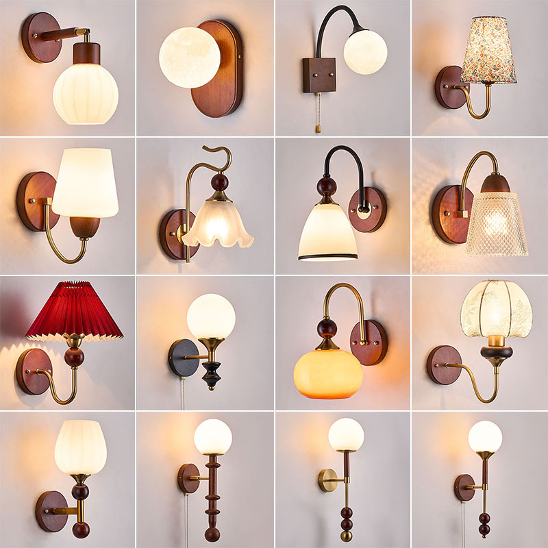 새로운 중국 스타일 복고풍 벽 램프 침실 머리맡 램프 크리 에이 티브 로그 중세 스타일 거실 복도 통로 계단 램프