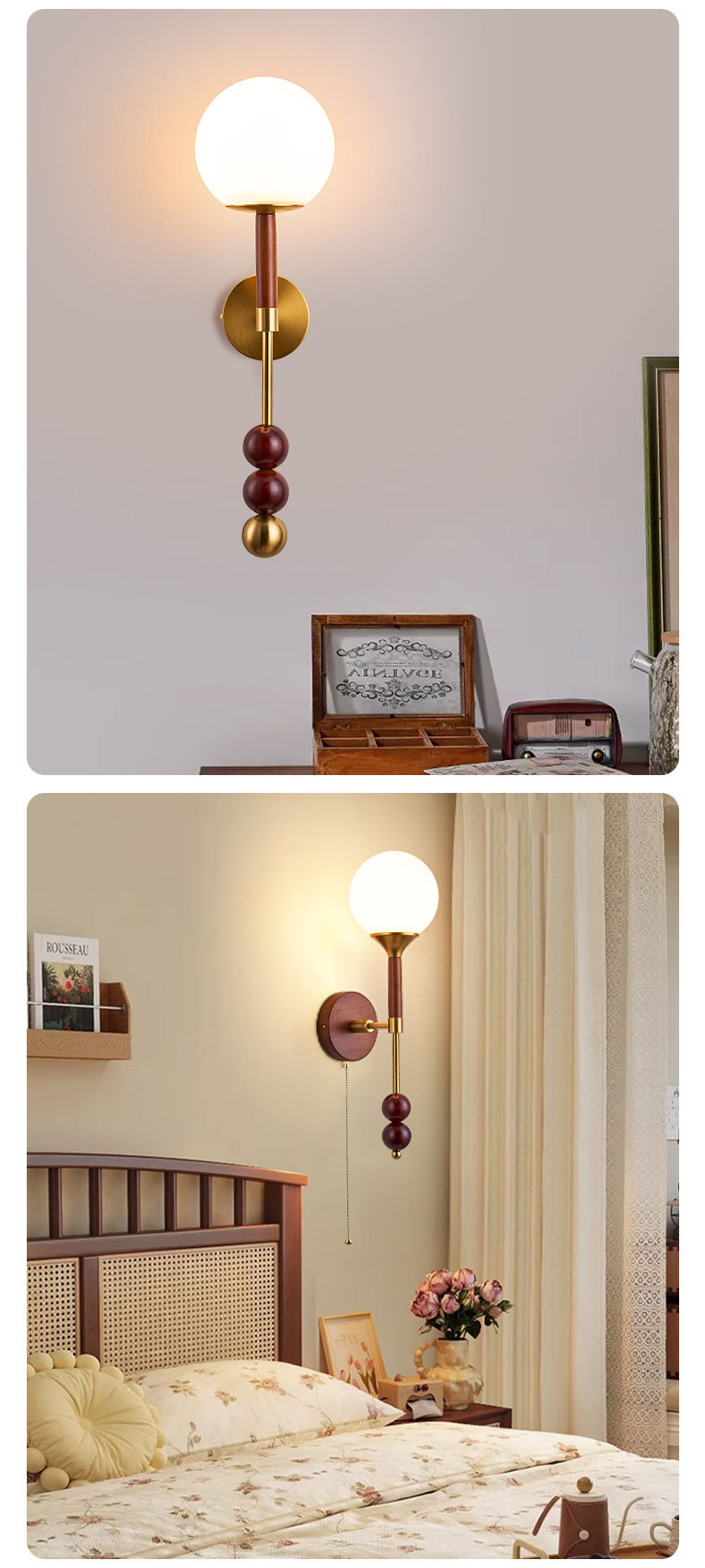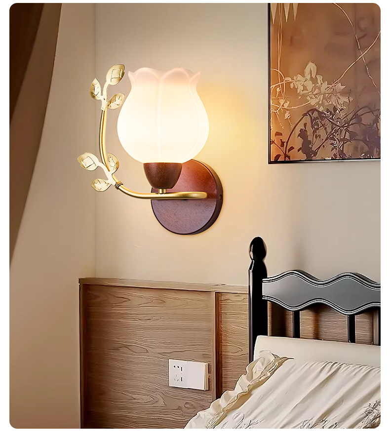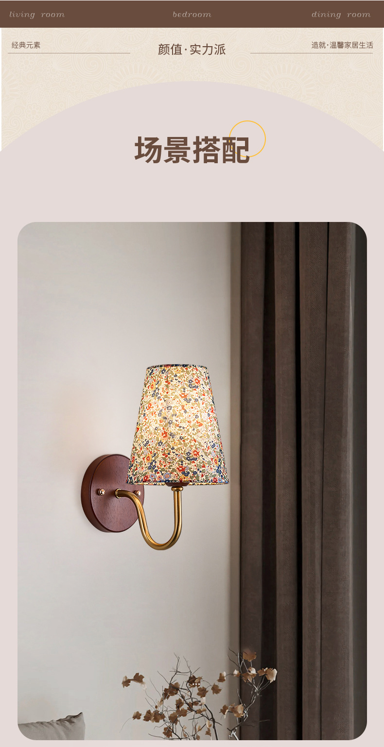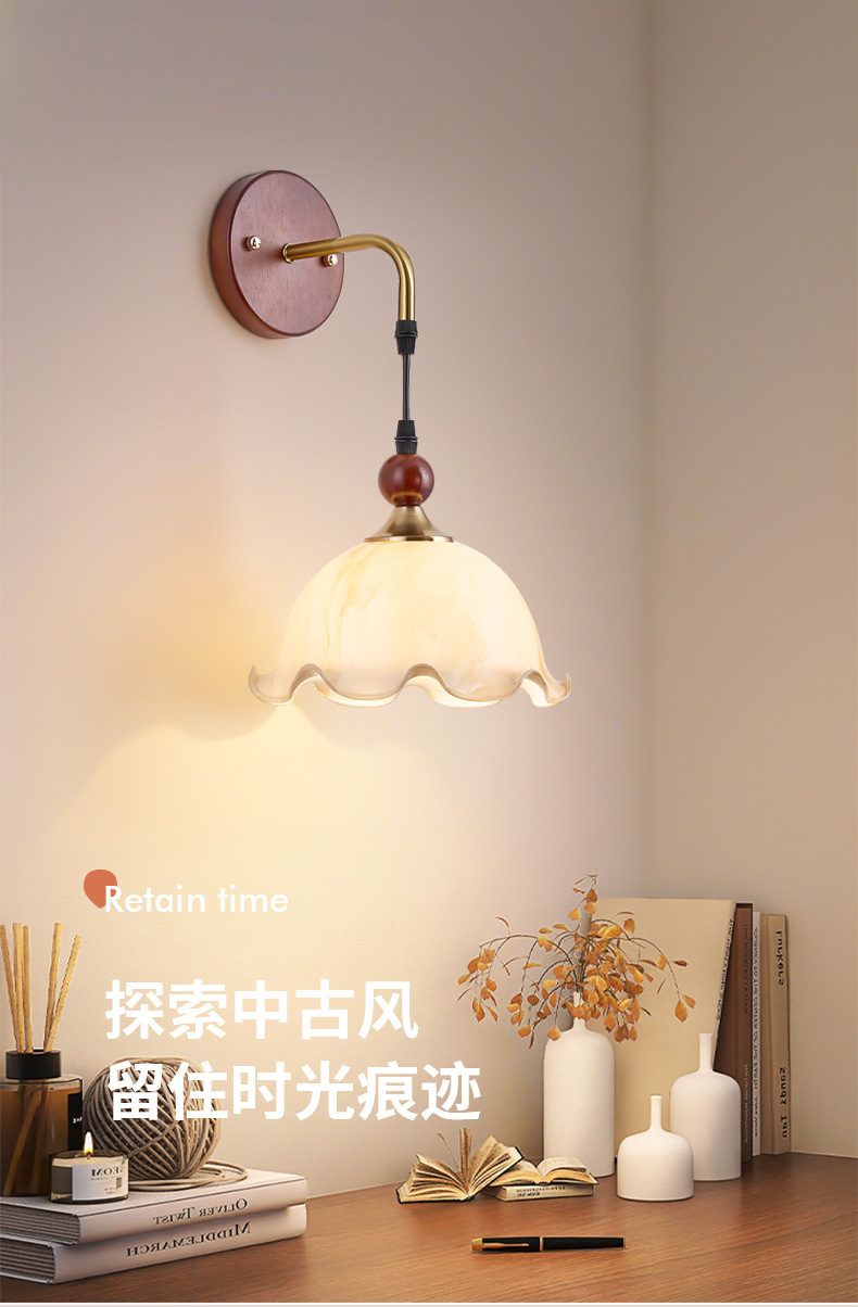 새로운 중국 스타일 복고풍 벽 램프 침실 머리맡 램프 크리 에이 티브 로그 중세 스타일 거실 복도 통로 계단 램프