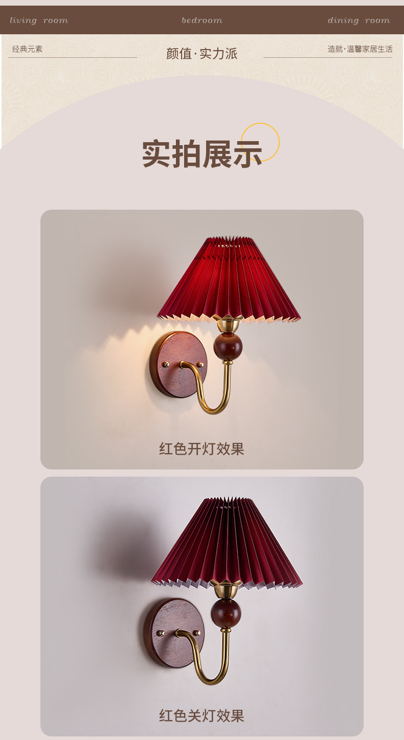 • YH8426 월넛 + 레드 플리츠 따뜻한 빛