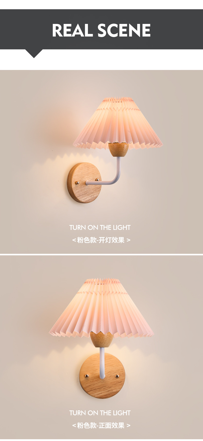 • YH8425 로그 + 핑크 플리츠 스타일 따뜻한 빛과 달콤한 스타일