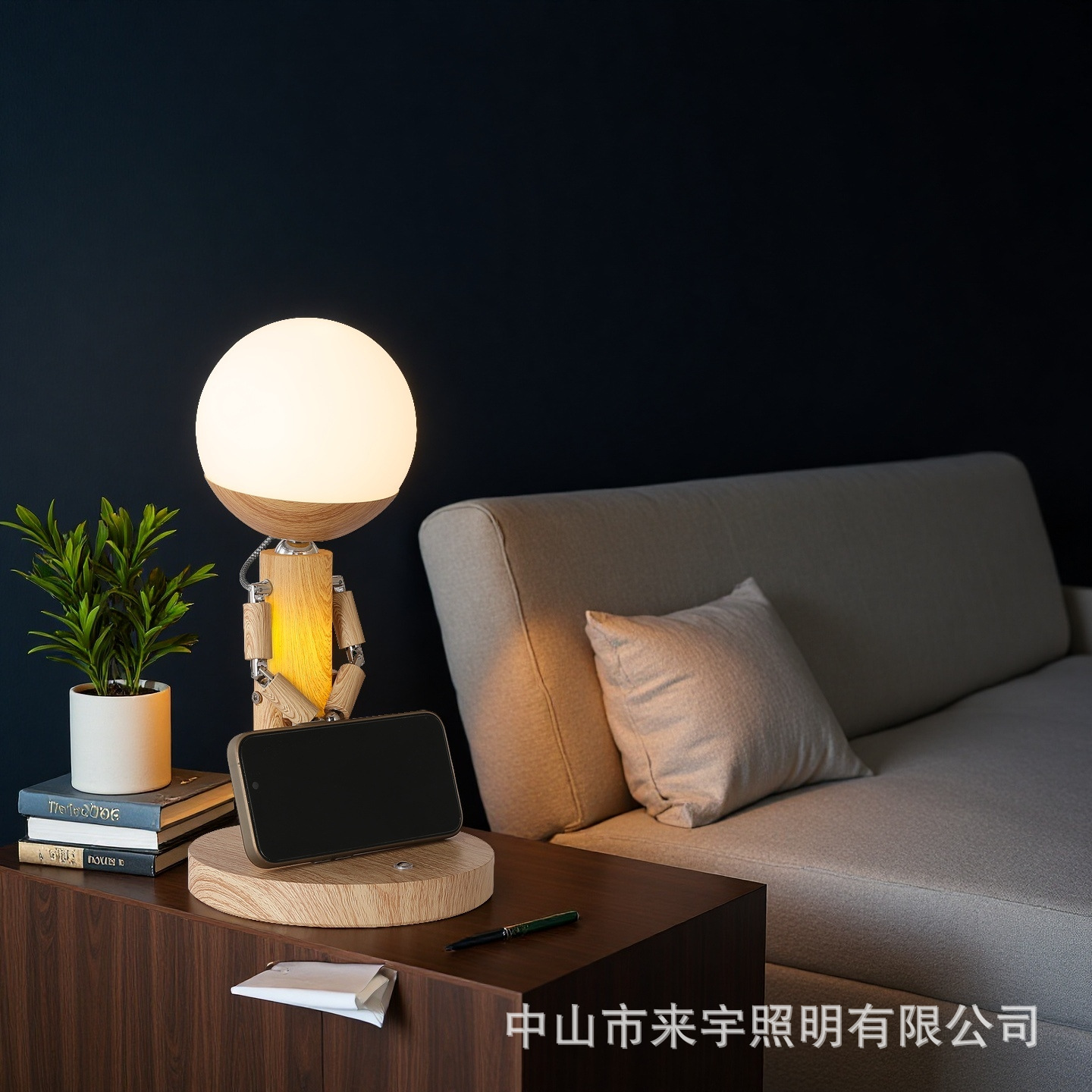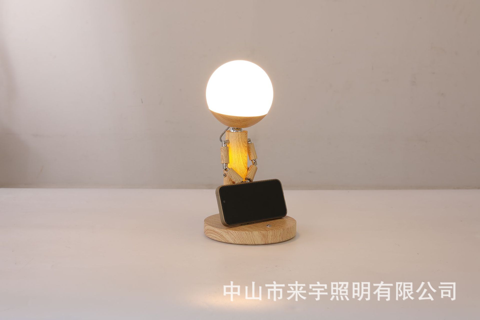 창조적 인 달 벌칙 역 테이블 램프 침실 침실 옆 거실 분위기 테이블 단단한 나무 바탕 화면 장식 비극성 밝기 충전