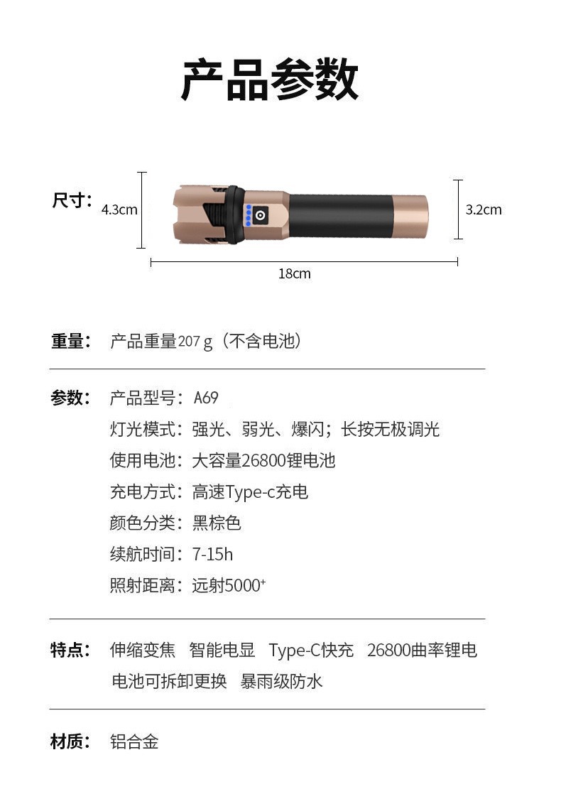 • A69 손전등(배터리는 포함되어 있지 않음)