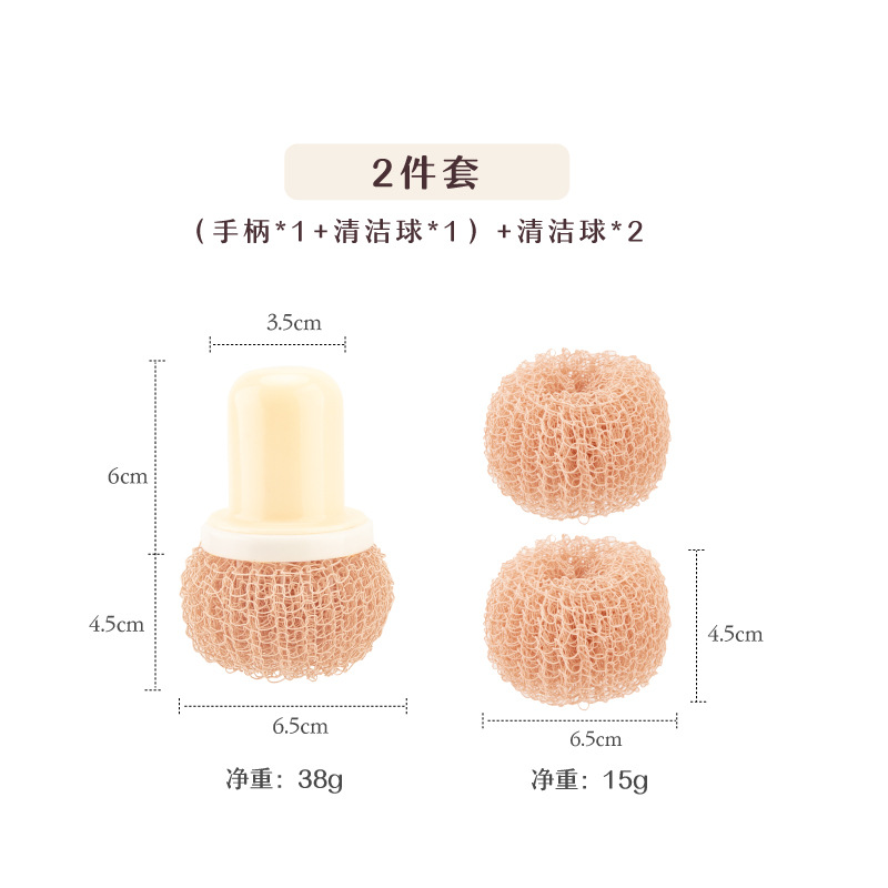 • 섬유 냄비 브러시 볼(손잡이 1개, 볼 3개)