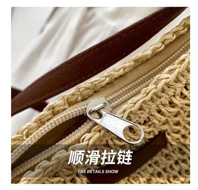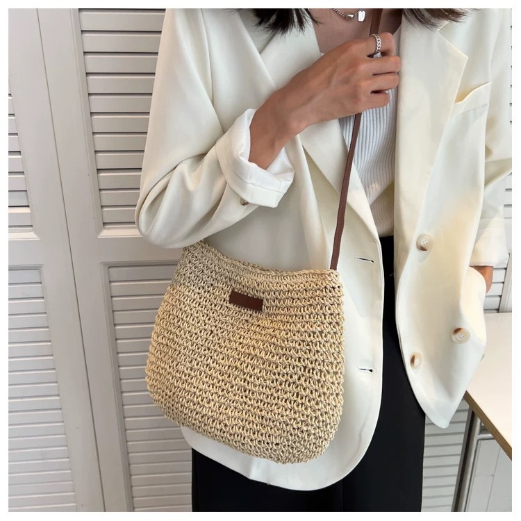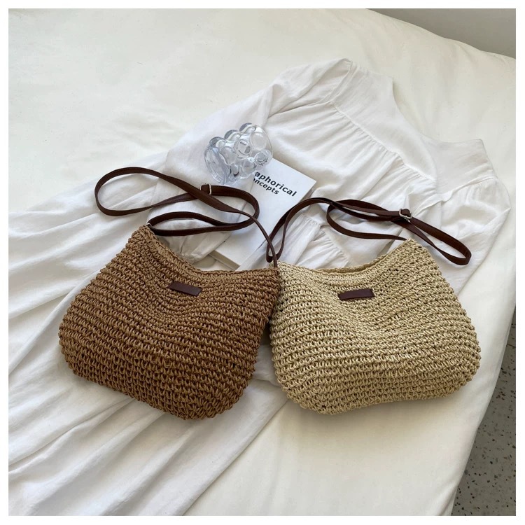 새로운 크로스 바디 작은 가죽 라벨 밀짚 짠 가방 간단한 어깨 밀짚 가방 수제 짠 가방 올 매치 홀리데이 비치 백 밀짚 짠 가방스토어 가기