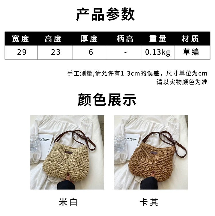 새로운 크로스 바디 작은 가죽 라벨 밀짚 짠 가방 간단한 어깨 밀짚 가방 수제 짠 가방 올 매치 홀리데이 비치 백 밀짚 짠 가방