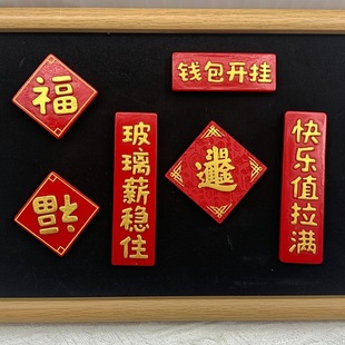 中国风新年文字牌匾冰箱贴diy喜庆福字磁铁装饰马年新款树脂对联