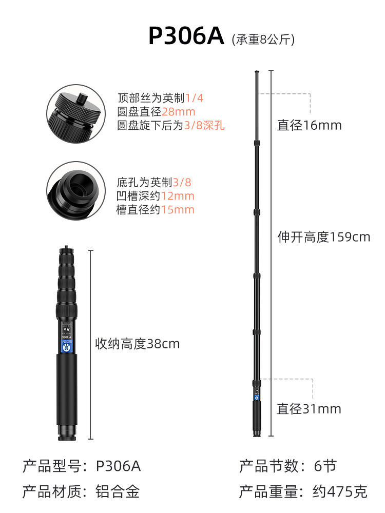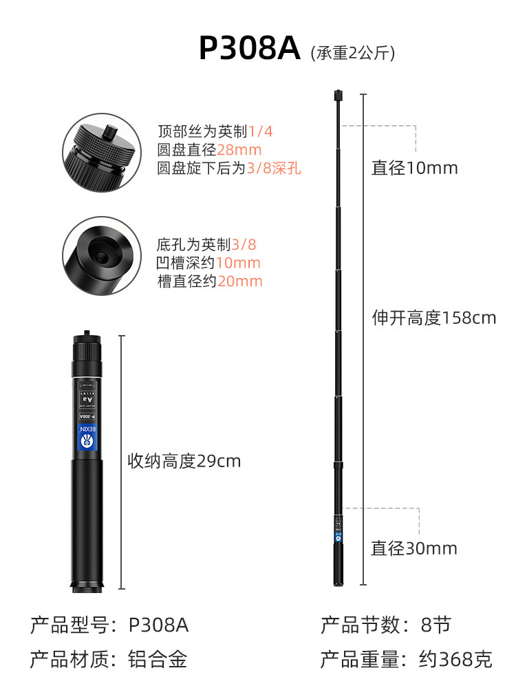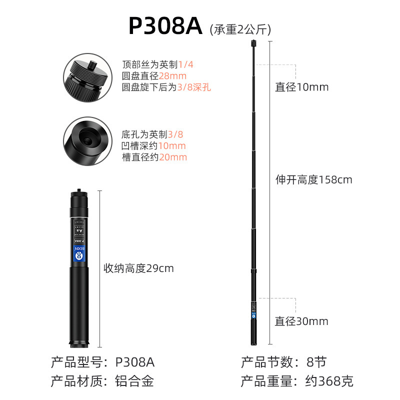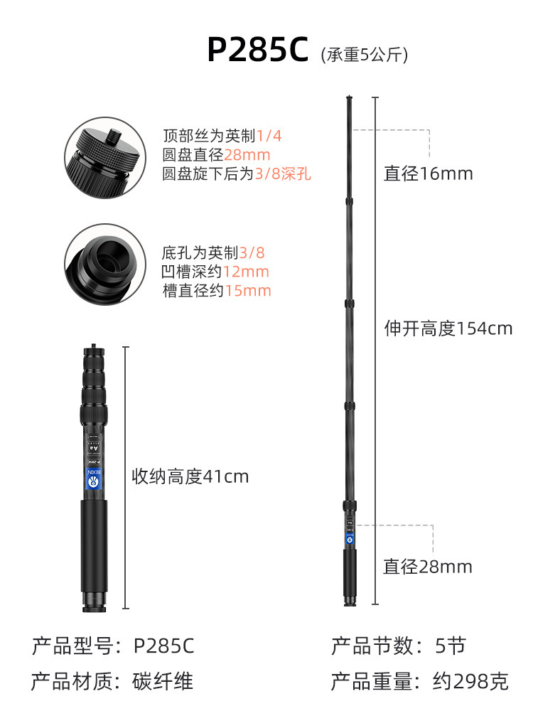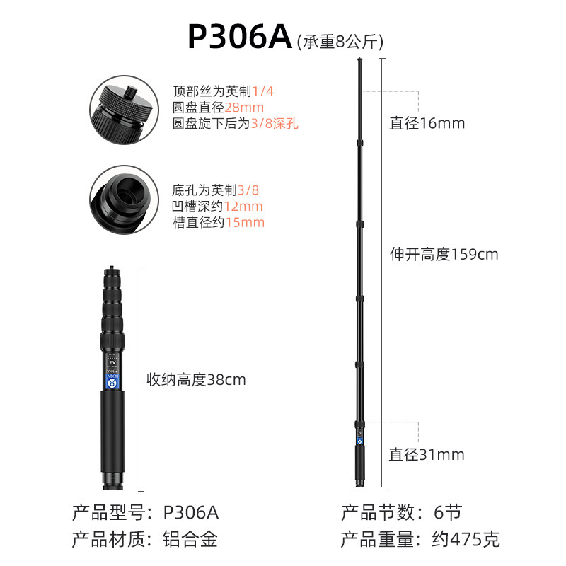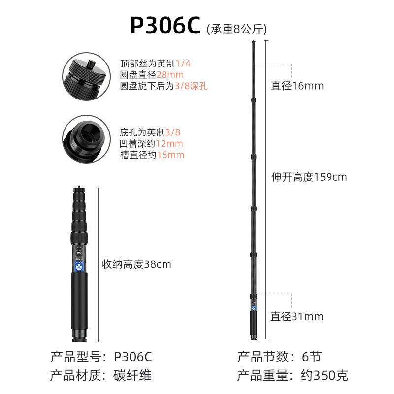 탄소 섬유 SLR 카메라 연장 막대 휴대용 사진 촬영 Gopro 셀카 스탠드 휴대 전화 라이브 스트리밍 모노포드스토어 가기