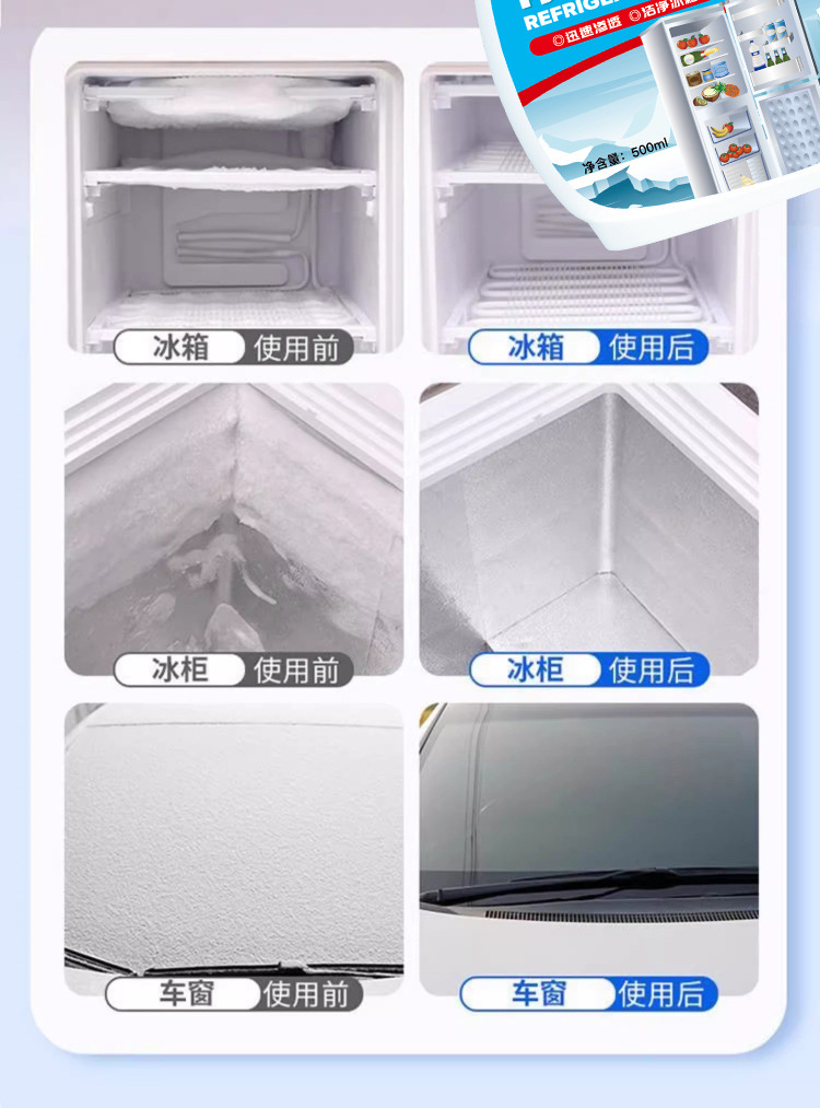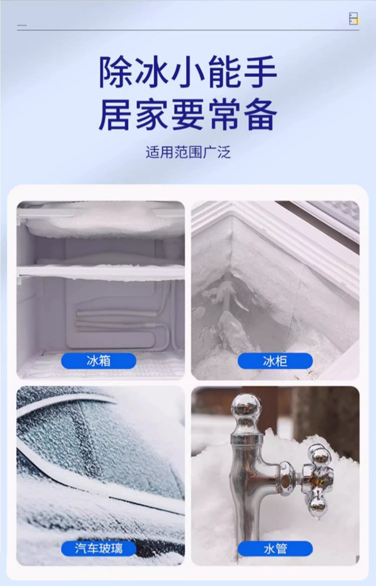 냉장고 청소, 탈취 및 해동제, 청소제, 동결 방지 및 제빙, 자동차 유리, 눈 녹이고 눈 해동